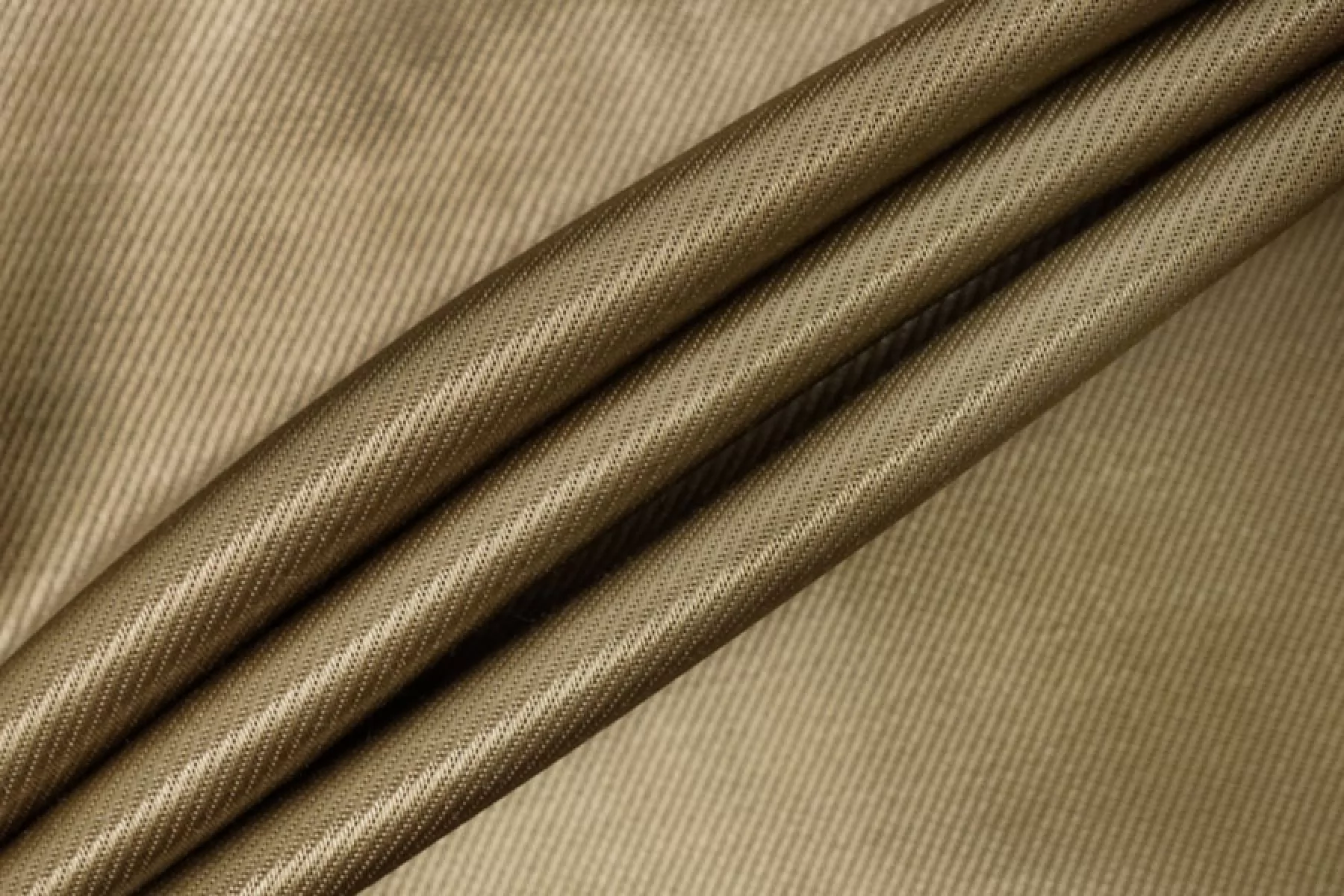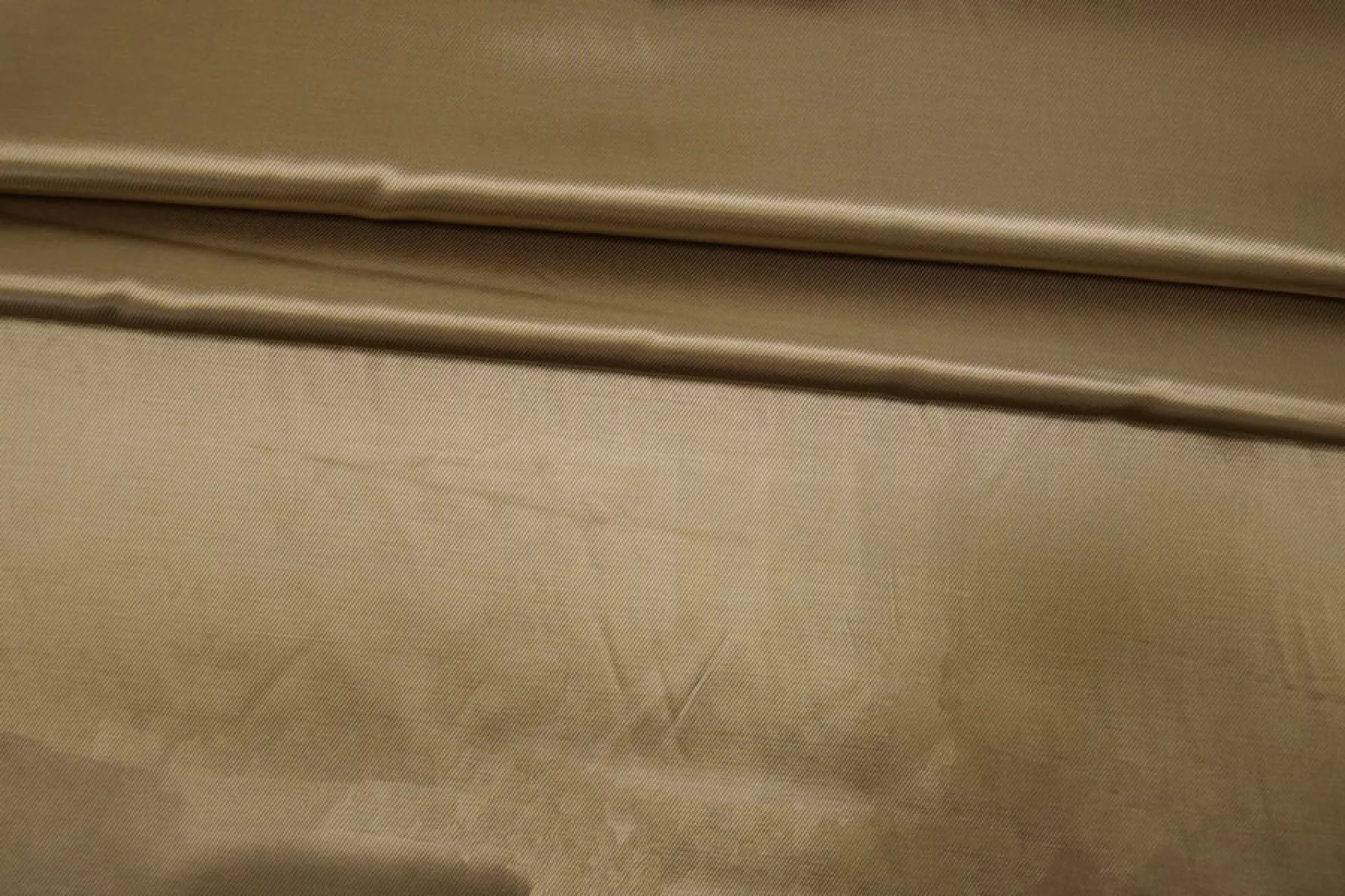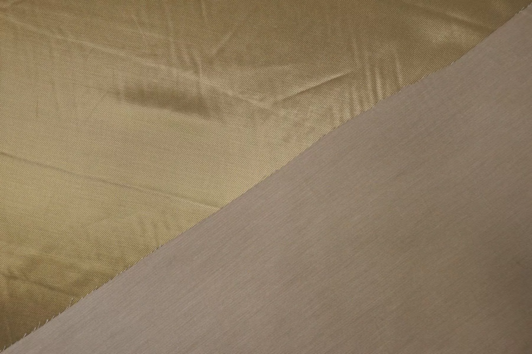 Подкладочная итальянская вискоза с хлопком диагонального плетения красивого, золотистого оттенка хаки. Плетение близко к атласному. Шелковистая, тактильно приятная, с красивым лоском. Не просвечивает. Сминается. Плотная, довольно тяжелая. Форму держит. Подойдет для верхней одежды. Обязательно учитывайте усадку 5-10%.