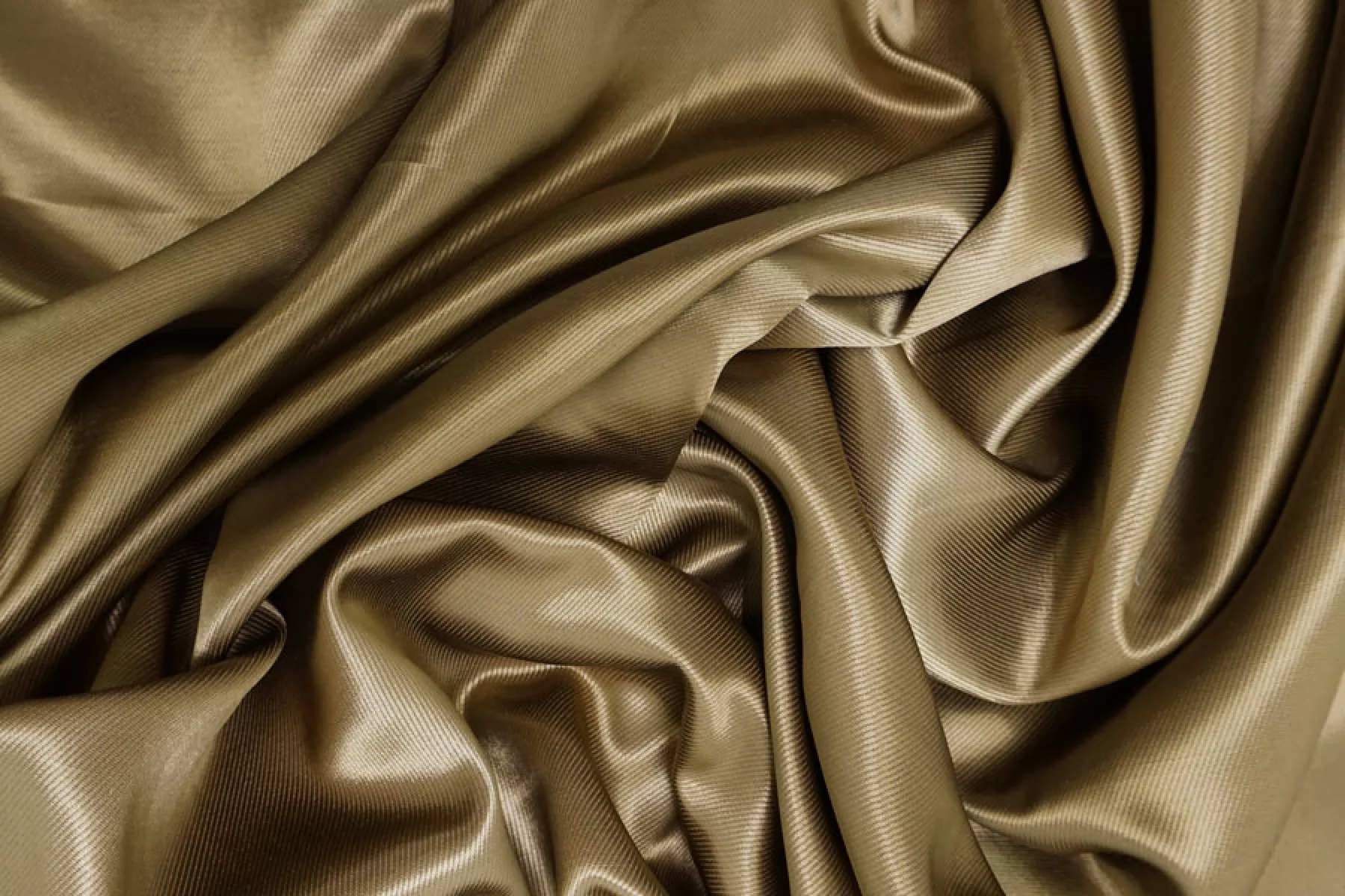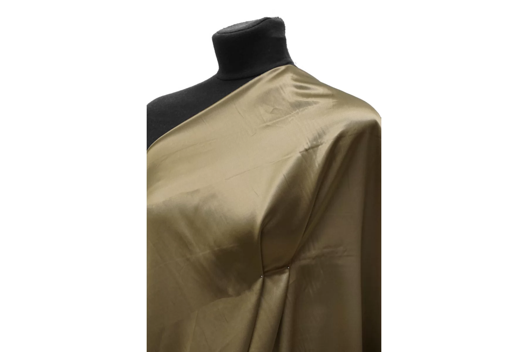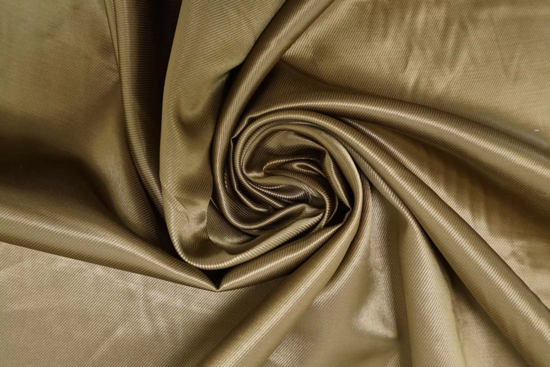 Подкладочная итальянская вискоза с хлопком диагонального плетения красивого, золотистого оттенка хаки. Плетение близко к атласному. Шелковистая, тактильно приятная, с красивым лоском. Не просвечивает. Сминается. Плотная, довольно тяжелая. Форму держит. Подойдет для верхней одежды. Обязательно учитывайте усадку 5-10%.