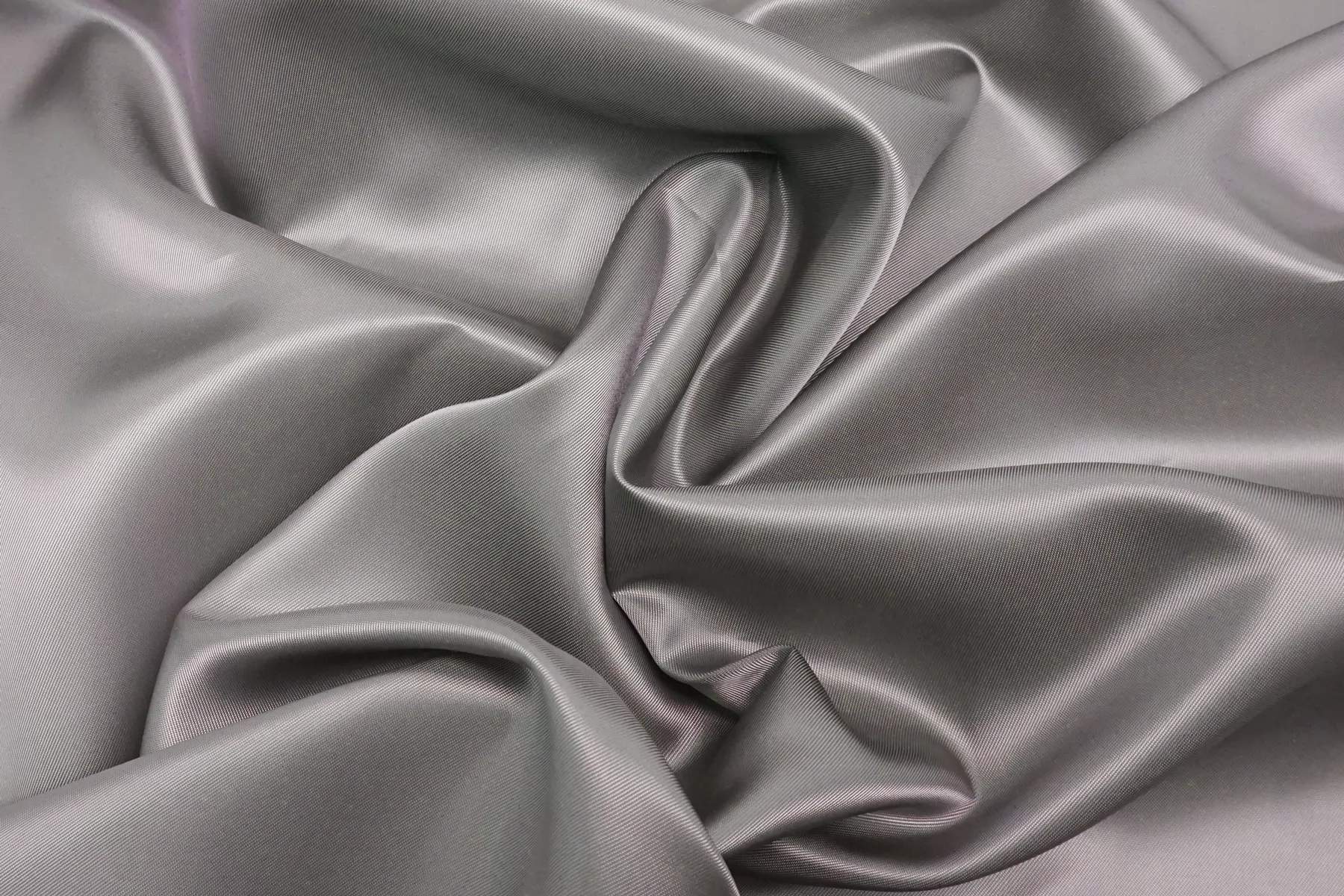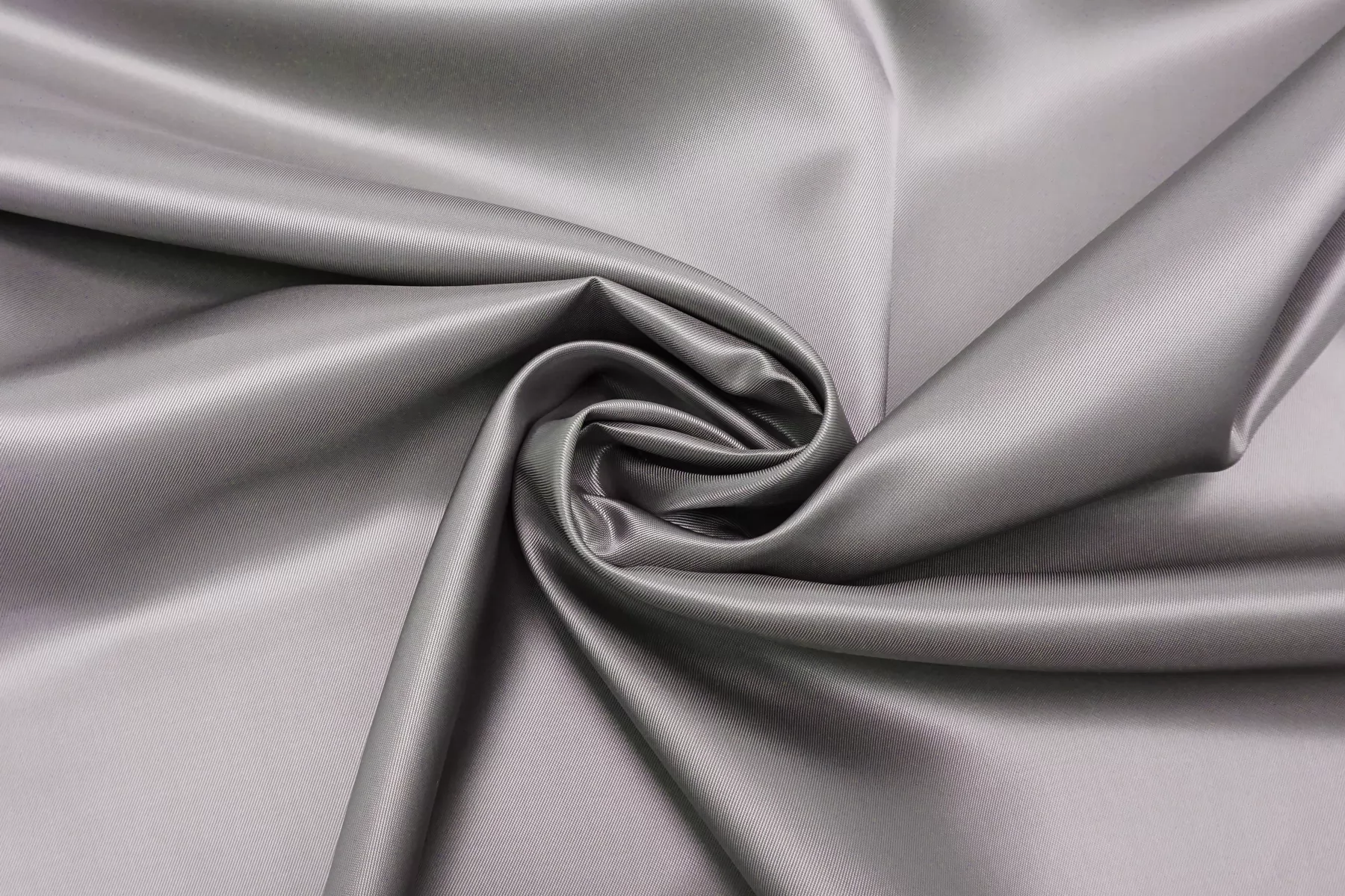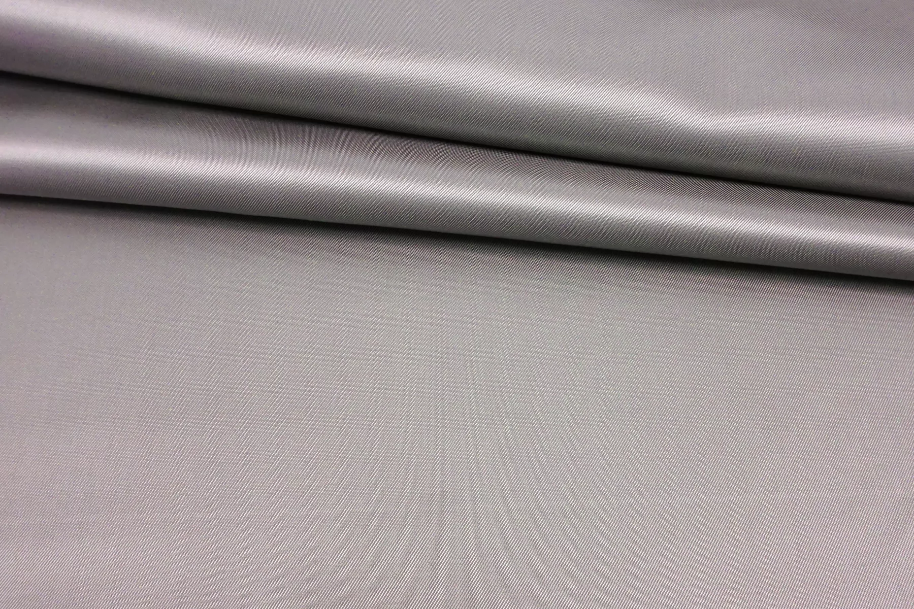 Подкладочная вискоза серого цвета, саржевое плетение. Гладкая, тонкая, обладает красивым лоском. Не тянется. Мнется. Подойдет как подкладочный материал к костюмной группе, демисезонным пальто, курткам. Обязательно учитывайте возможную усадку 5-10%