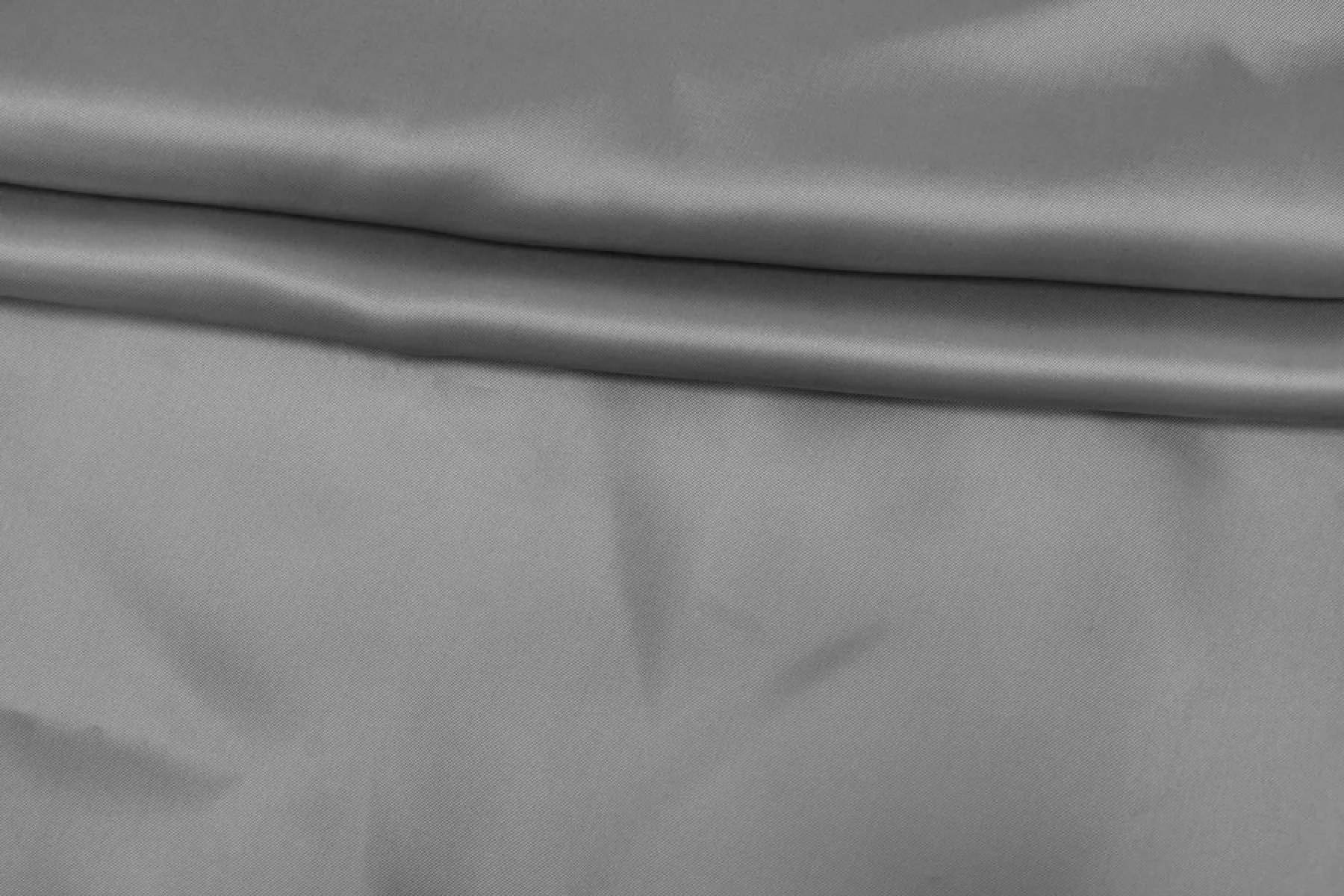 Подкладочная вискоза серого цвета, саржевое плетение. Гладкая, тонкая, обладает красивым лоском. Не тянется. Мнется. Подойдет как подкладочный материал к костюмной группе, демисезонным пальто, курткам. Обязательно учитывайте возможную усадку 5-10%