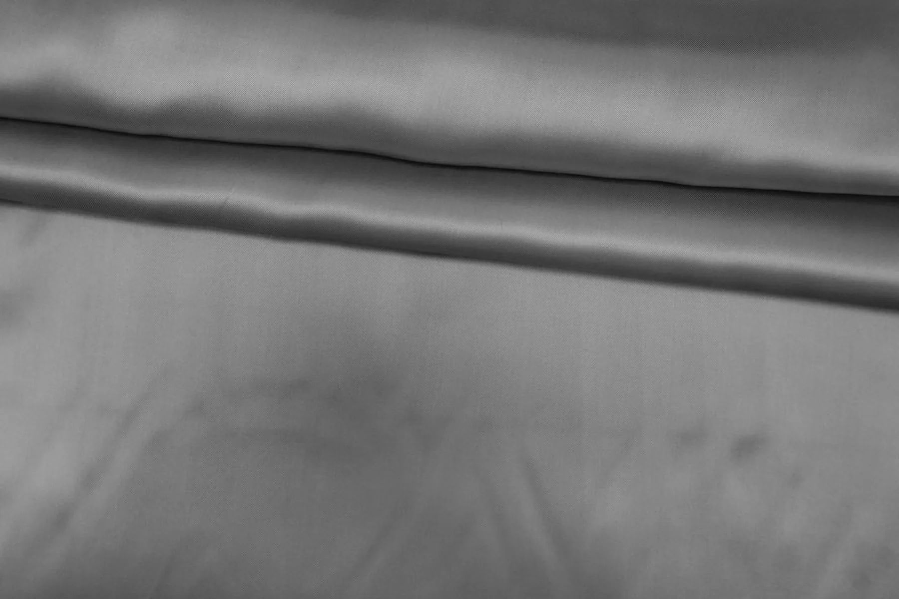 Подкладочная вискоза серого цвета, диагонального плетения. Гладкая, тонкая, обладает красивым лоском. Не тянется. Мнется. Подойдет как подкладочный материал к костюмно-плательной группе, демисезонным пальто, курткам. Обязательно учитывайте возможную усадку 5-10%