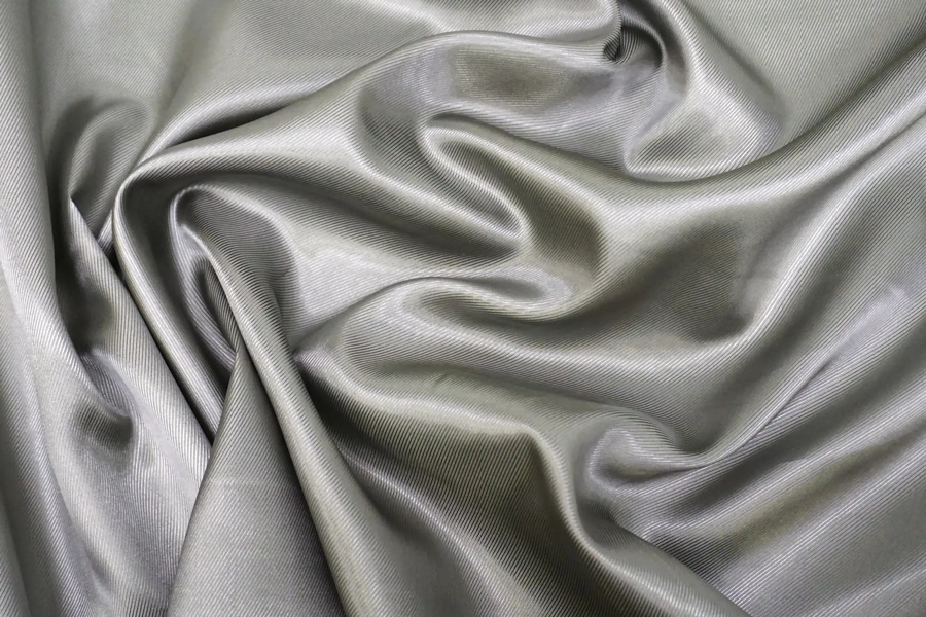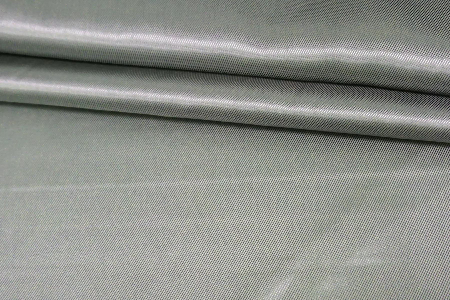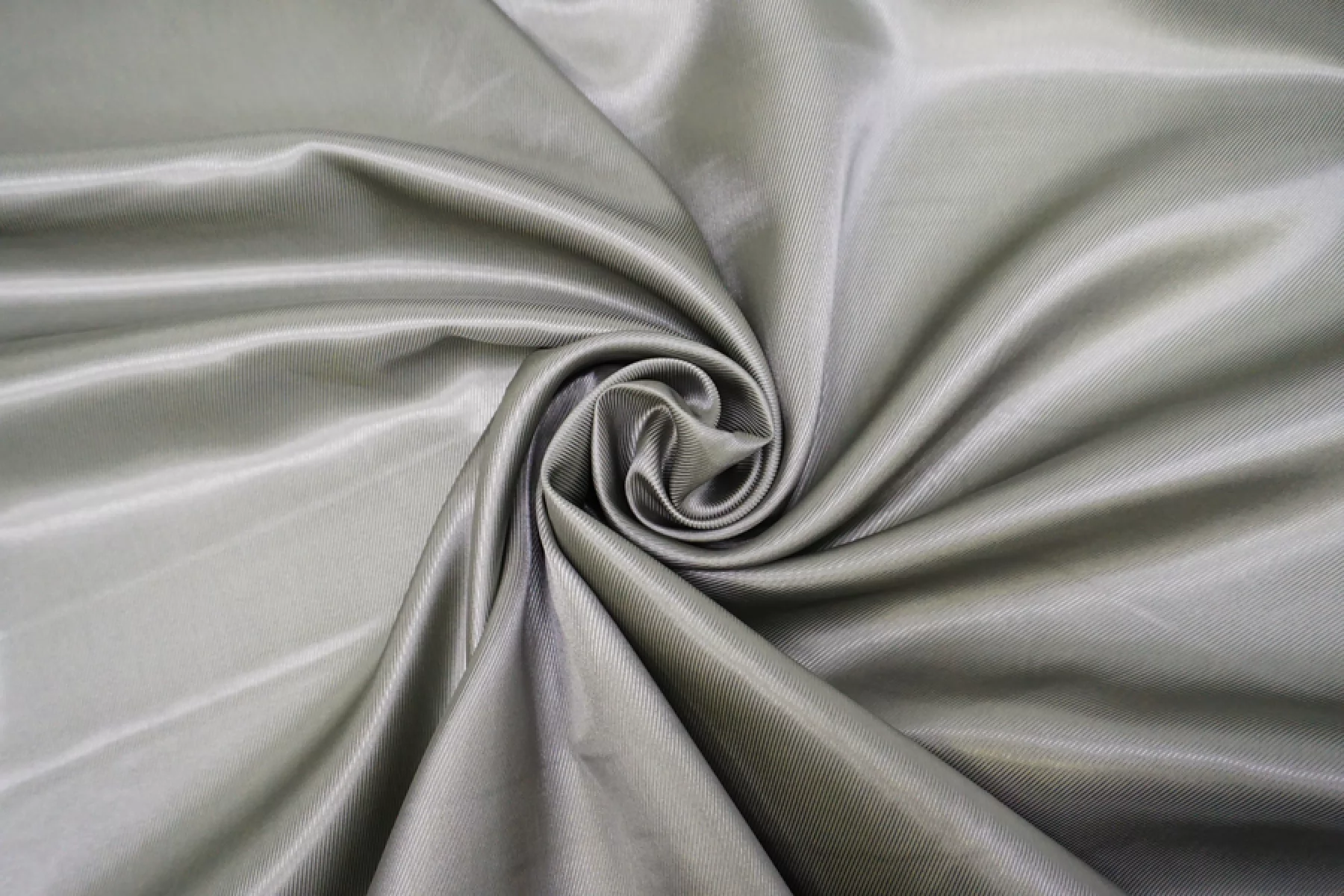 Подкладочная итальянская вискоза диагонального плетения в серо-зеленом цвете. Шелковистая, гладкая, тактильно приятная, мягкая, с красивым блеском. Совсем немного просвечивает силуэт, если смотреть на просвет. Подойдет для изделий на костюмы: к пиджакам, жилеткам, юбкам и брюкам, а также на верхнюю группу. Обязательно учитывайте усадку 5-10%.