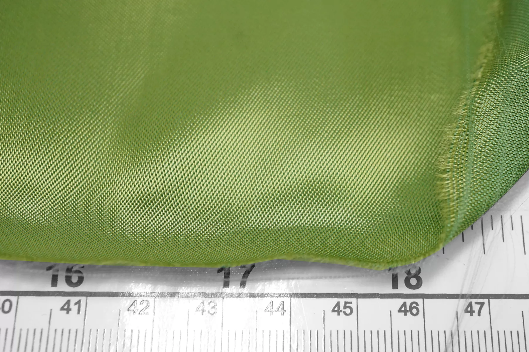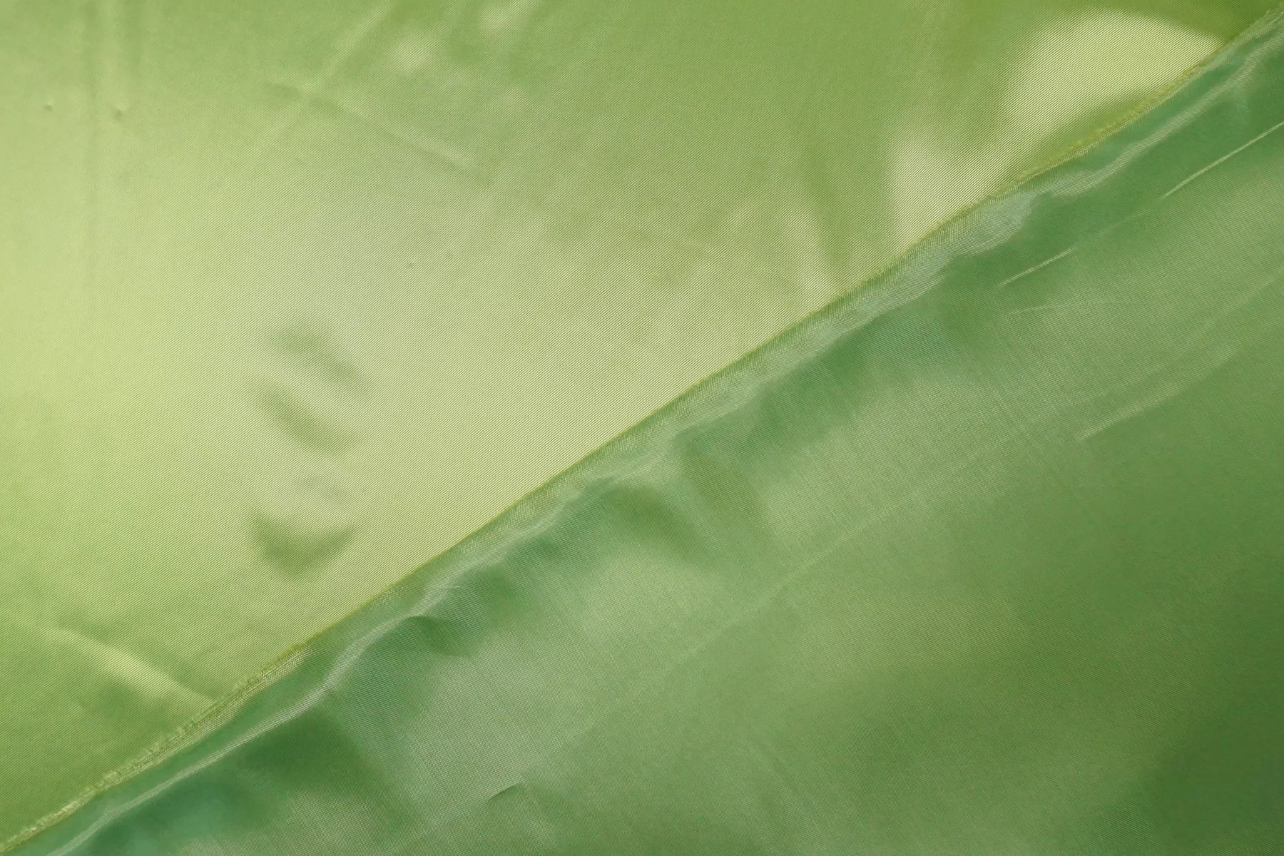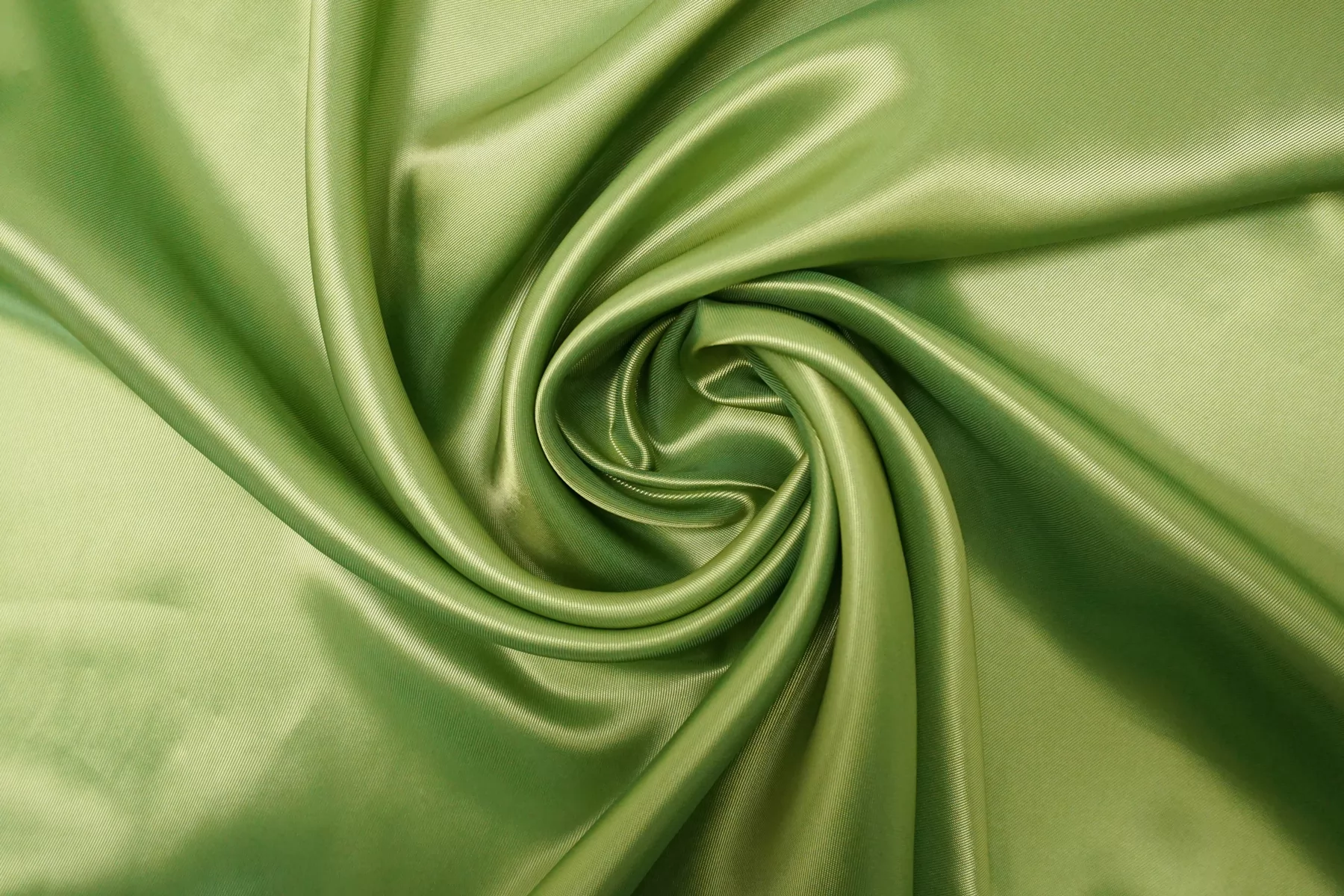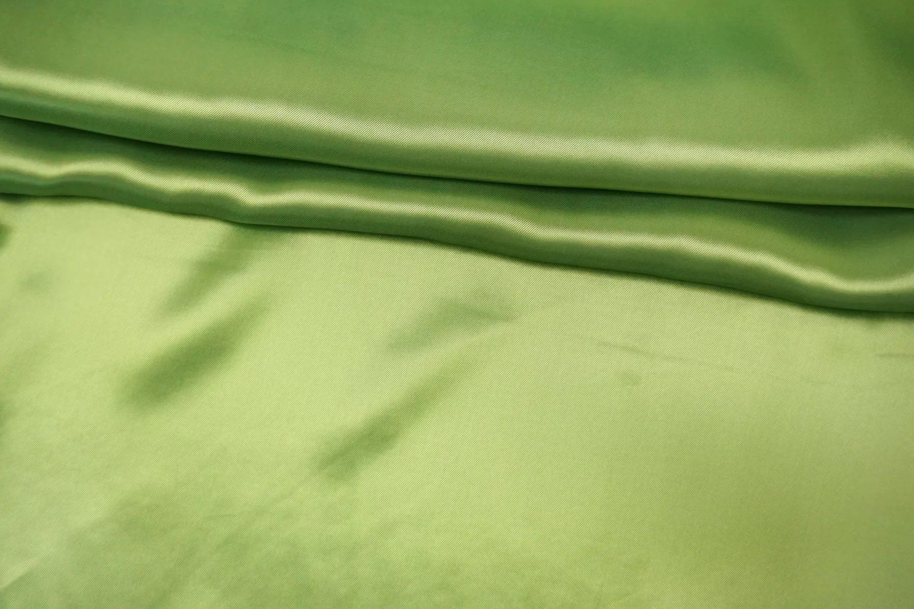 Подкладочная вискоза с ацетатом из нитей салатового и зелёного цвета. Гладкая, тонкая, обладает красивым лоском. Не тянется. Мнется. Подойдет как подкладочный материал к костюмной группе, демисезонным пальто, курткам. Обязательно учитывайте возможную усадку 5-10%