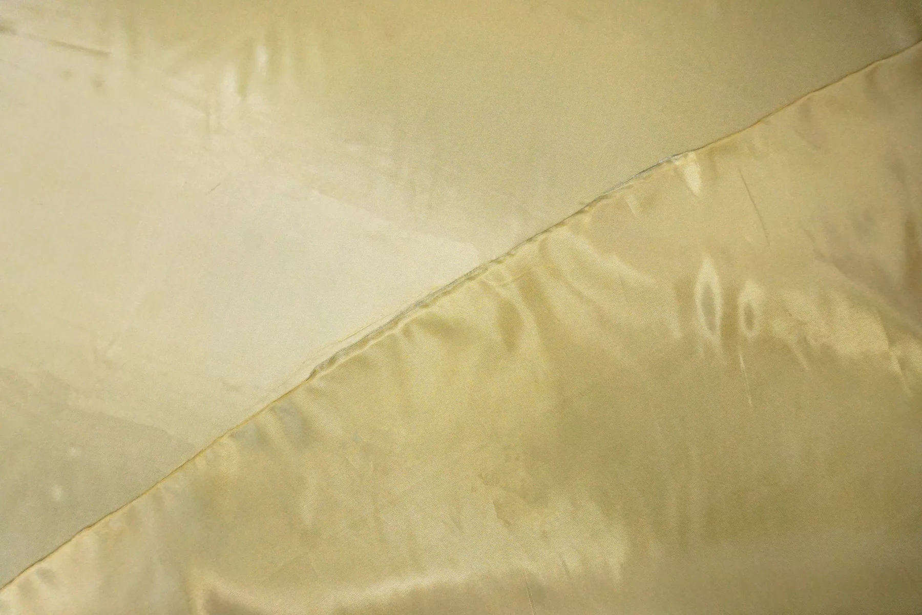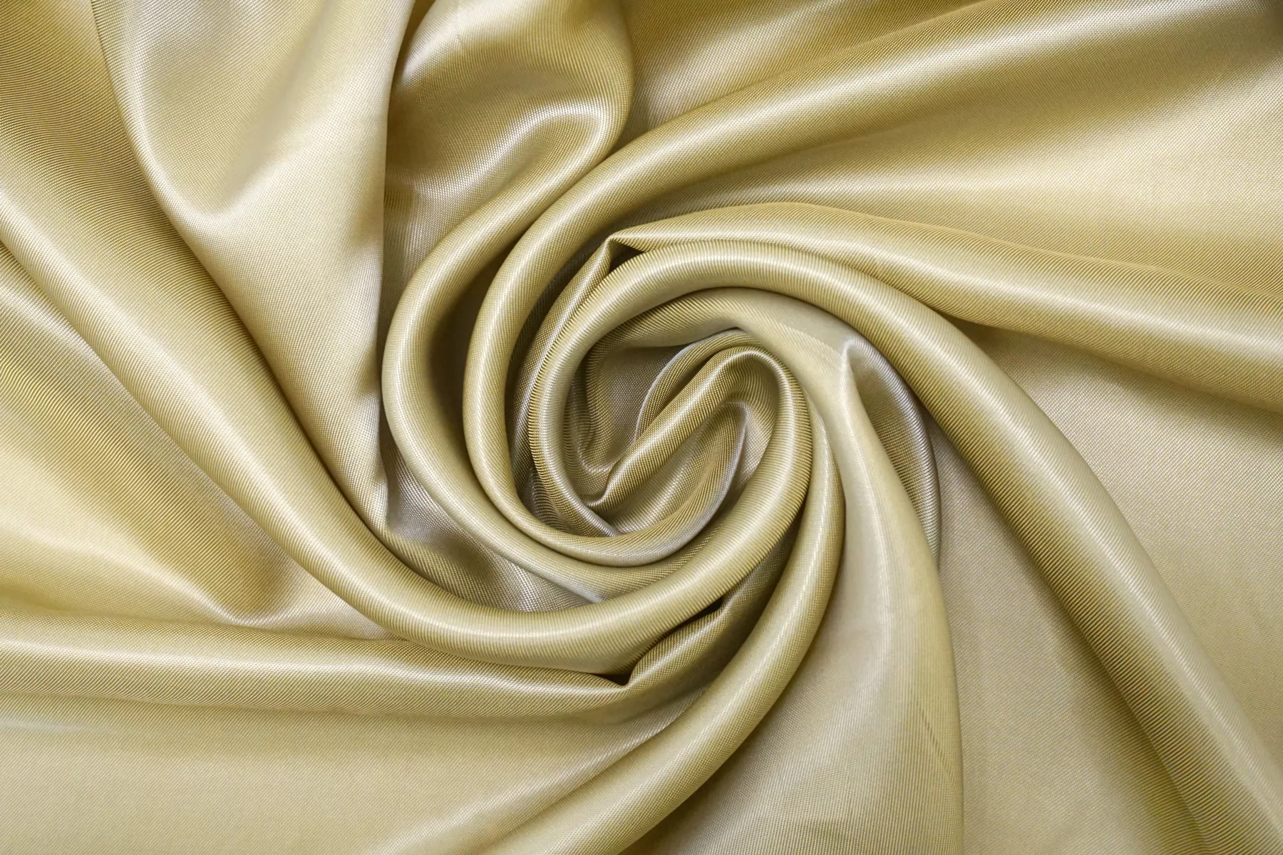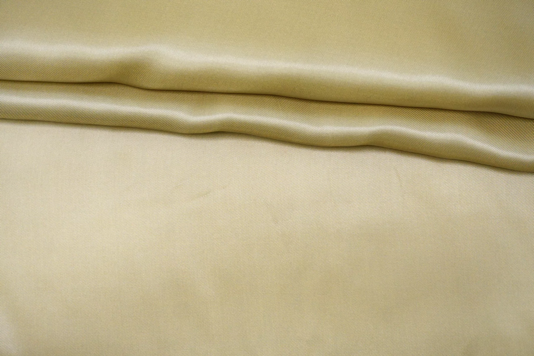 Подкладочная вискоза с ацетатом и полиэстером из нитей цвета золотистого шампанского и голубовато-серого, хамелеонит. С эффектом шанжан. Гладкая, тонкая, обладает красивым лоском. Не тянется. Мнется. Подойдет как подкладочный материал к костюмной группе, демисезонным пальто, курткам. Обязательно учитывайте возможную усадку 5-10%