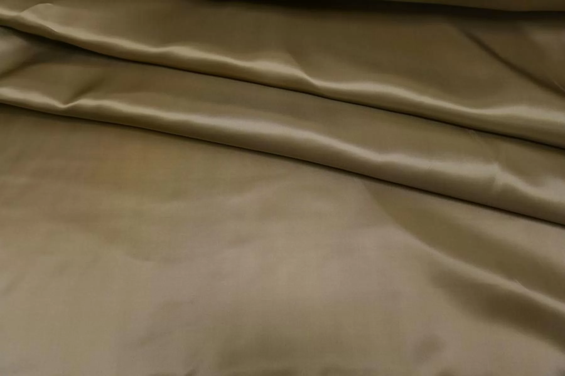 Прекрасная подкладочная вискоза в сложном оттенке, приглушённый сероватый бежевый хаки. Плетение диагональное, близкое к атласному. Гладкая, шелковистая, обладает лоском. Подойдет на подклад к пиджакам, жилеткам, юбкам, пальто.