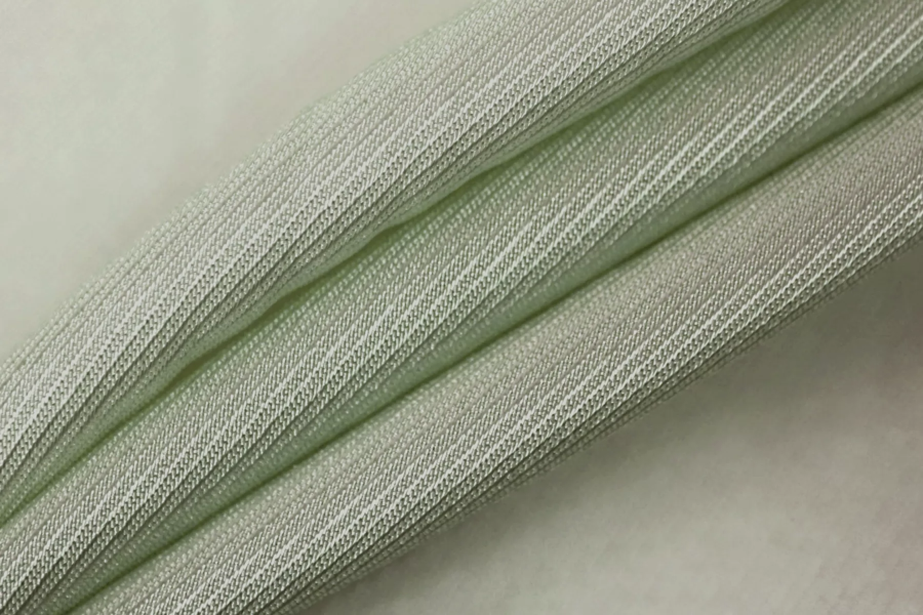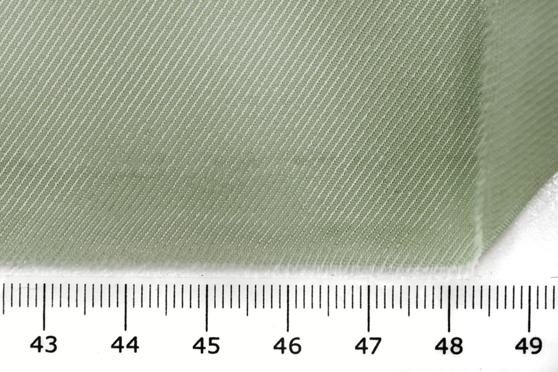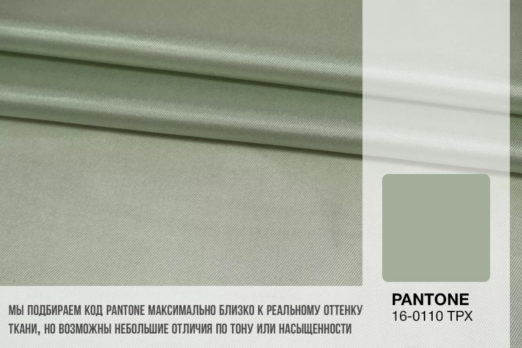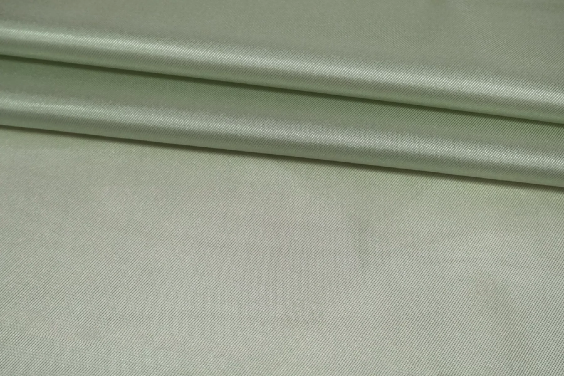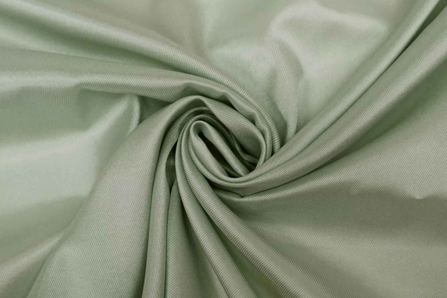 Подкладочная итальянская вискоза стрейч приятного припыленно-зеленого оттенка диагонального оттенка. Шелковистая, тактильно приятная, с красивым блеском. Просвечивает. Сминается. Форму держит. Хорошо тянется. Подойдет для изделий на костюмы: к пиджакам, жилеткам, юбкам и брюкам. Обязательно учитывайте усадку 5-10%.