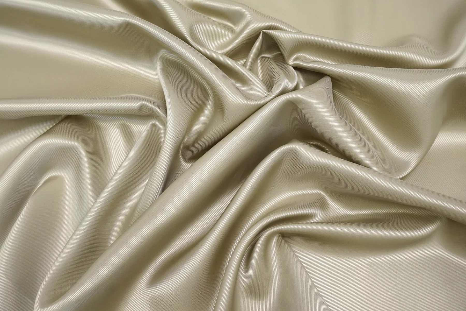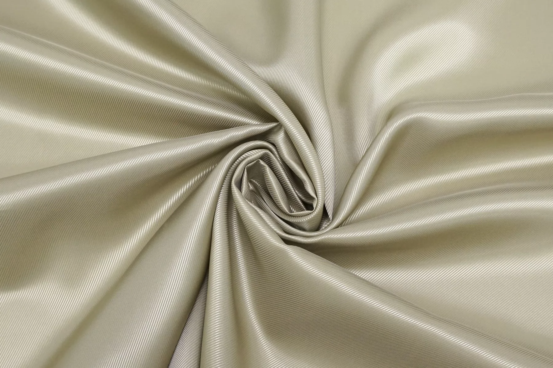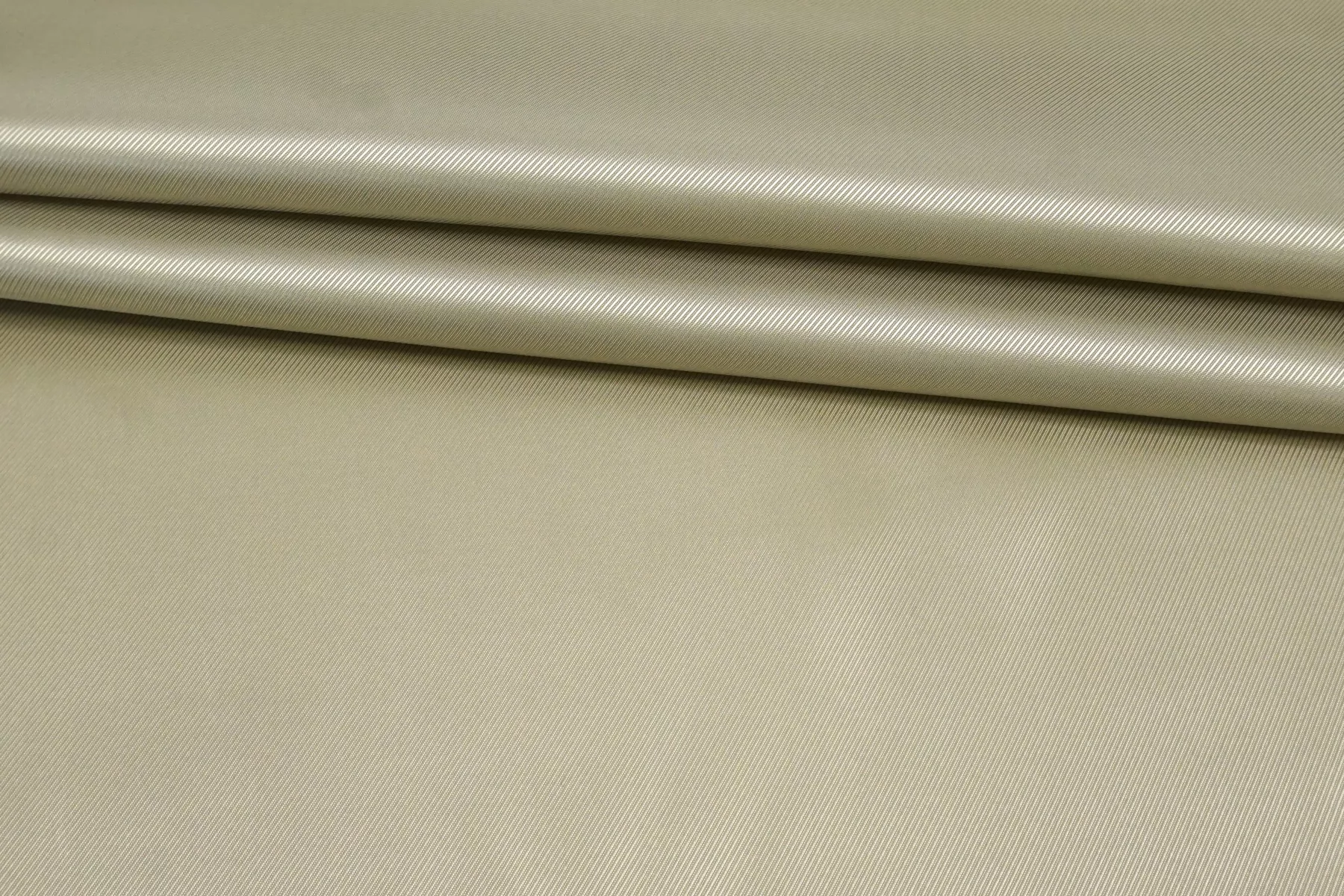 Подкладочная вискоза светлого, разбелённого серо-бежевого цвета, диагональное плетение с выраженным рубчиком. Гладкая, тонкая, обладает красивым лоском. Не тянется. Мнется. Подойдет как подкладочный материал к зимним пиджакам, пальто, курткам. Обязательно учитывайте возможную усадку 5-10%