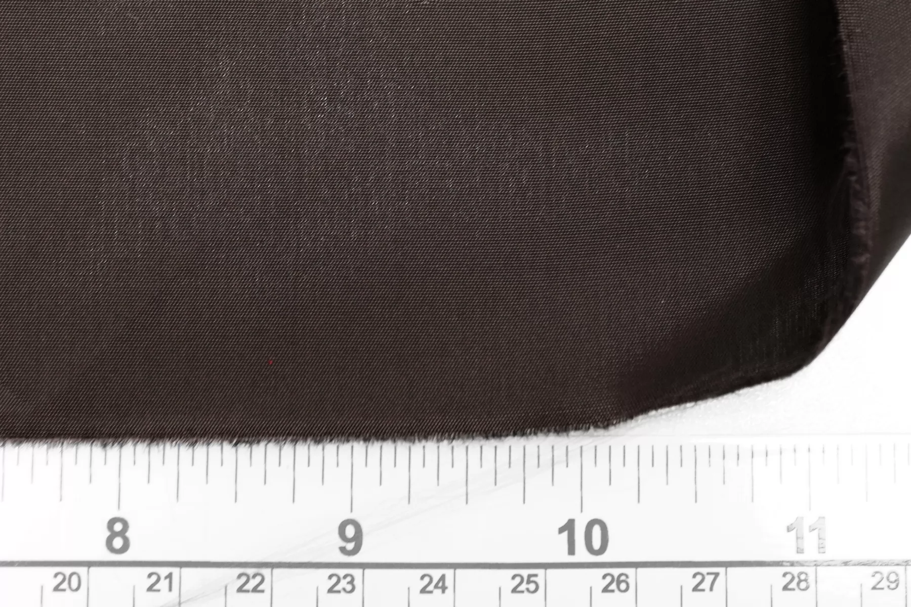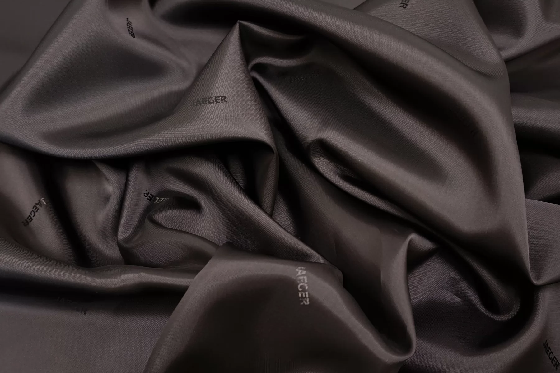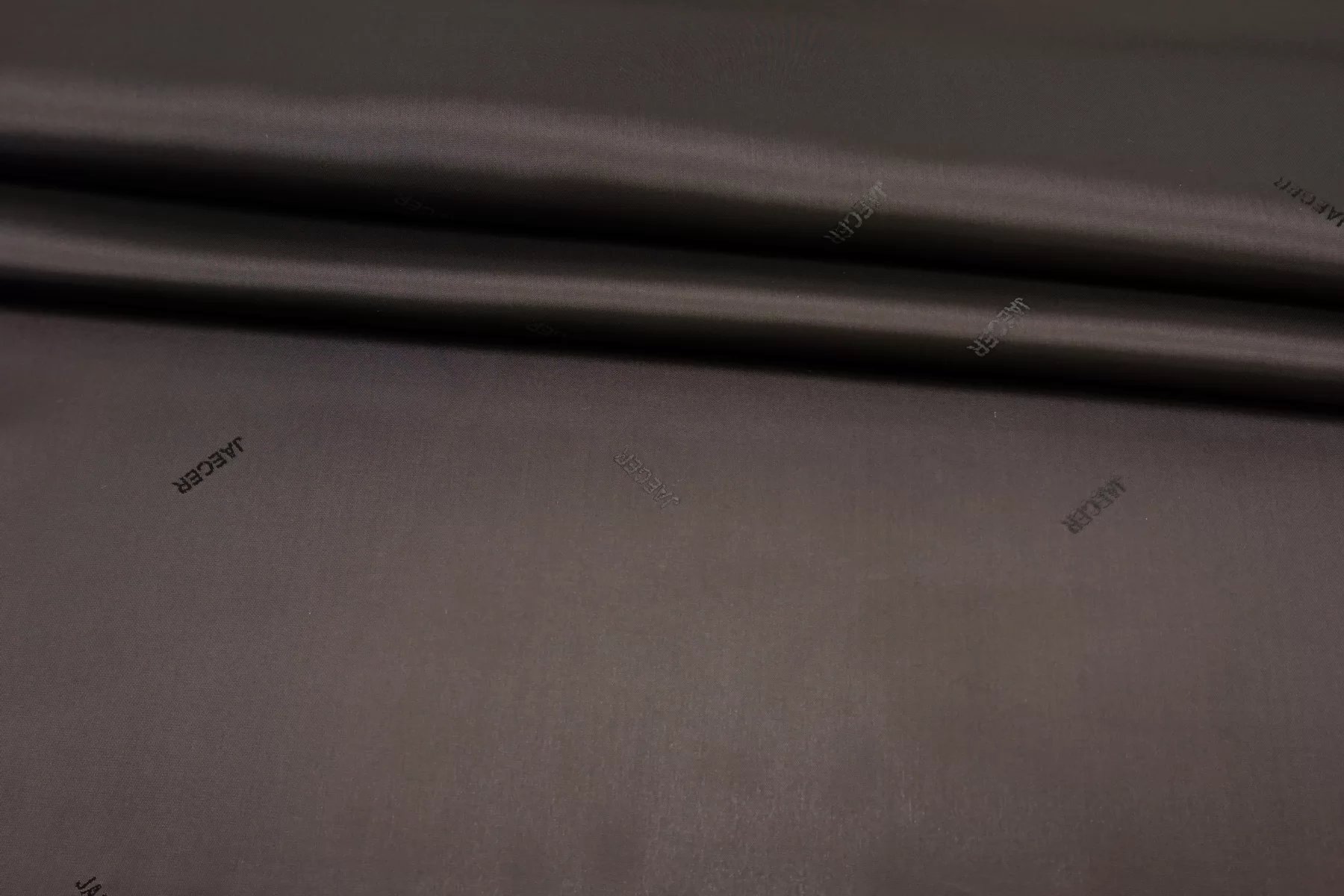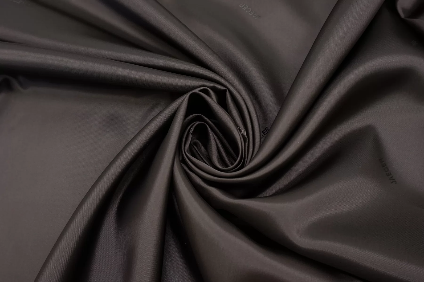 Подкладочная вискоза в тёмном коричневом цвете, полотняное плетение, с жаккардовой выработкой JAECER. Гладкая, тонкая, обладает лёгким лоском. Не тянется. Мнется. Подойдет как подкладочный материал к костюмно-плательной группе. Обязательно учитывайте возможную усадку 5-10%