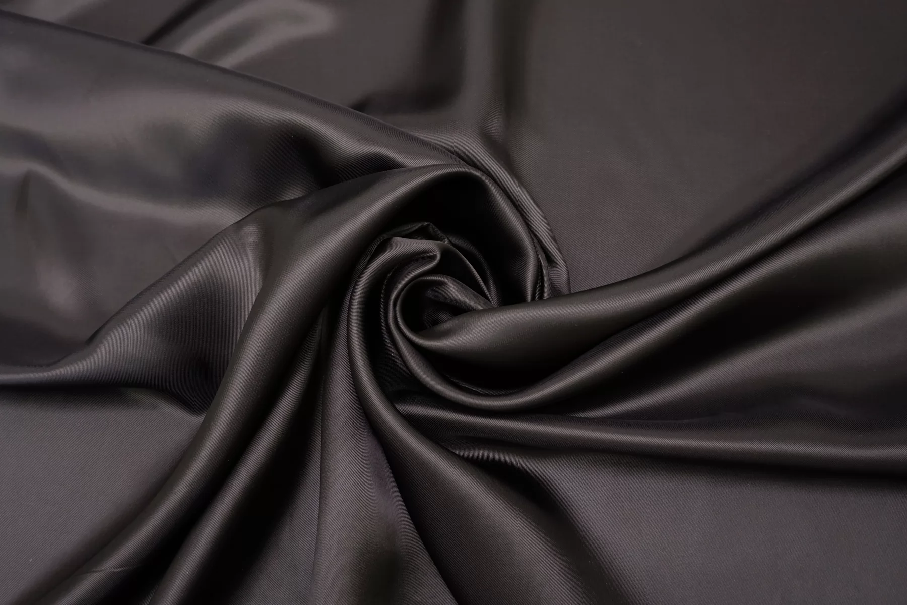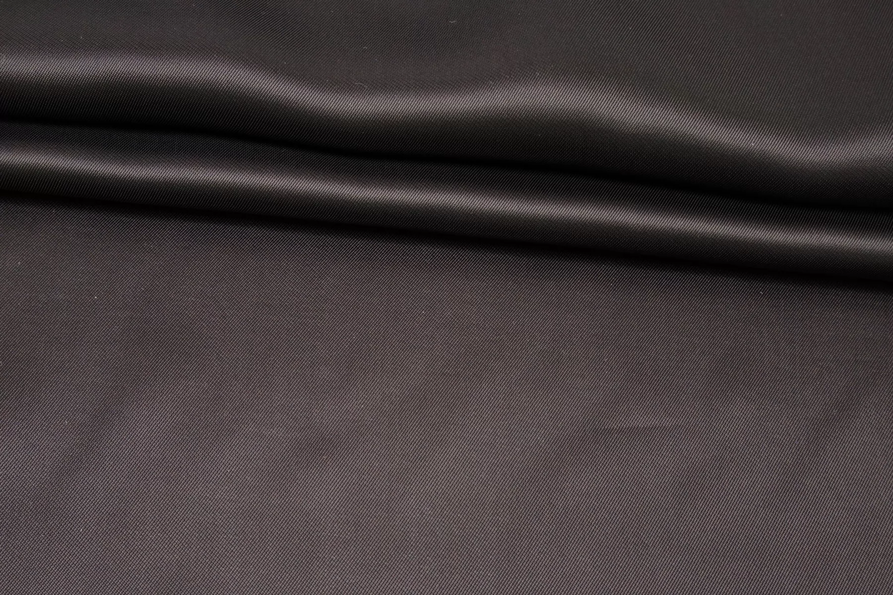 Подкладочная вискоза очень тёмного коричневого (холодного) цвета, саржевое плетение. Гладкая, тонкая, обладает красивым лоском. Не тянется. Мнется. Подойдет как подкладочный материал к костюмной группе, юбкам. Обязательно учитывайте возможную усадку 5-10%
