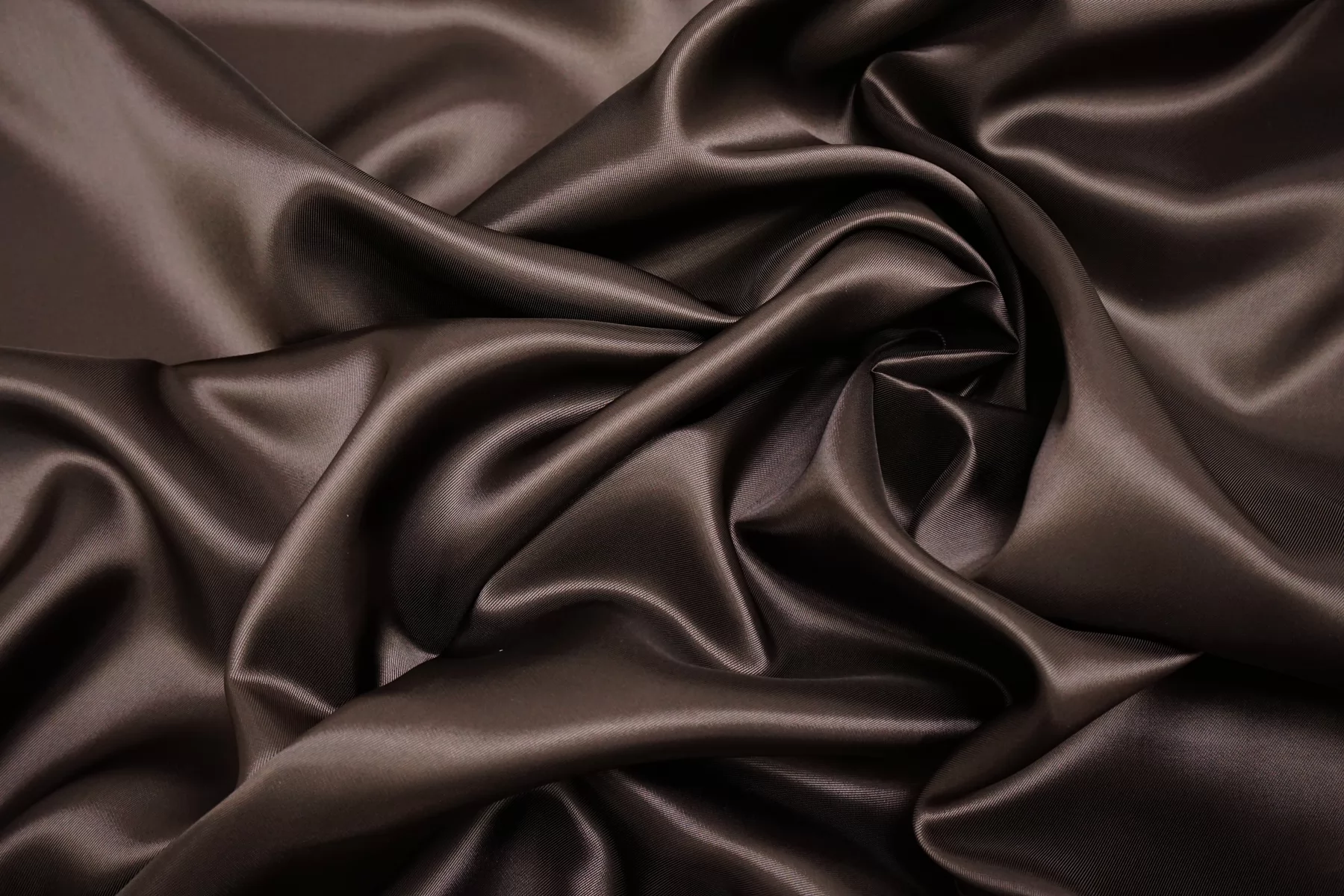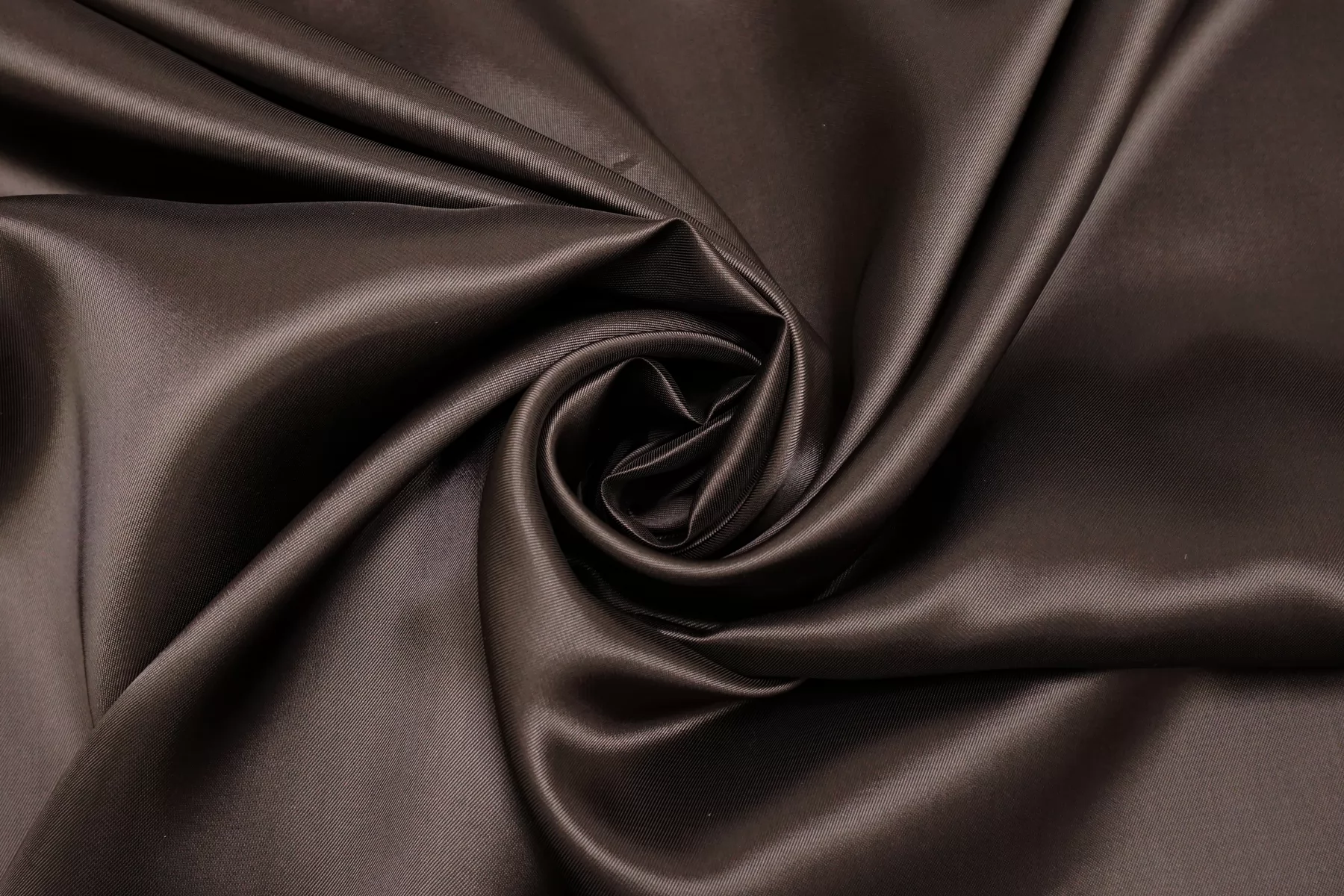 Подкладочная вискоза тёмного коричневого (холодного) цвета, саржевое плетение. Гладкая, тонкая, обладает красивым лоском. Не тянется. Мнется. Подойдет как подкладочный материал к костюмной группе, демисезонным пальто, курткам. Обязательно учитывайте возможную усадку 5-10%