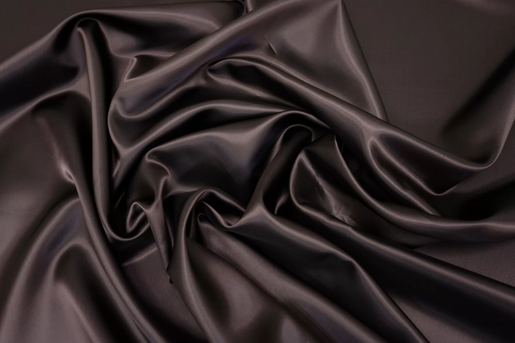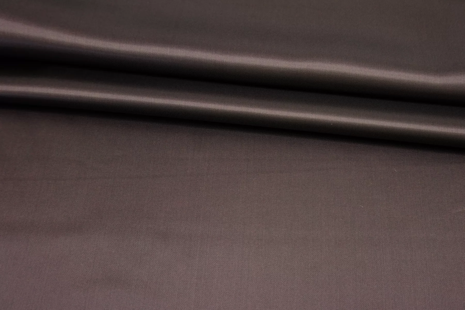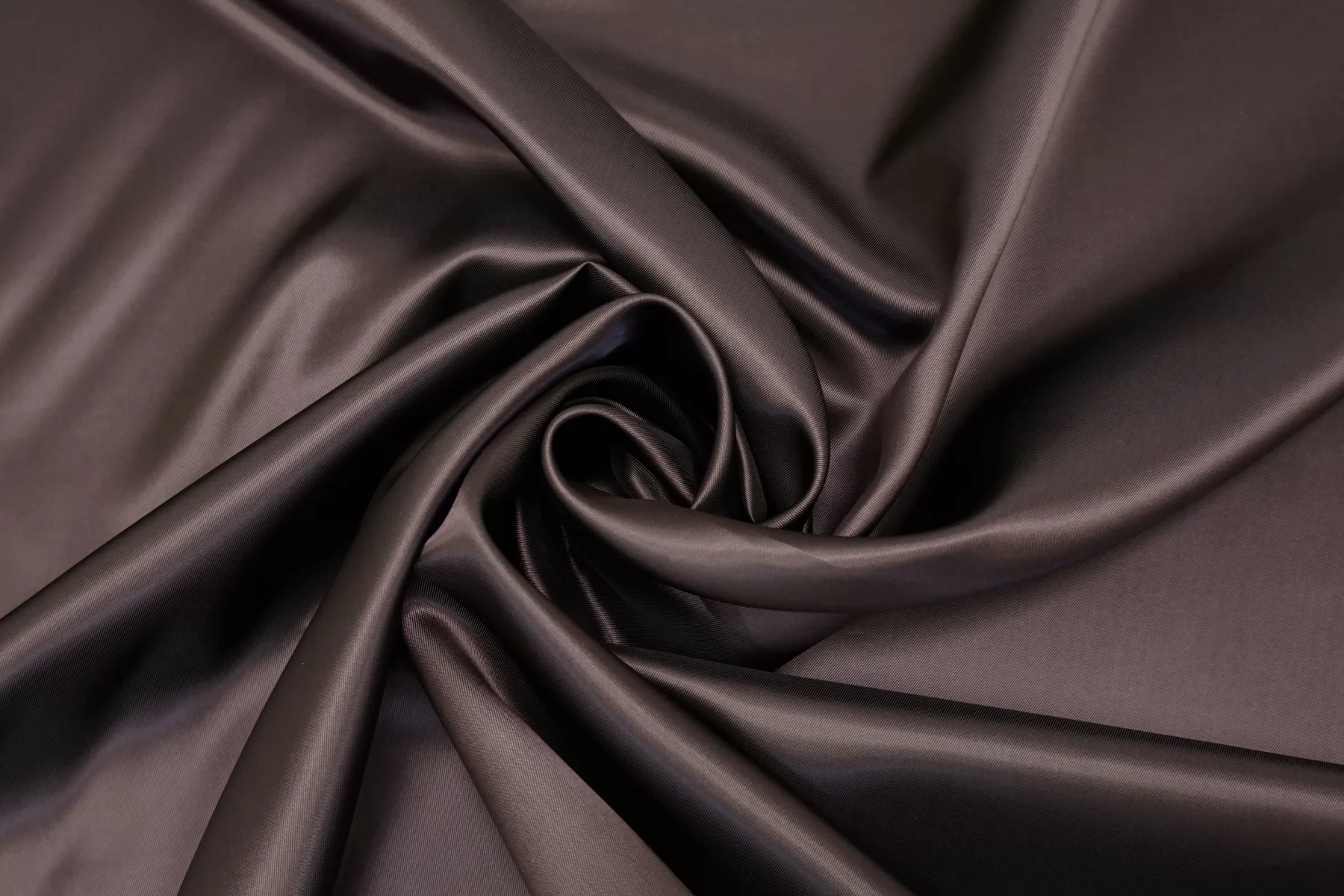 Подкладочная вискоза тёмного коричневого цвета, саржевое плетение. Гладкая, тонкая, обладает красивым лоском. Не тянется. Мнется. Подойдет как подкладочный материал к костюмной группе, демисезонным пальто, курткам. Обязательно учитывайте возможную усадку 5-10%