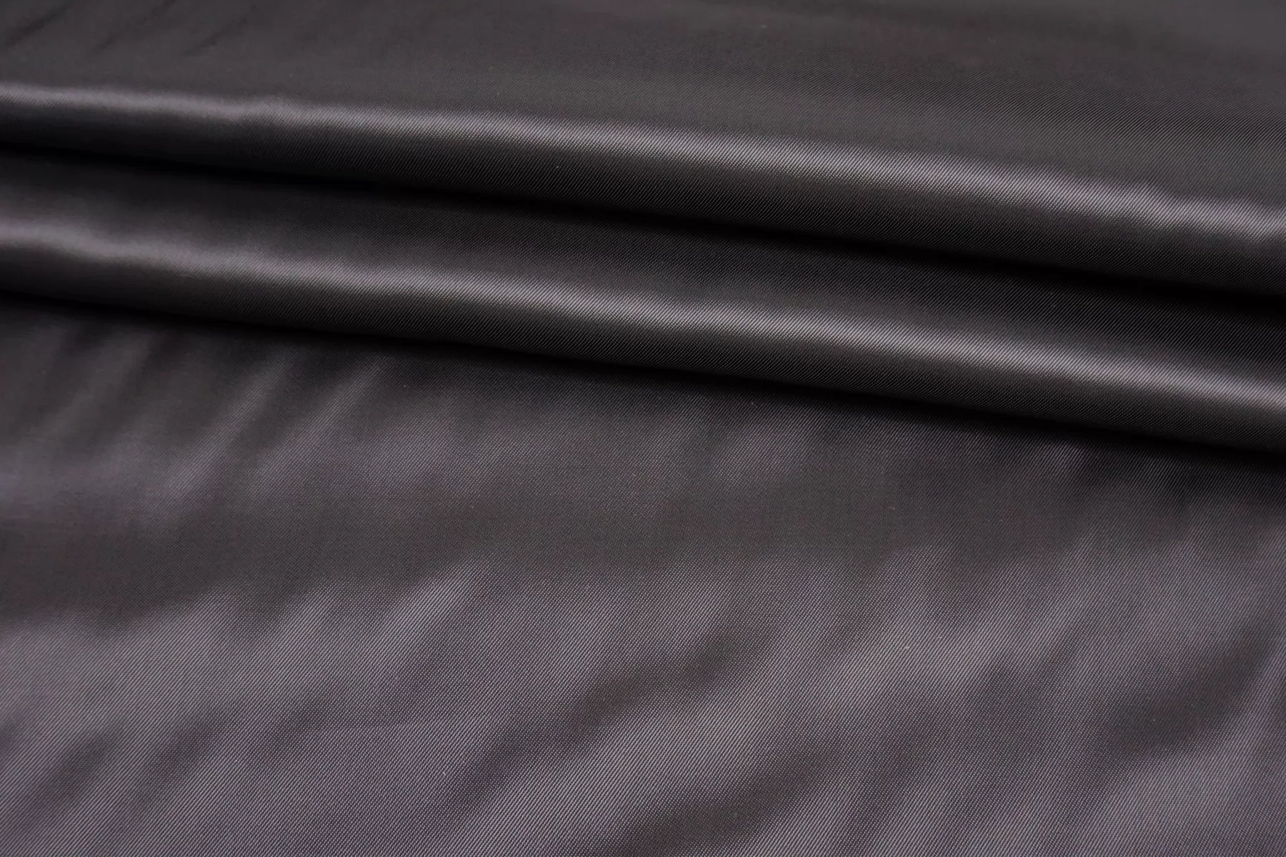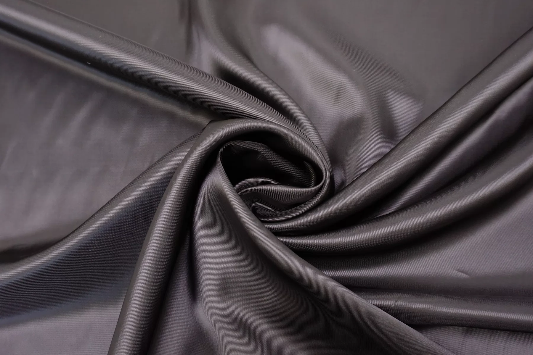 Подкладочная вискоза очень тёмного коричневого цвета, саржевое плетение. Гладкая, тонкая, обладает красивым лоском. Не тянется. Мнется. Подойдет как подкладочный материал к костюмной группе, демисезонным пальто, курткам. Обязательно учитывайте возможную усадку 5-10%