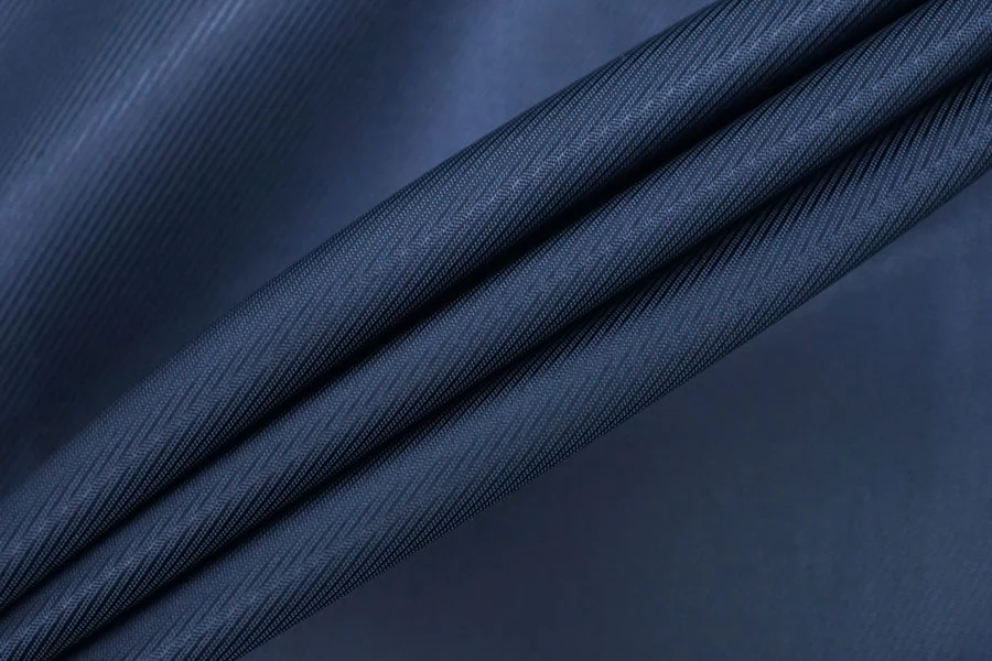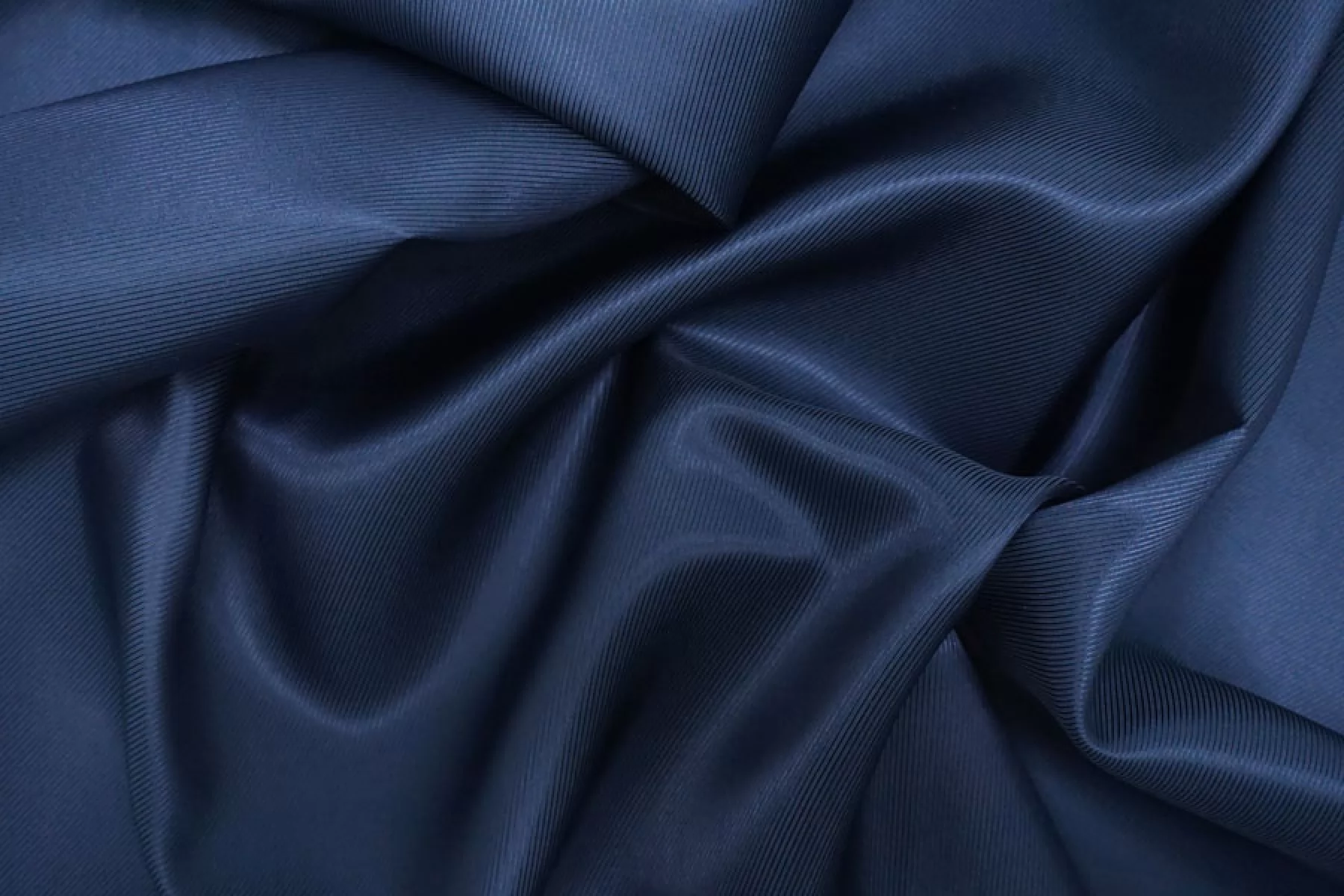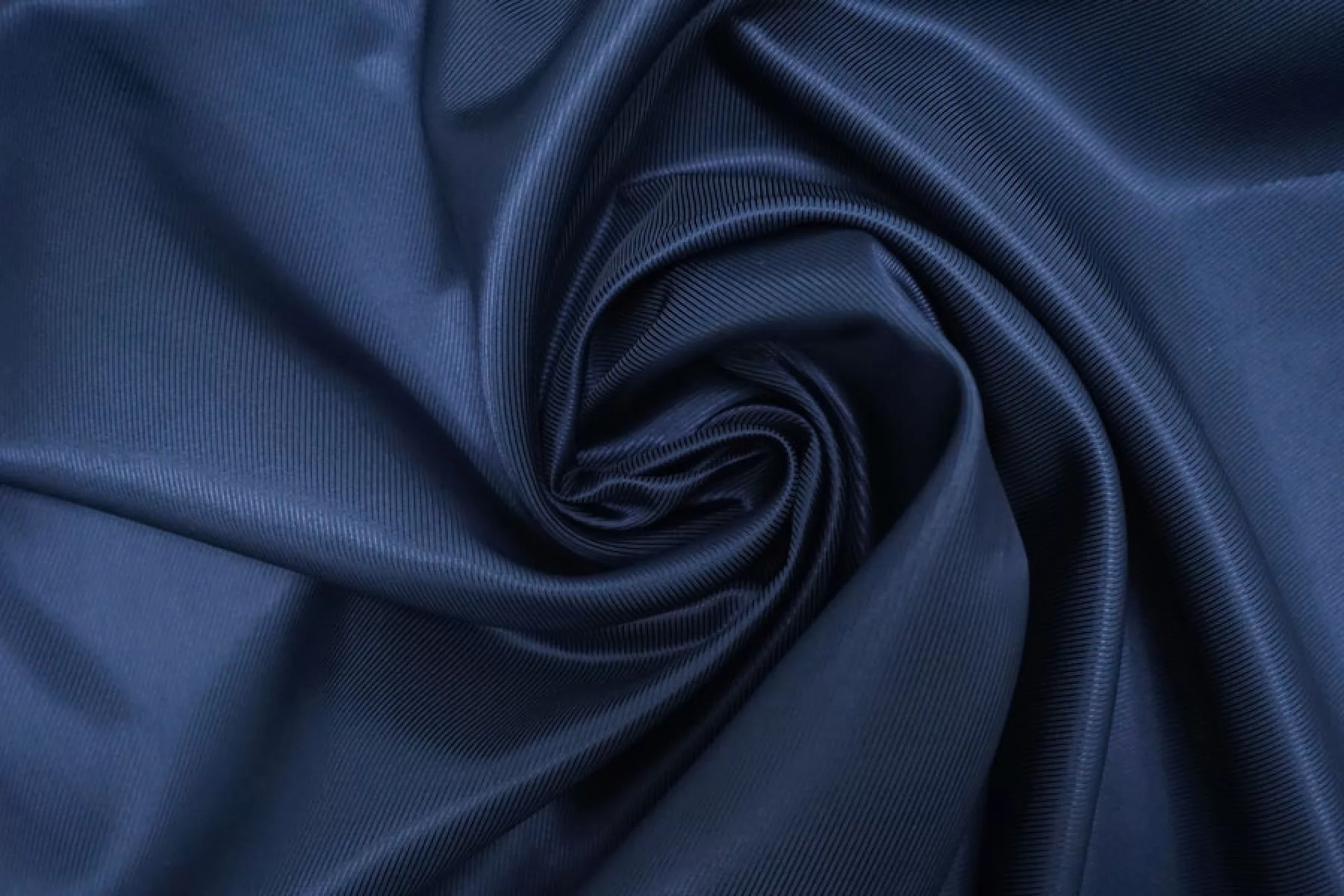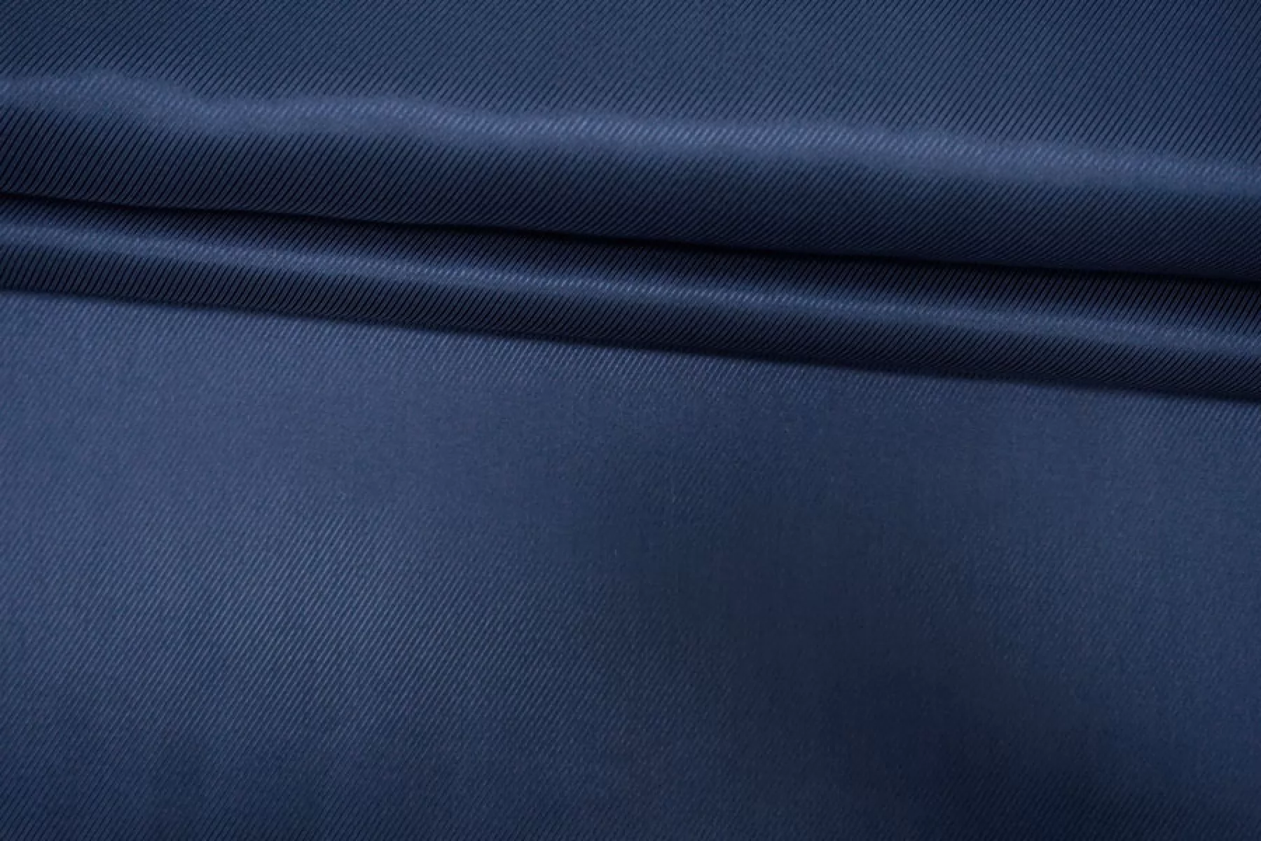 Подкладочная вискоза чуть затемнённого темно-синего цвета, диагональное плетение с выраженным рубчиком. Гладкая, тонкая, обладает красивым лоском. Не тянется. Мнется. Подойдет как подкладочный материал к костюмноой группе, демисезонным пальто, курткам. Обязательно учитывайте возможную усадку 5-10%