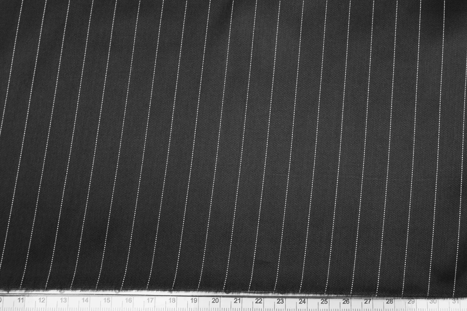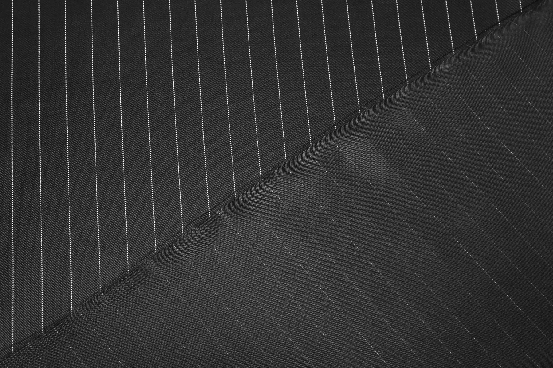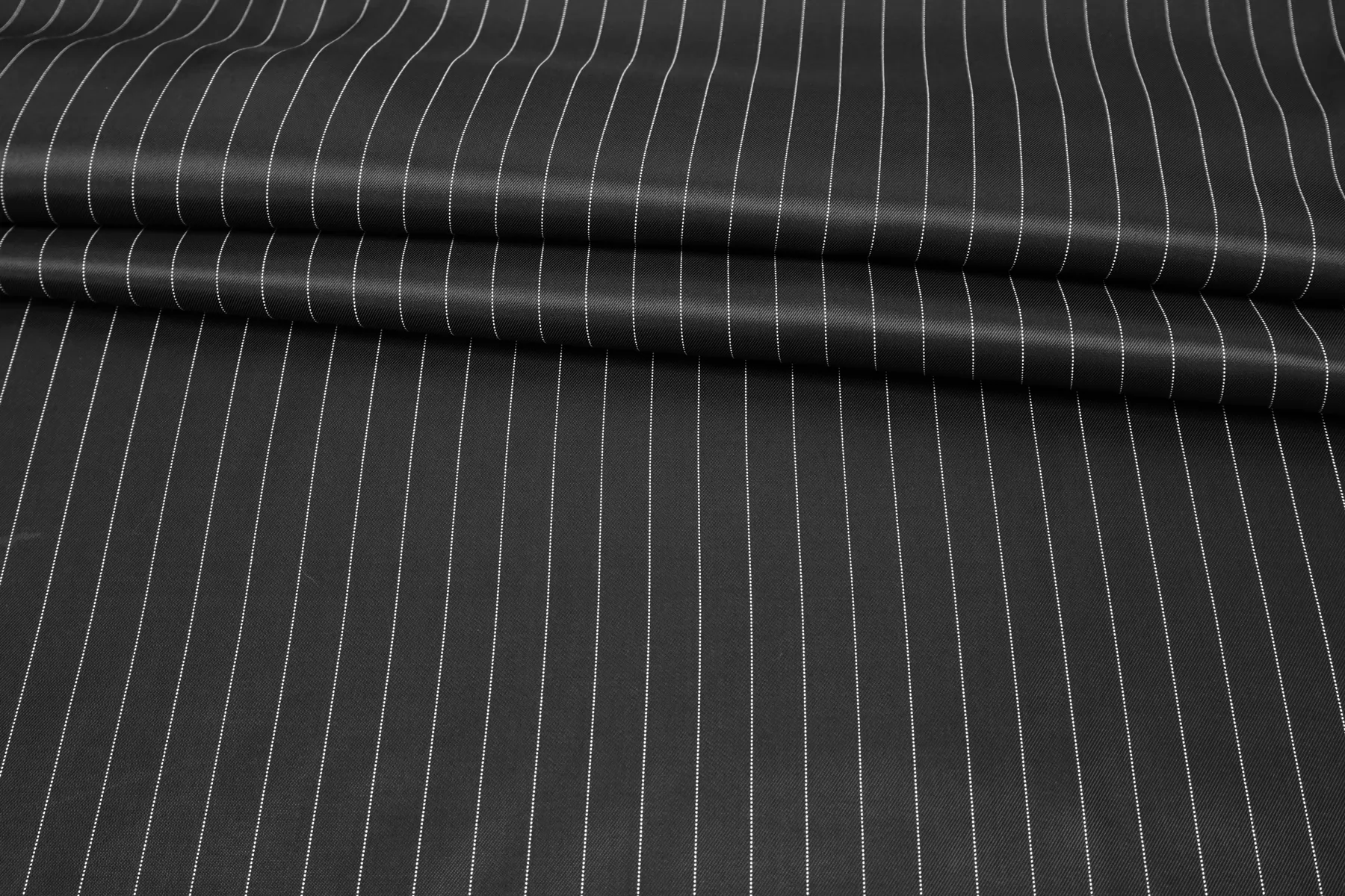Подкладочная итальянская вискоза темно-серого цвета в тонкую белую полоску (вдоль кромки), плетение саржевое. Шелковистая, обладает легким блеском, тонкая. Подойдет на подкладку к костюмной группе, демисезонным пальто, курткам.