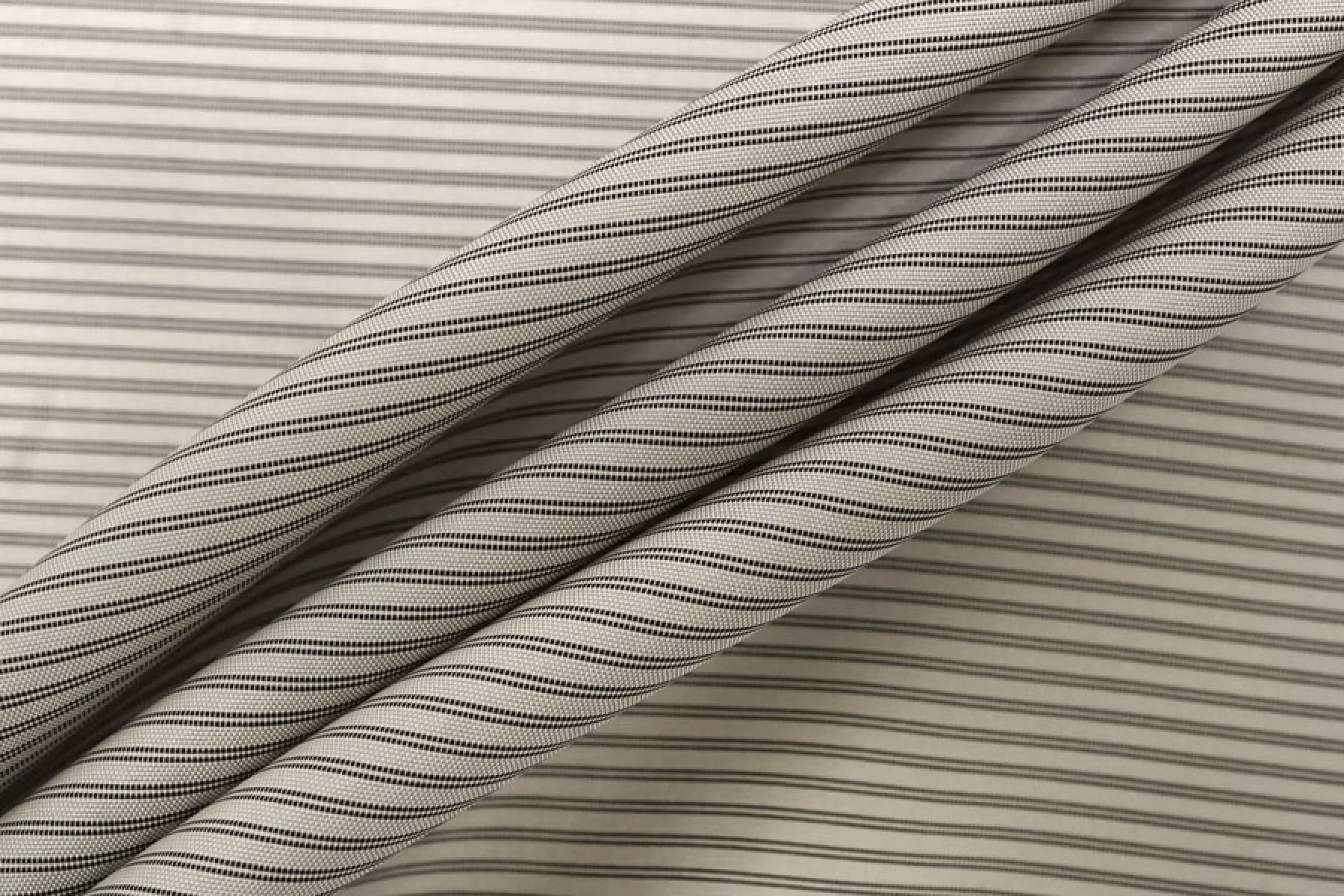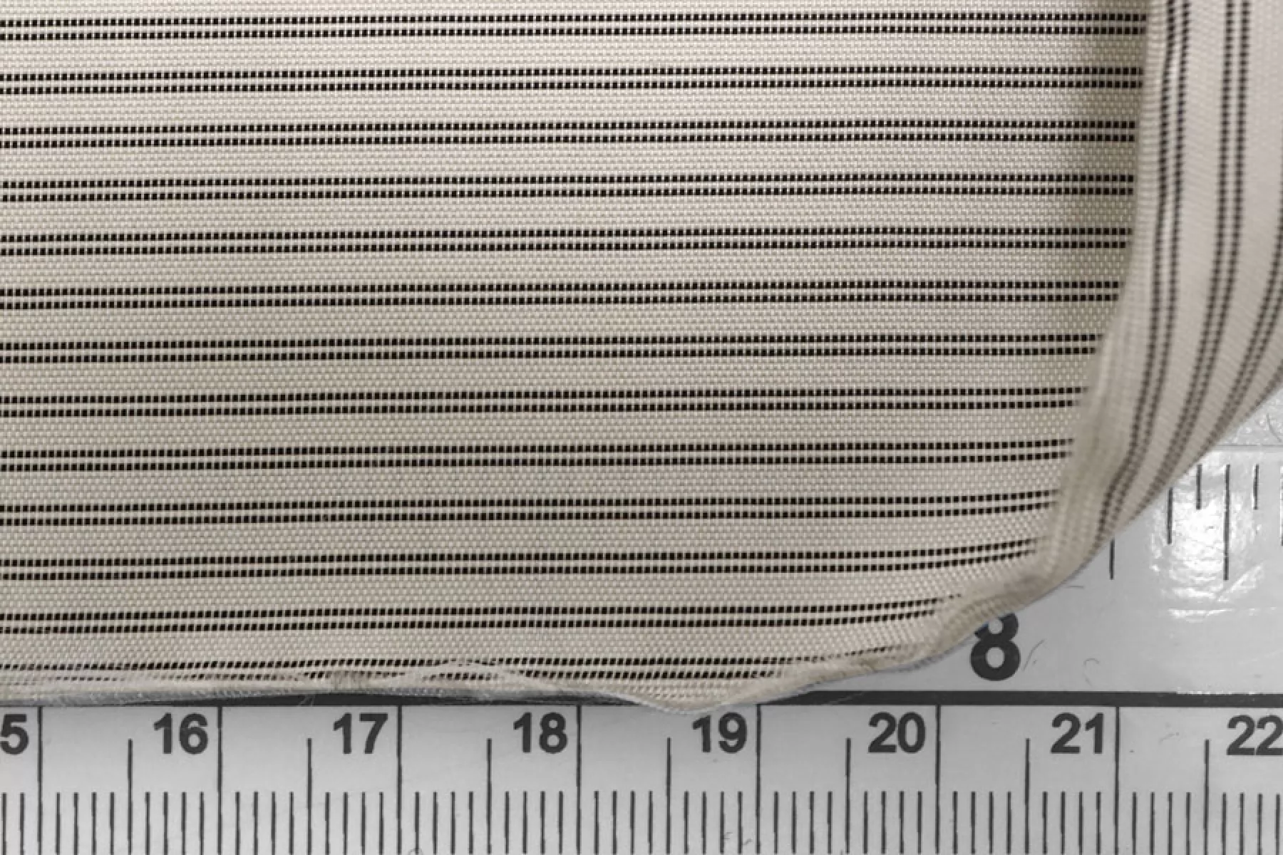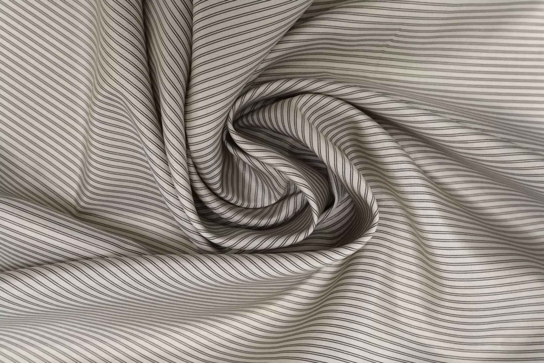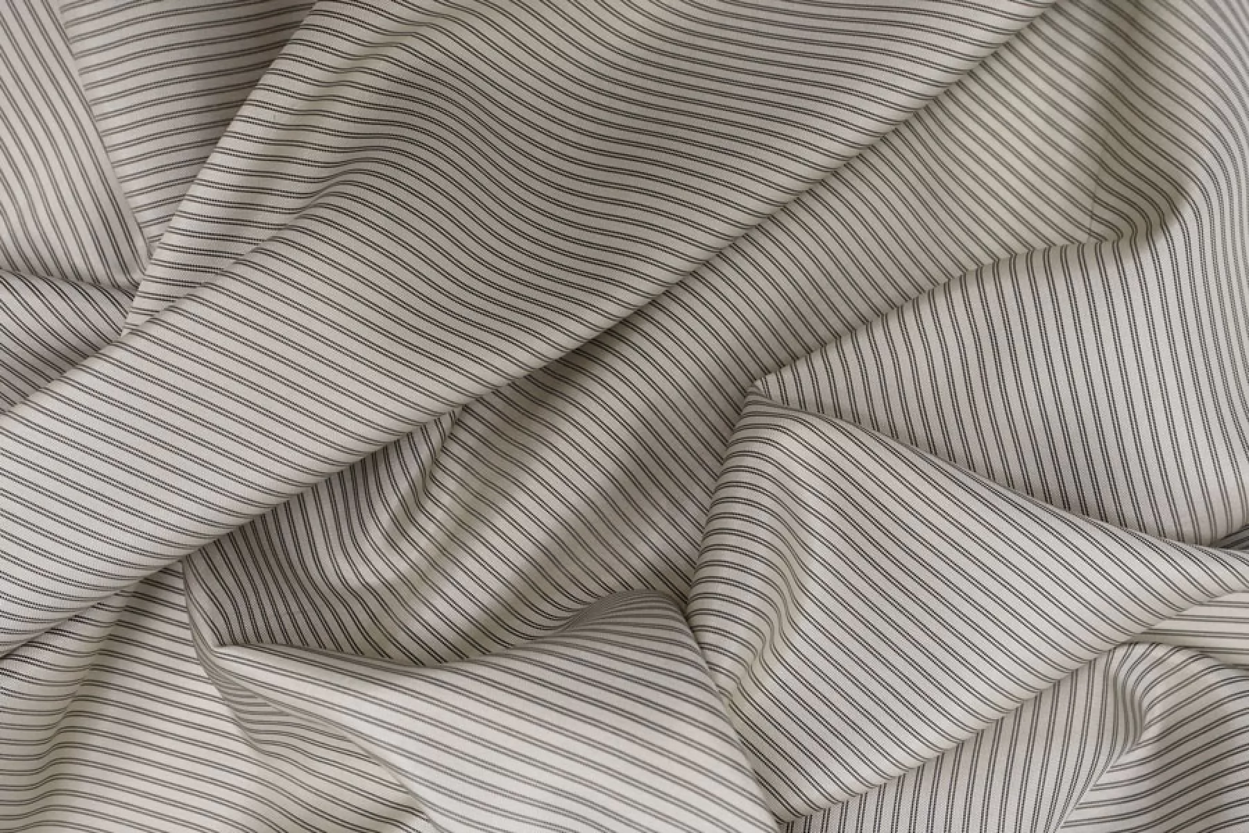 Подкладочная вискоза с ацетатом, узор- полосы поперек кромки, нити чёрного и светлого серо-бежевого цвета. Гладкая, тонкая, обладает лёгким лоском. Не тянется. Мнется. Подойдет как подкладочный материал к костюмной группе, демисезонным пальто, курткам. Обязательно учитывайте возможную усадку 5-10%