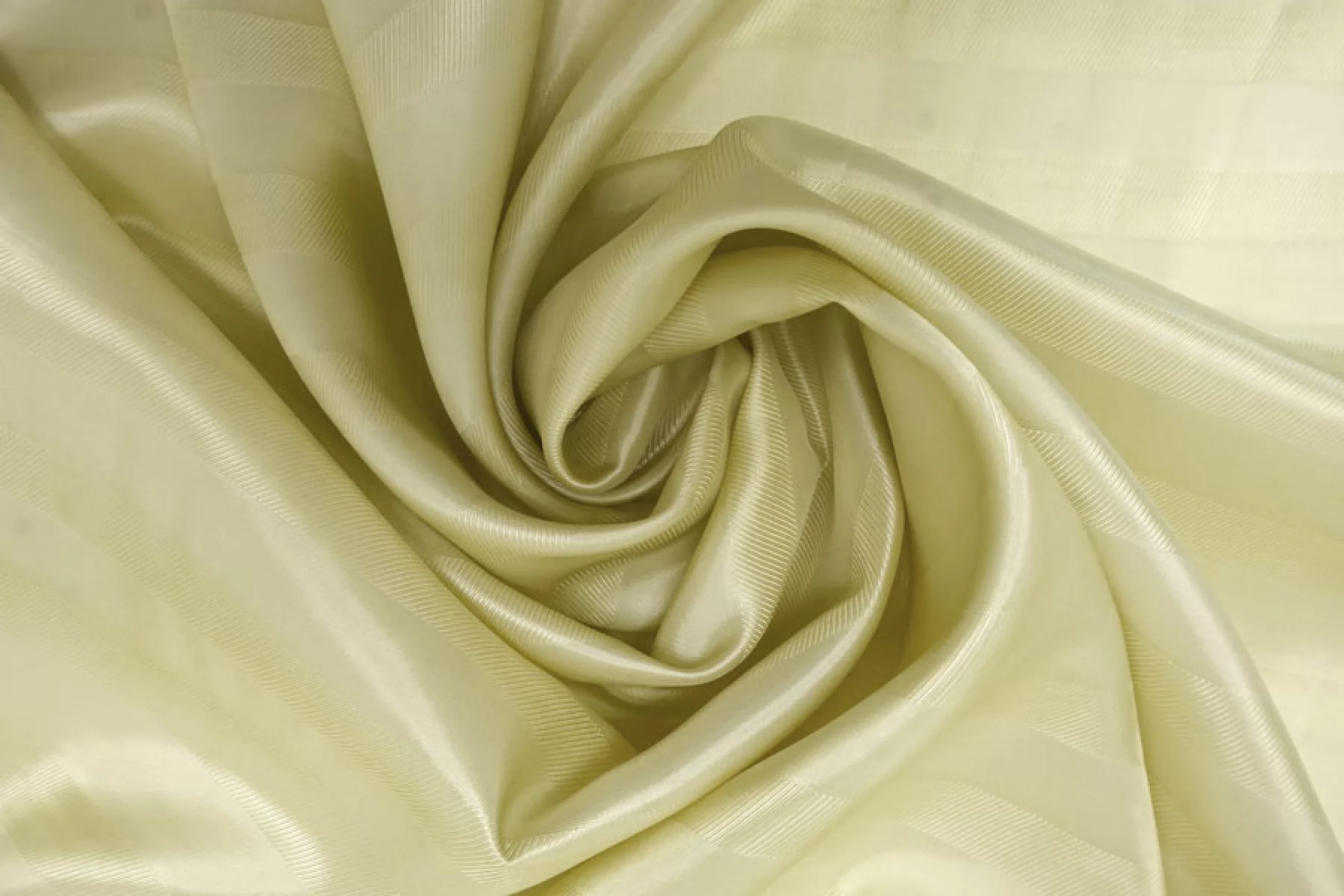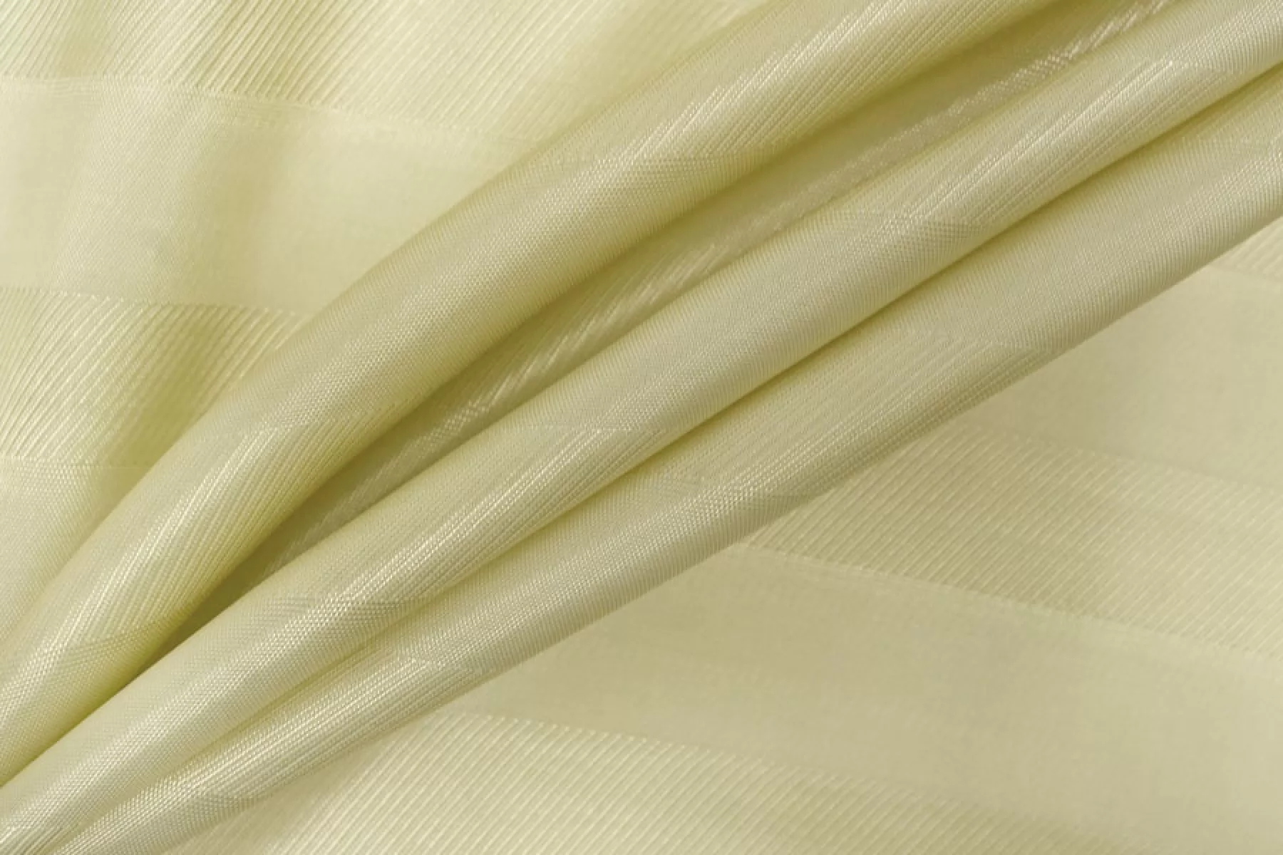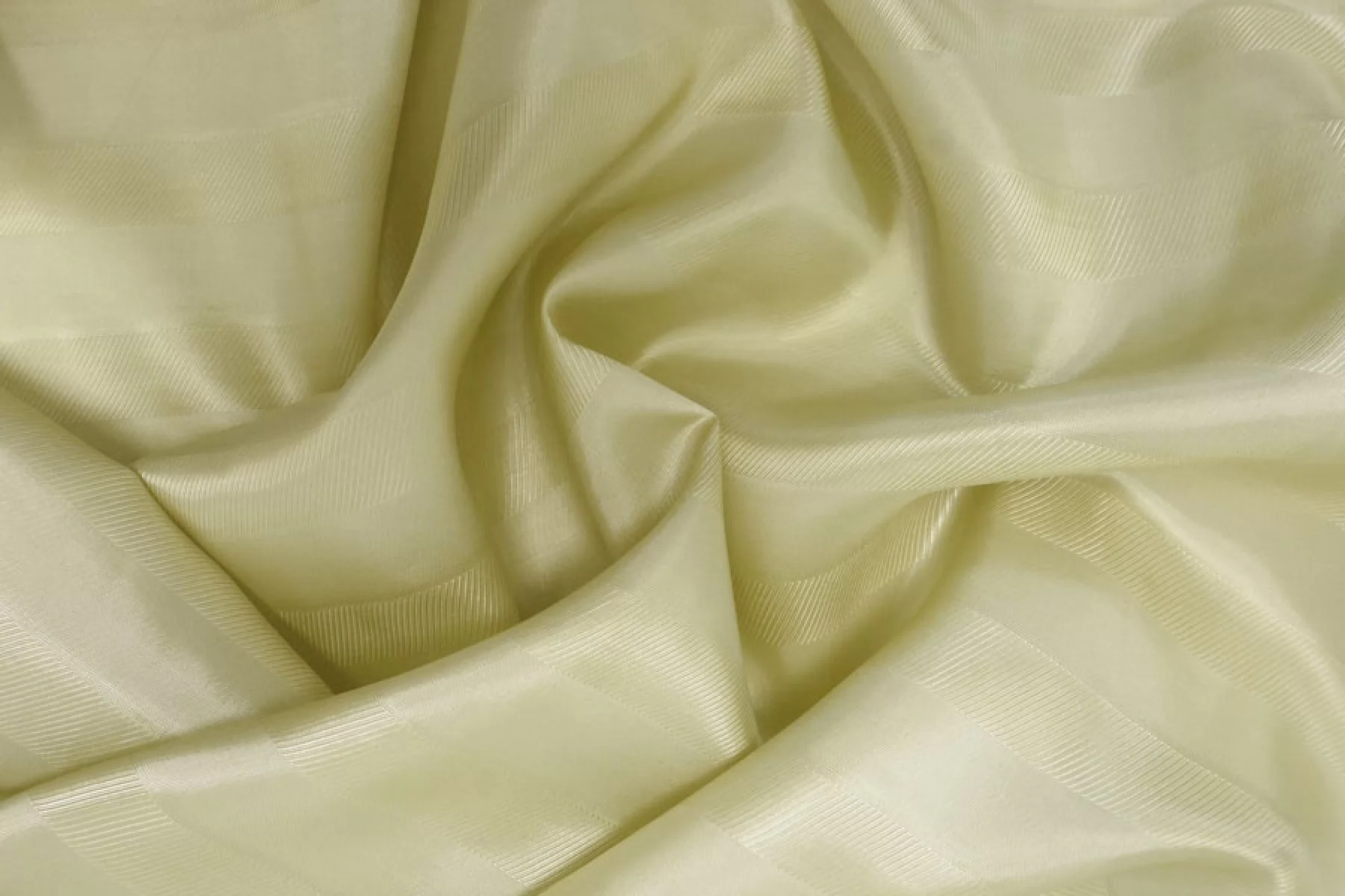Подкладочная жаккардовая вискоза высветленного, ненасыщенного жёлто-зелёного цвета. Жаккардовые полосы поперек кромки. Тактильно приятная, мягкая, скользящая. Обладает красивым лоском. Не тянется. Прекрасно подойдет к костюмно-плательной группе, курткам, тренчам. Обязательно учитывайте возможную усадку 5-10%