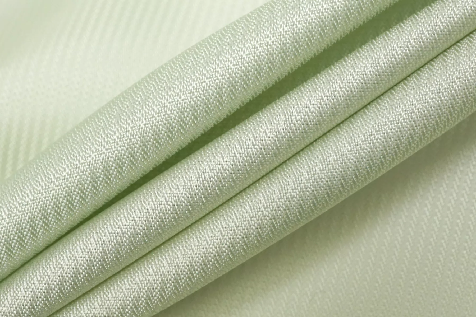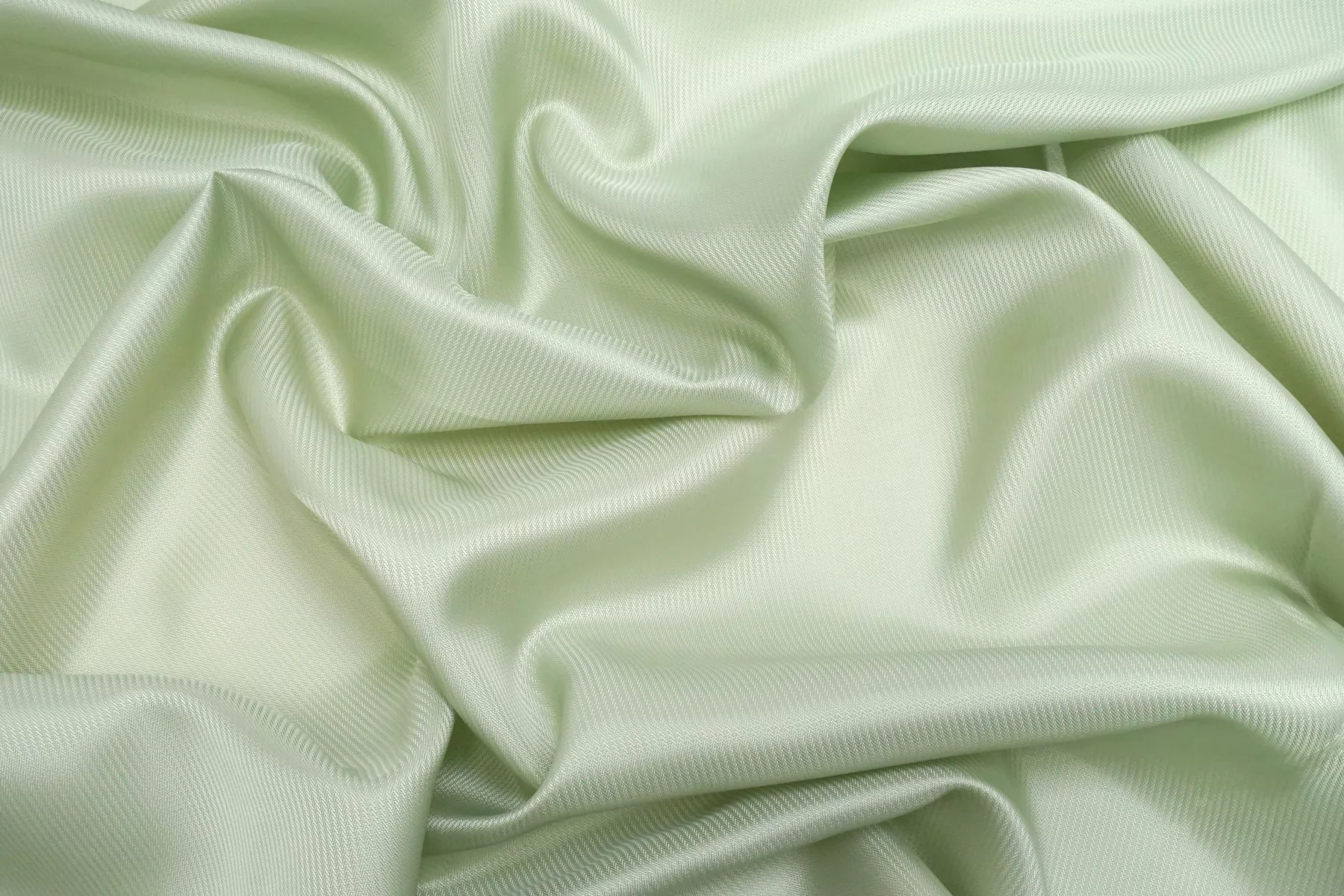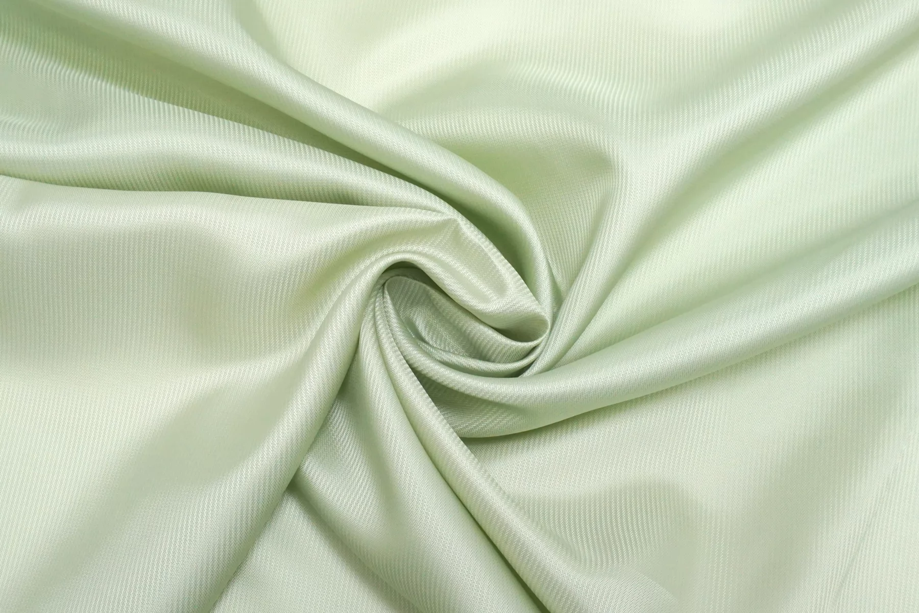 Подкладочная вискоза в красивом, светлом пастельном мятно-зелёном цвете. Плетение жаккардовое, выработка-мелкая ёлочка. Тактильно слегка шероховатая, но без грубости. Не тянется. Мнется. Подойдет как подкладочный материал к костюмно-плательной группе, демисезонным пальто, курткам. Обязательно учитывайте возможную усадку 5-10%