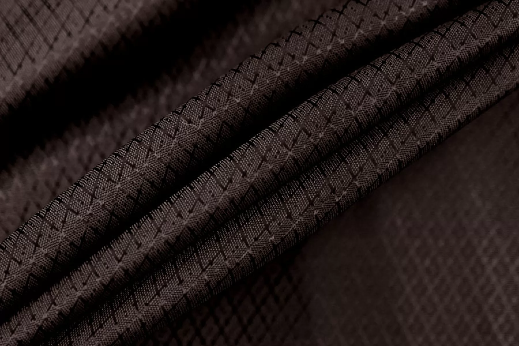 Подкладочная жаккардовая вискоза коричневого цвета. Тактильно приятная, мягкая, скользящая. Обладает красивым лоском. Не тянется. Прекрасно подойдет к костюмам, пальто и курткам. Обязательно учитывайте возможную усадку 5-10%