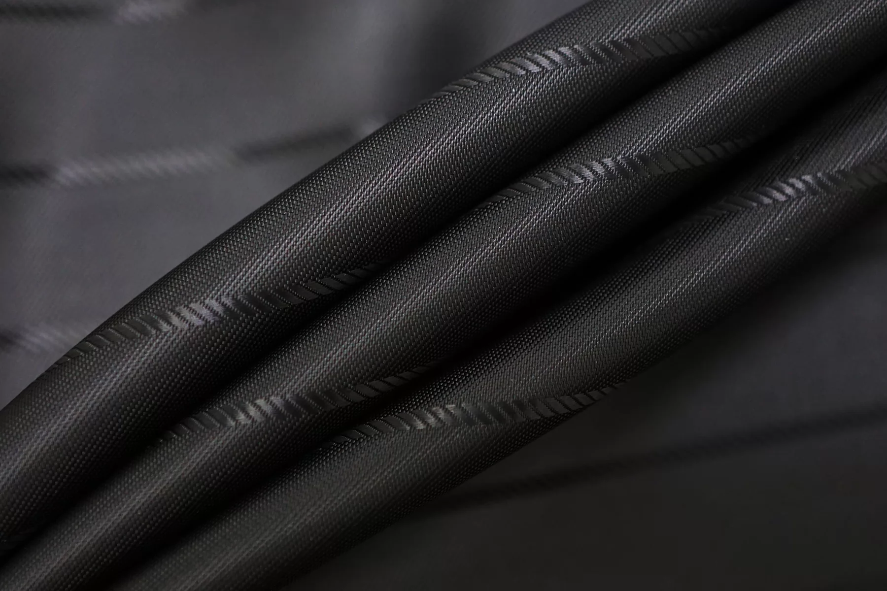 Подкладочная жаккардовая вискоза в чёрном цвете, с выработкой-полоской (поперек кромки). Тактильно приятная, мягкая, скользящая. Обладает красивым лоском. Не тянется. Прекрасно подойдет к костюмам, демисезонным пальто и курткам. Обязательно учитывайте возможную усадку 5-10%