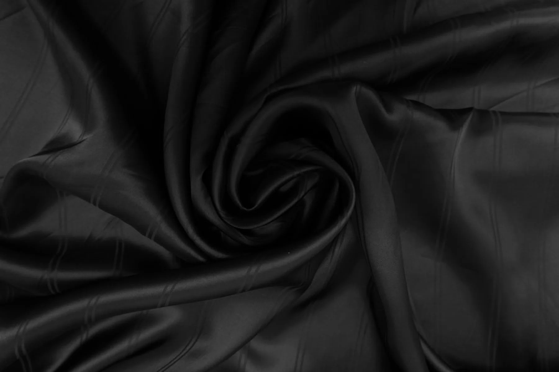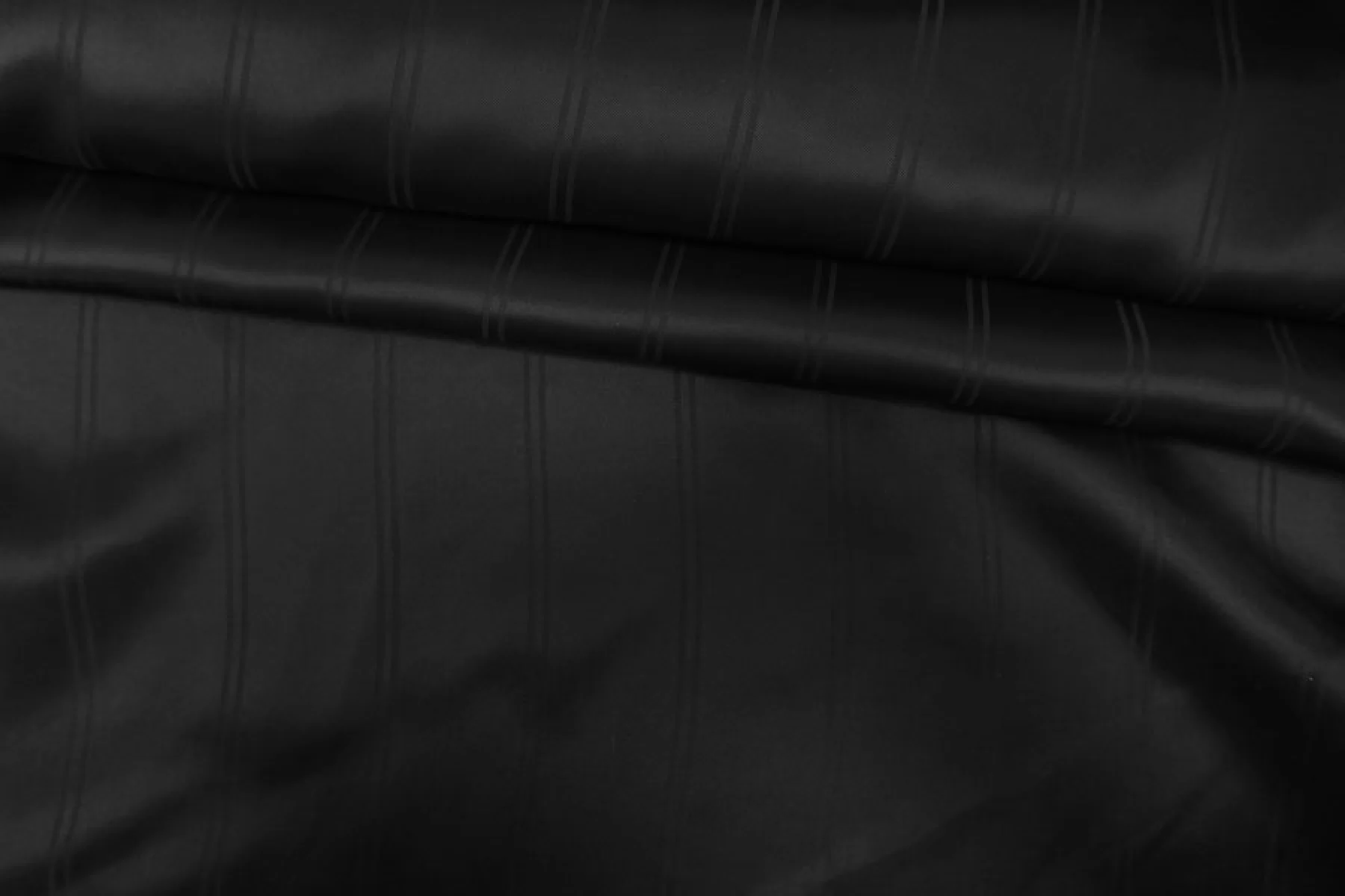 Подкладочная жаккардовая вискоза чёрного цвета, с выработкой-полоской (параллельно кромке). Тактильно приятная, мягкая, скользящая. Обладает красивым лоском. Не тянется. Прекрасно подойдет к костюмам, пальто и курткам. Обязательно учитывайте возможную усадку 5-10%