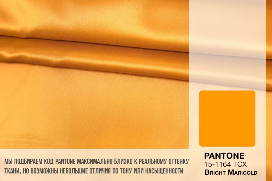 Подкладочная вискоза красивого, насыщенного желто-оранжевого цвета, саржевое плетение. Гладкая, тонкая, обладает красивым лоском. Не тянется. Мнется. Подойдет как подкладочный материал к костюмно-плательной группе, демисезонным пальто, курткам. Обязательно учитывайте возможную усадку 5-10%