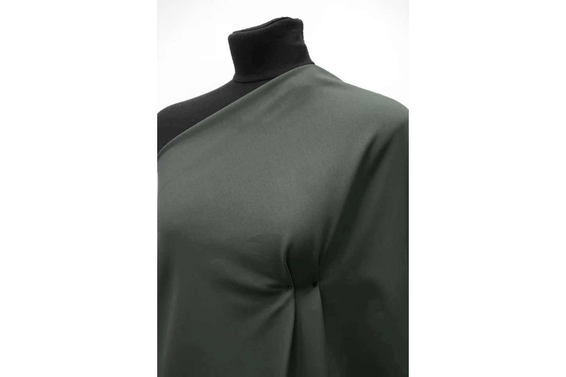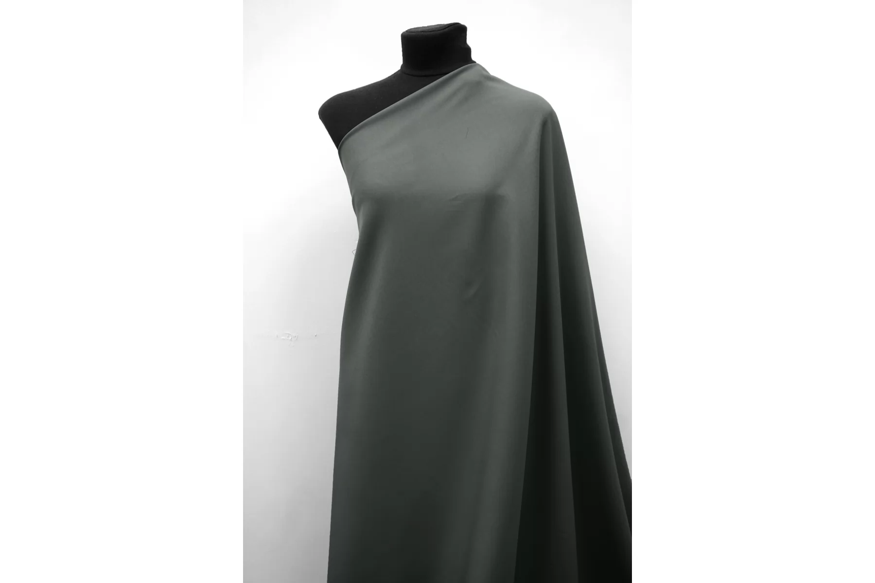 Отличного качества поликоттон в приглушенном, сером цвете с зелёным подтоном, полотняного плетения от бренда Max Mara. Тактильно очень приятный, мягкий, гладкий. Достаточно плотный, хорошо тянется. Не просвечивает. Немного мнется. Упругая пластика, форму держит. Шьем костюмы, платья, юбки, брюки и не только.