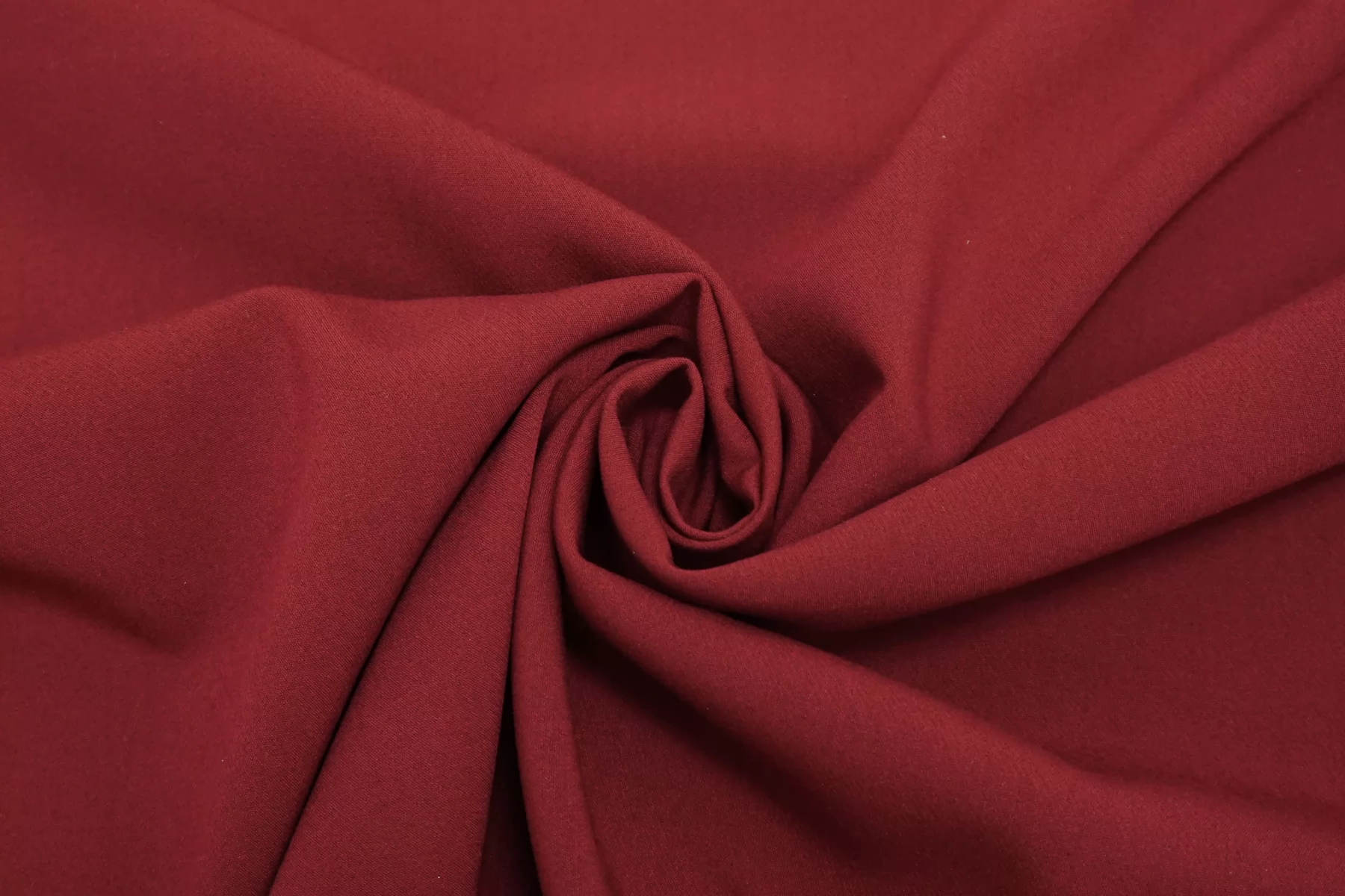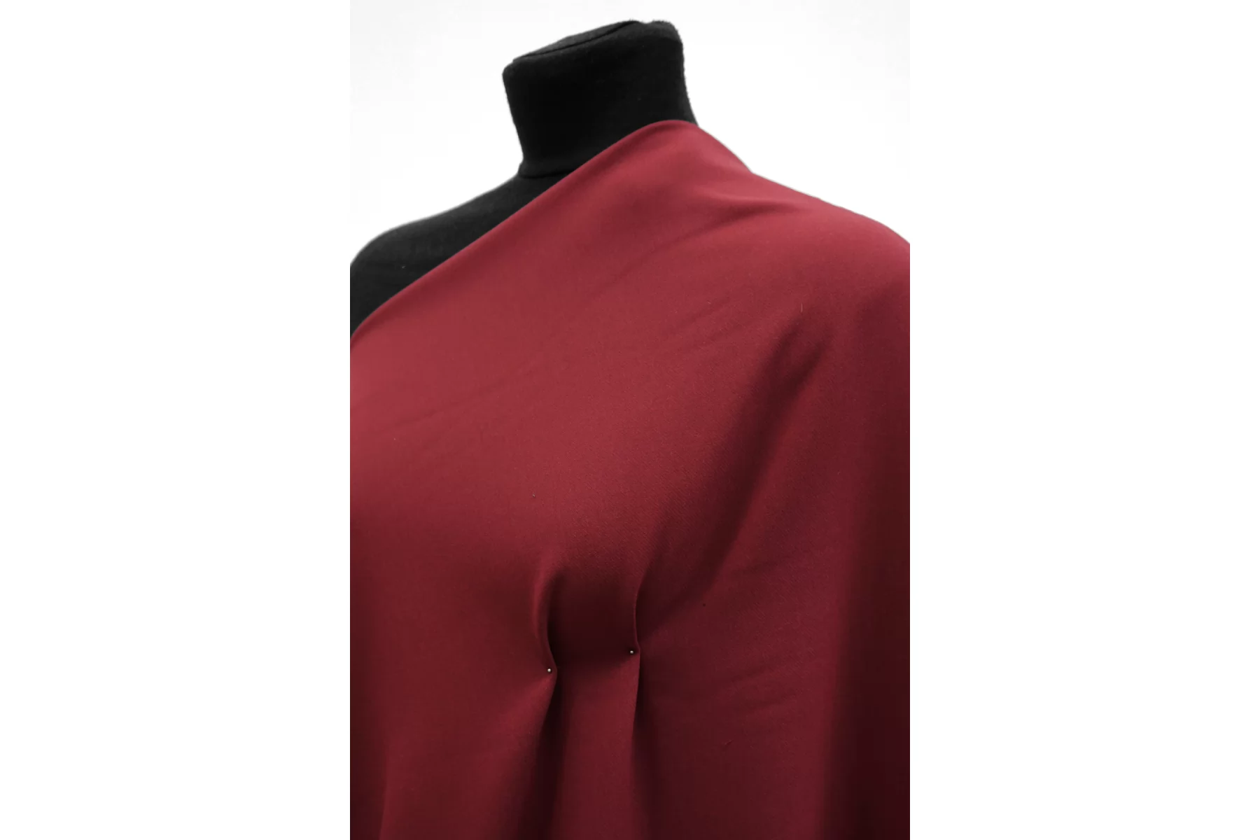 Костюмно-плательная поливискоза от бренда Max Mara в бордовом цвете. Двухслойная, но слои не разделяются. Пластичная, мягкая и приятная тактильно. Не мнется. Не просвечивает. Хорошо пружинит за счет эластана. Поливискоза отличается хорошей износостойкостью и прочностью. Уход деликатный. Шьем платья, брюки, юбки, костюмы мягкой формы.
