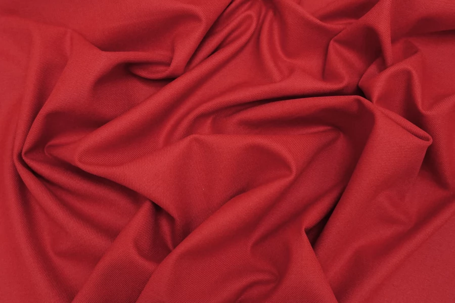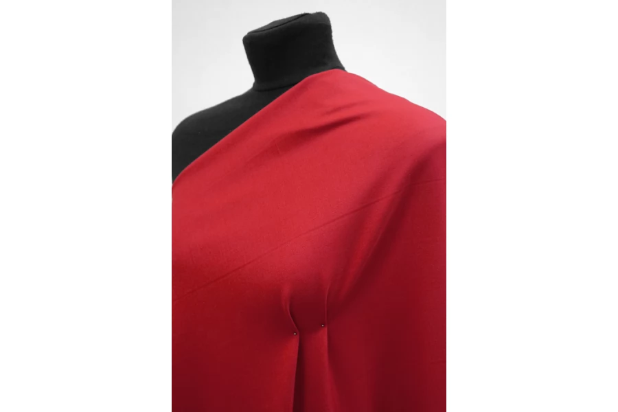Костюмно-плательная поливискоза от бренда Max Mara в насыщенном красном цвете, диагонального плетения. Пластичная, мягкая и приятная тактильно. Не мнется. Не просвечивает. Хорошо пружинит за счет эластана. Поливискоза отличается хорошей износостойкостью и прочностью. Уход деликатный. Шьем платья, брюки, шорты, юбки, костюмы мягкой формы.