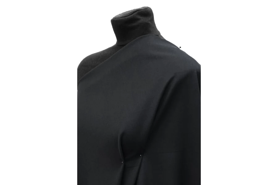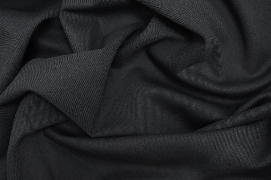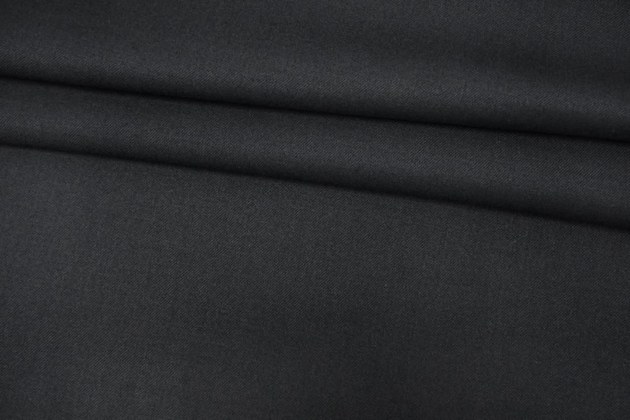 Костюмно-плательная поливискоза от бренда Max Mara в тёмно-сером графитовом цвете, диагонального плетения. Пластичная, мягкая и приятная тактильно. Не мнется. Не просвечивает. Хорошо пружинит за счет эластана. Поливискоза отличается хорошей износостойкостью и прочностью. Уход деликатный. Шьем платья, костюмные варианты, брюки, мягкие жакеты и не только.