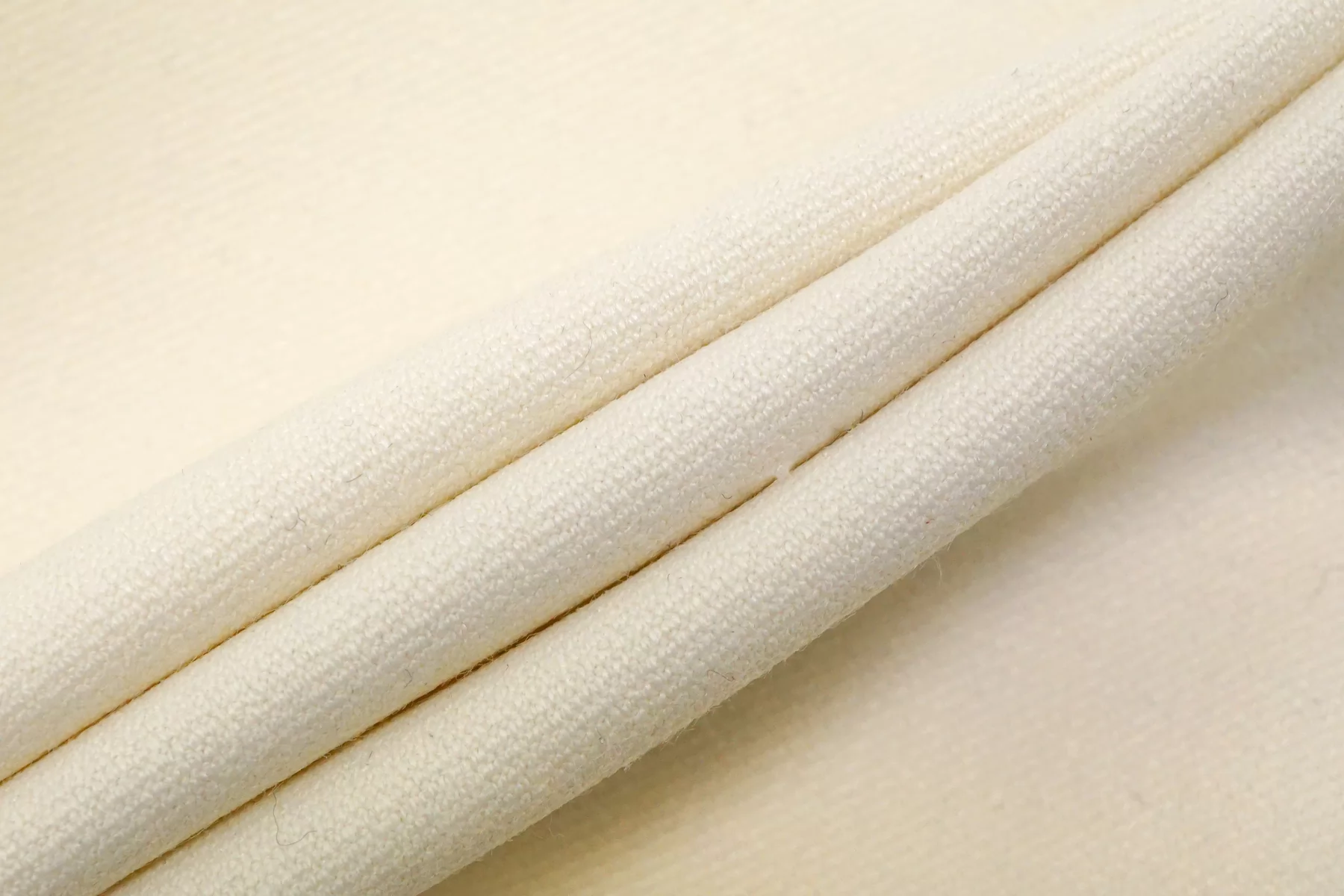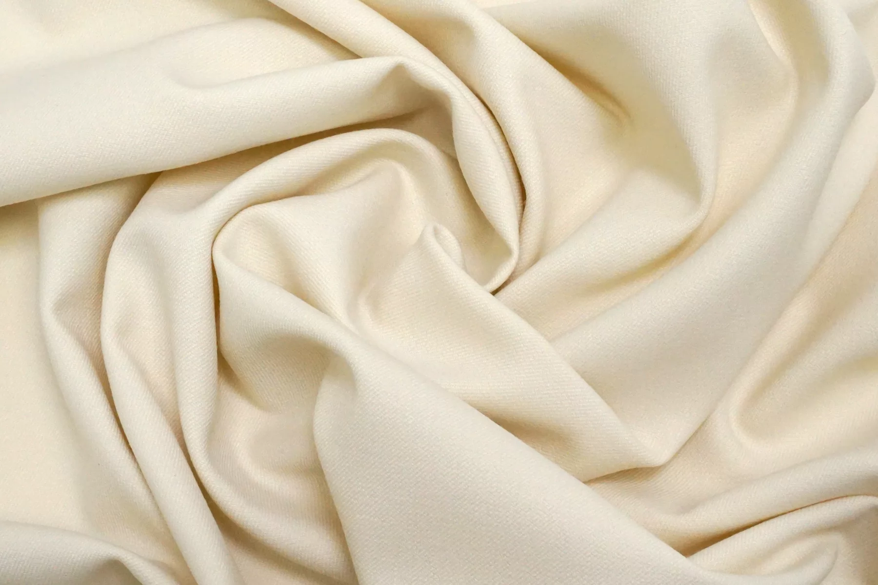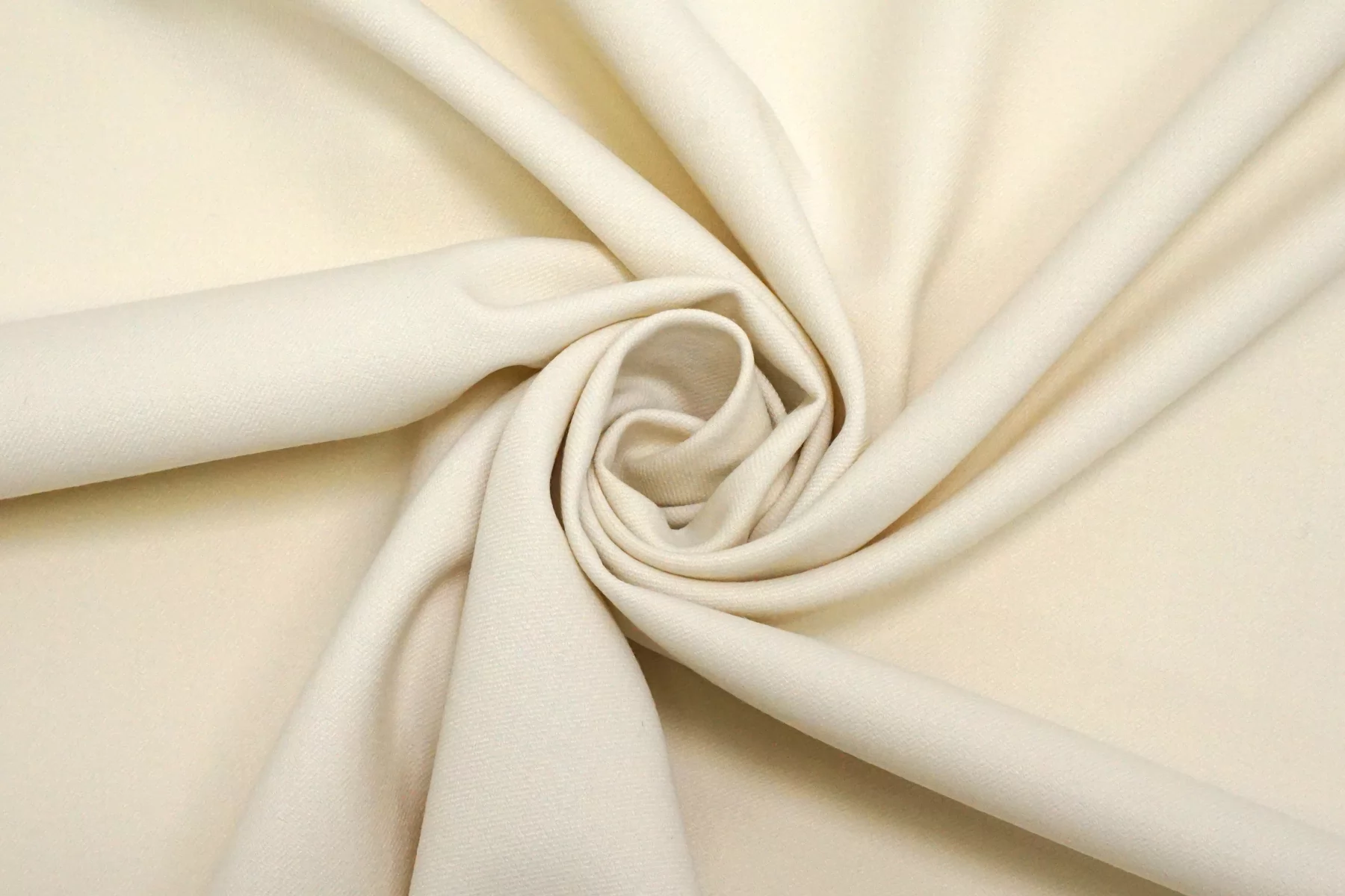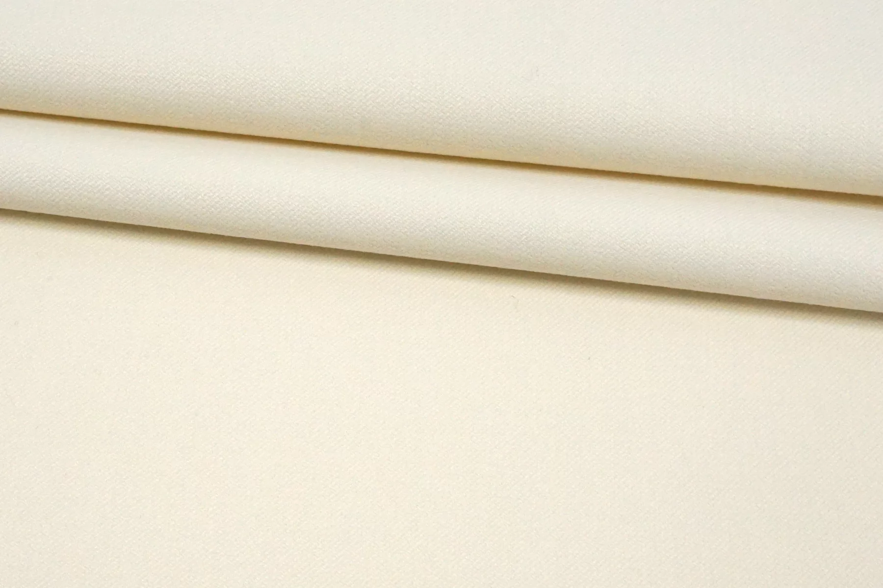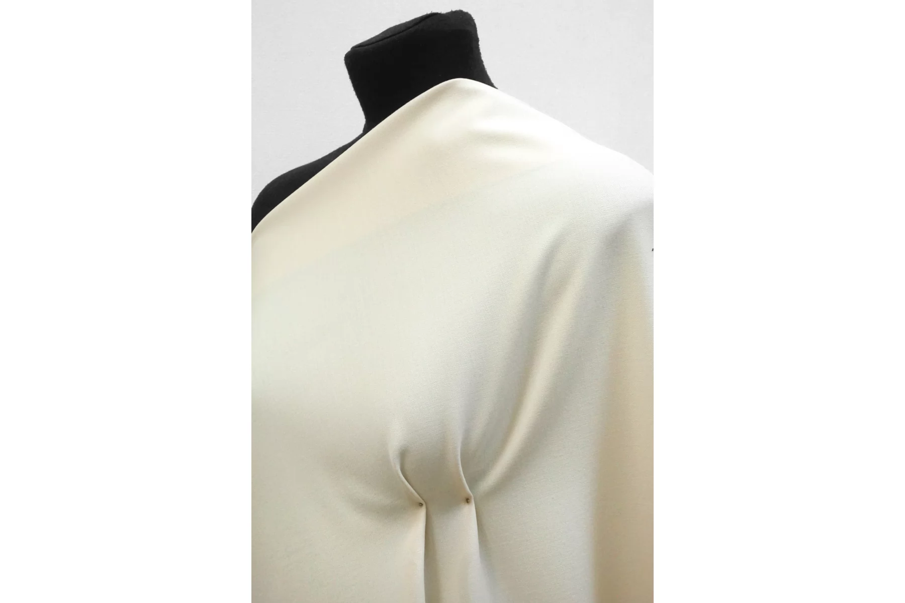 Костюмно-плательная поливискоза от бренда Max Mara в молочном цвете, диагонального плетения. Пластичная, мягкая и приятная тактильно. Не мнется. Не просвечивает. Хорошо пружинит за счет эластана. Поливискоза отличается хорошей износостойкостью и прочностью. Уход деликатный. Шьем платья, брюки, шорты, юбки, костюмы мягкой формы.