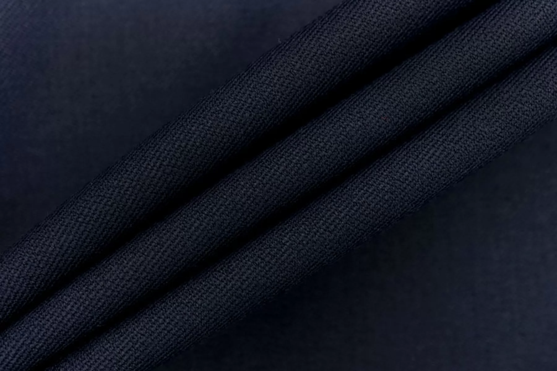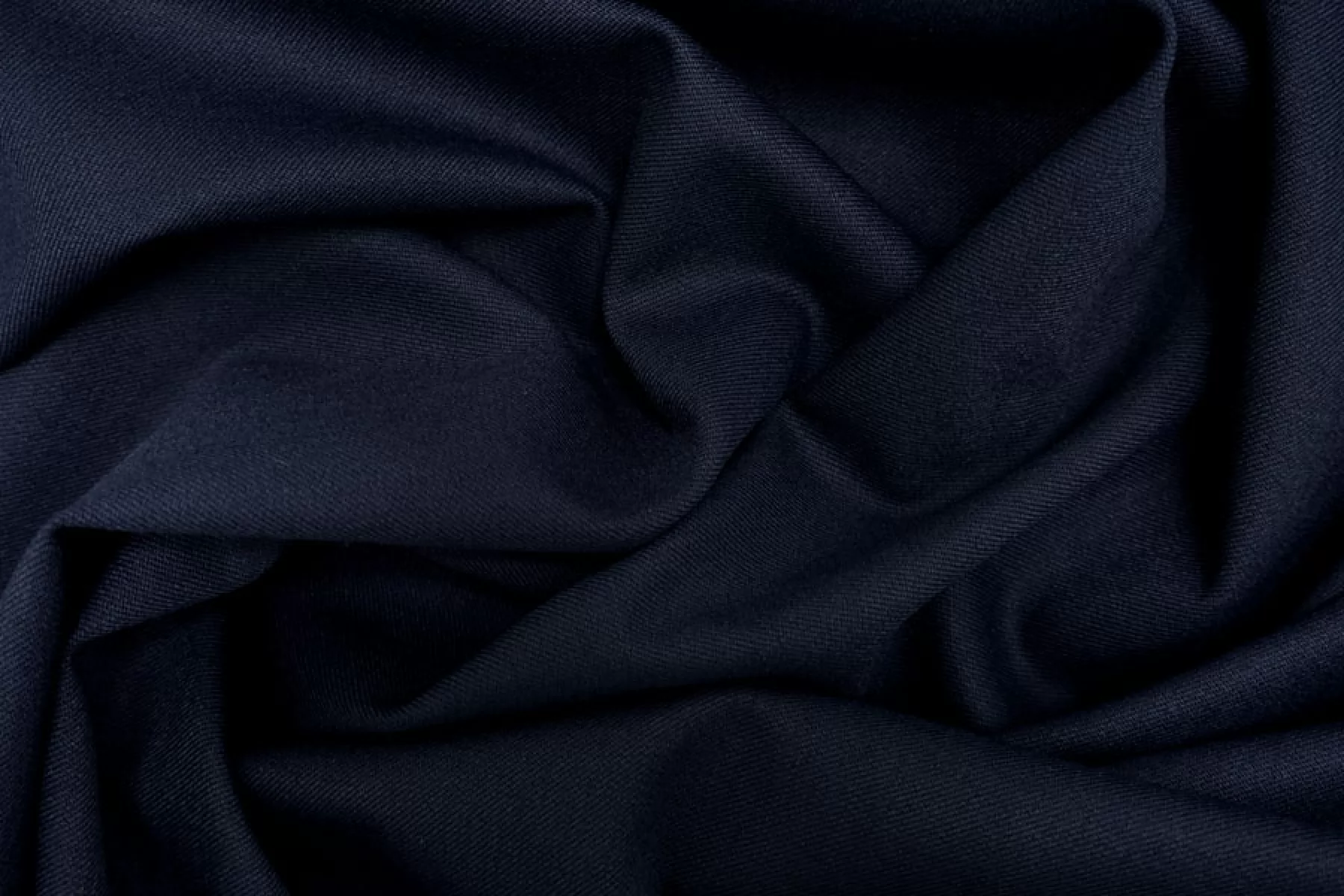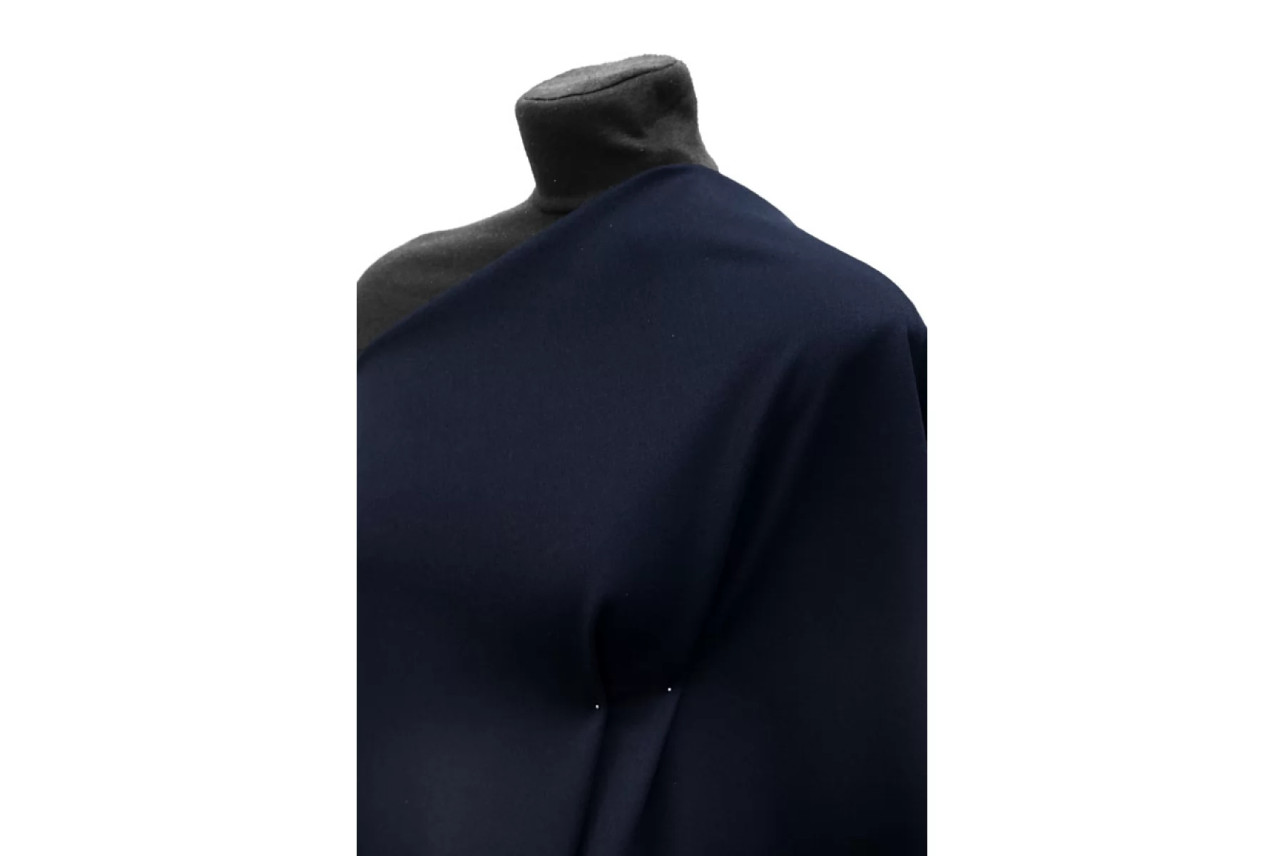 Костюмно-плательная поливискоза от бренда Max Mara в тёмно-синем цвете, диагонального плетения. Пластичная, мягкая и приятная тактильно. Не мнется. Не просвечивает. Тянется по утку и диагонали, немного растягивается по основе. Поливискоза отличается хорошей износостойкостью и прочностью. Уход деликатный. Шьем платья, брюки, юбки, костюмы мягкой формы.