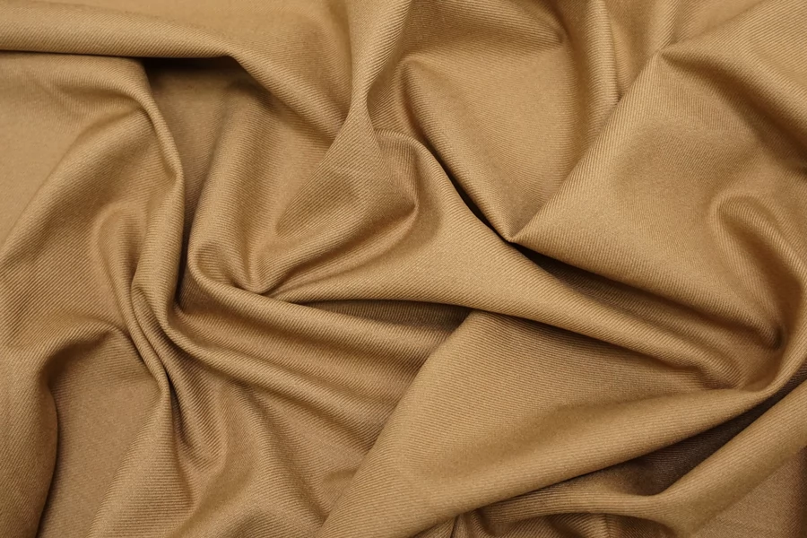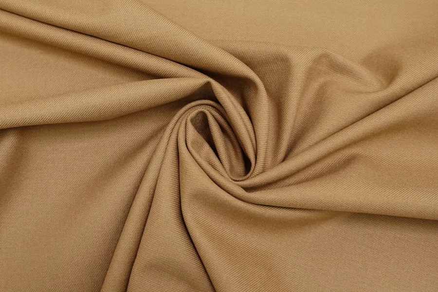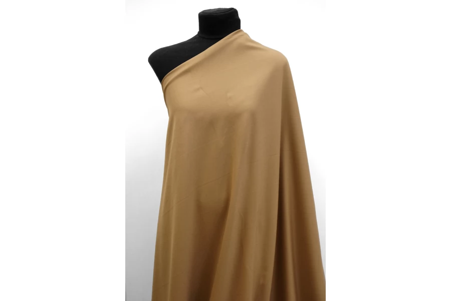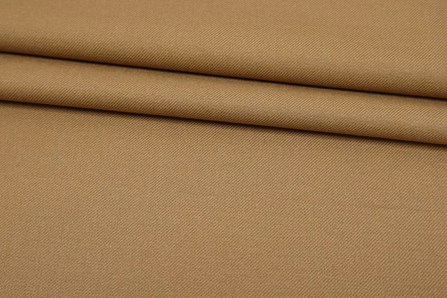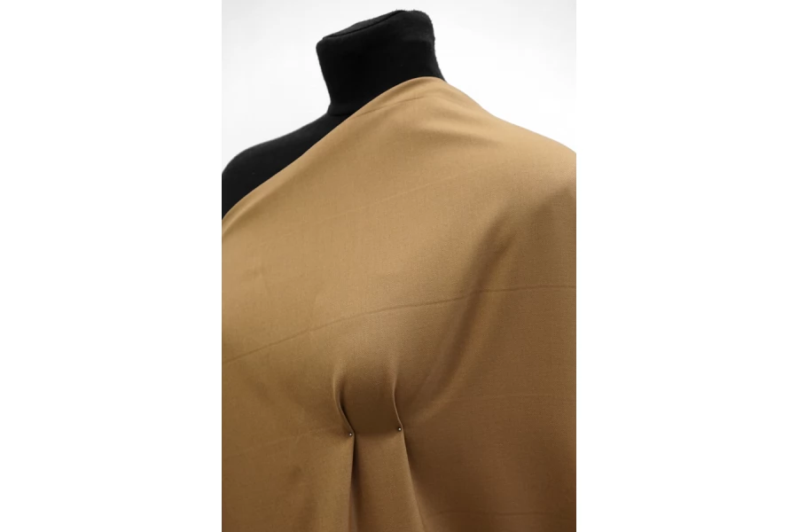 Костюмно-плательная поливискоза от бренда Max Mara в песочном оттенке кэмел, диагонального плетения. Пластичная, мягкая и приятная тактильно. Не мнется. Не просвечивает. Хорошо пружинит за счет эластана. Поливискоза отличается хорошей износостойкостью и прочностью. Уход деликатный. Шьем платья, брюки, юбки, костюмы мягкой формы.