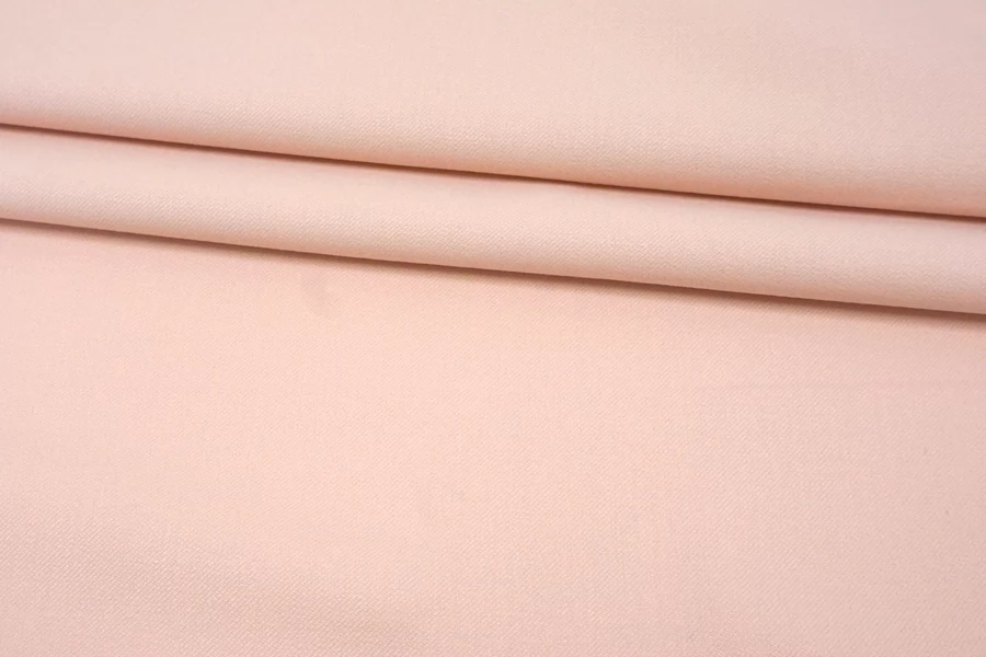 Костюмно-плательная поливискоза от бренда Max Mara в светлом, нежном розово-персиковом цвете, диагонального плетения. Пластичная, мягкая и приятная тактильно. Не мнется. Не просвечивает. Хорошо пружинит за счет эластана. Поливискоза отличается хорошей износостойкостью и прочностью. Уход деликатный. Шьем платья, брюки, шорты, юбки, костюмы мягкой формы.