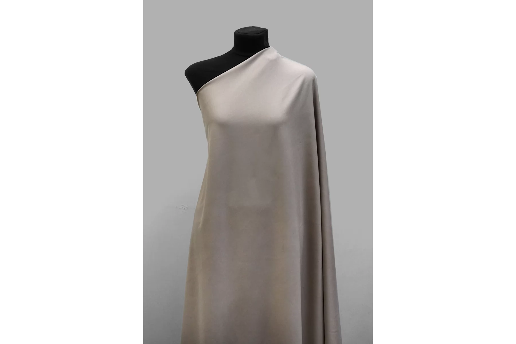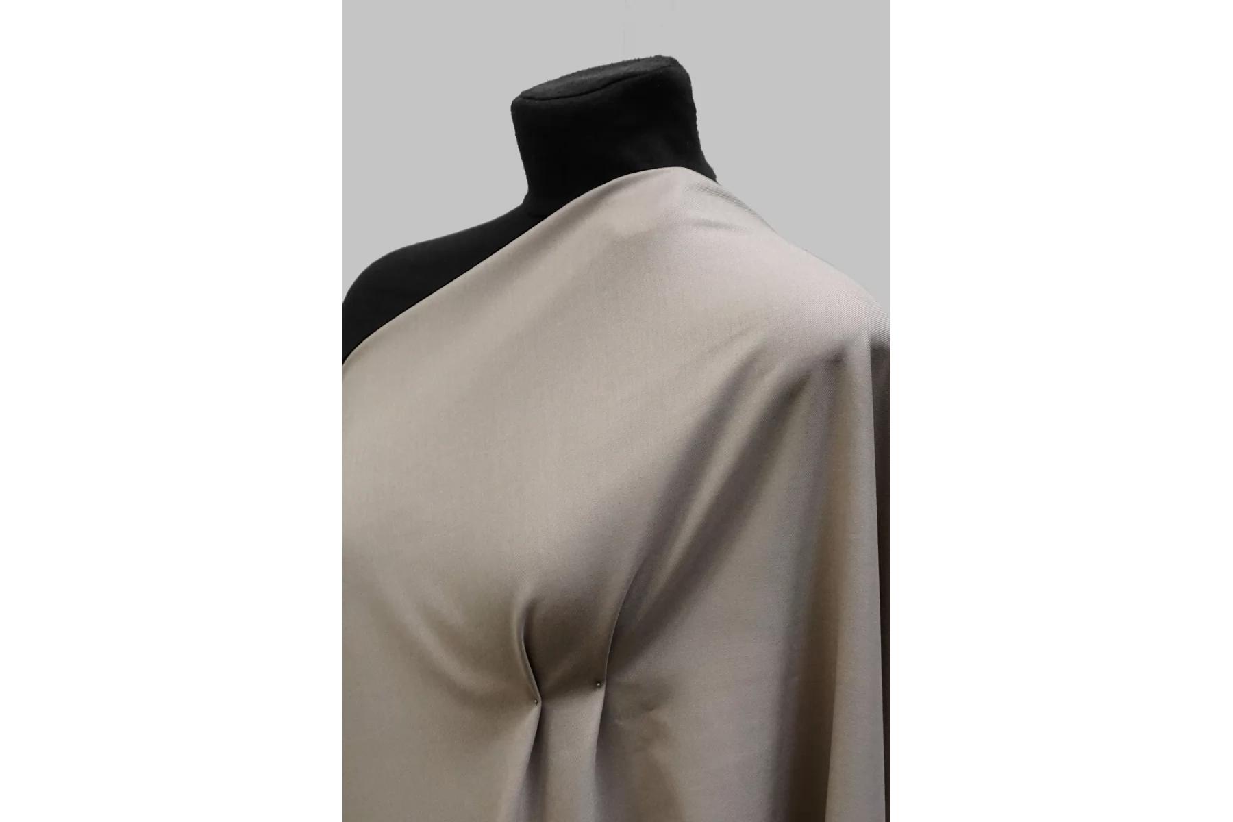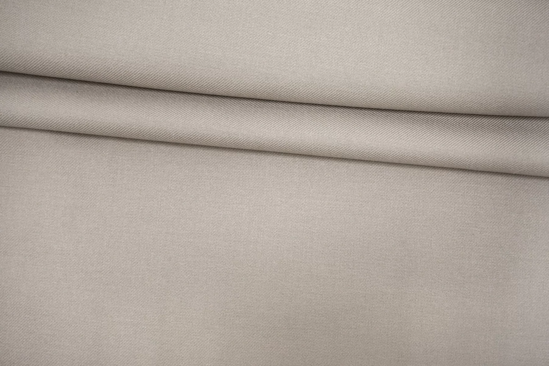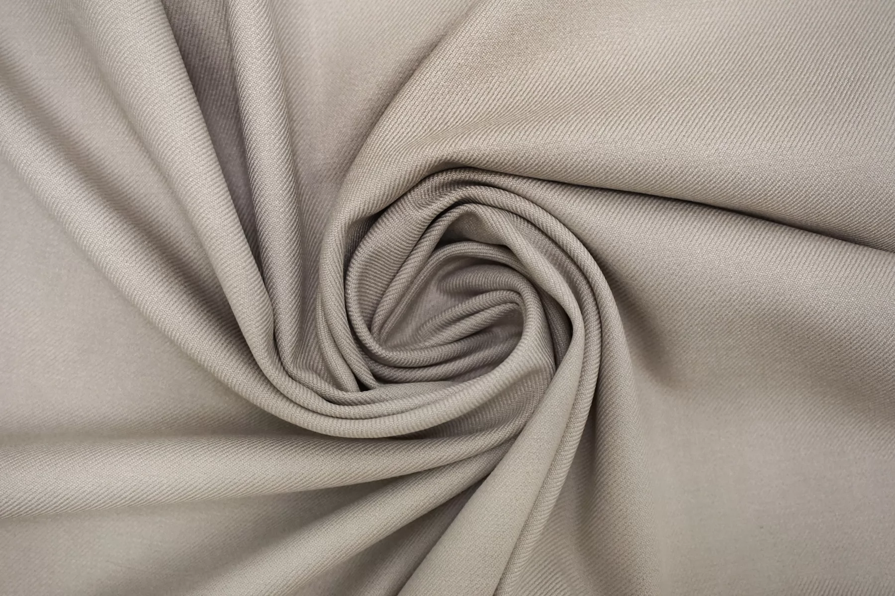 Костюмно-плательная поливискоза от бренда Max Mara в красивом, светлом серо-бежевом оттенке (без желтизны), диагонального плетения. Пластичная, мягкая и приятная тактильно. Не мнется. Не просвечивает. Хорошо пружинит за счет эластана. Поливискоза отличается хорошей износостойкостью и прочностью. Уход деликатный. Шьем платья, брюки, юбки, костюмы мягкой формы.