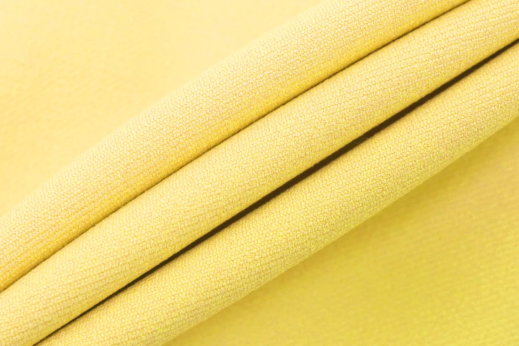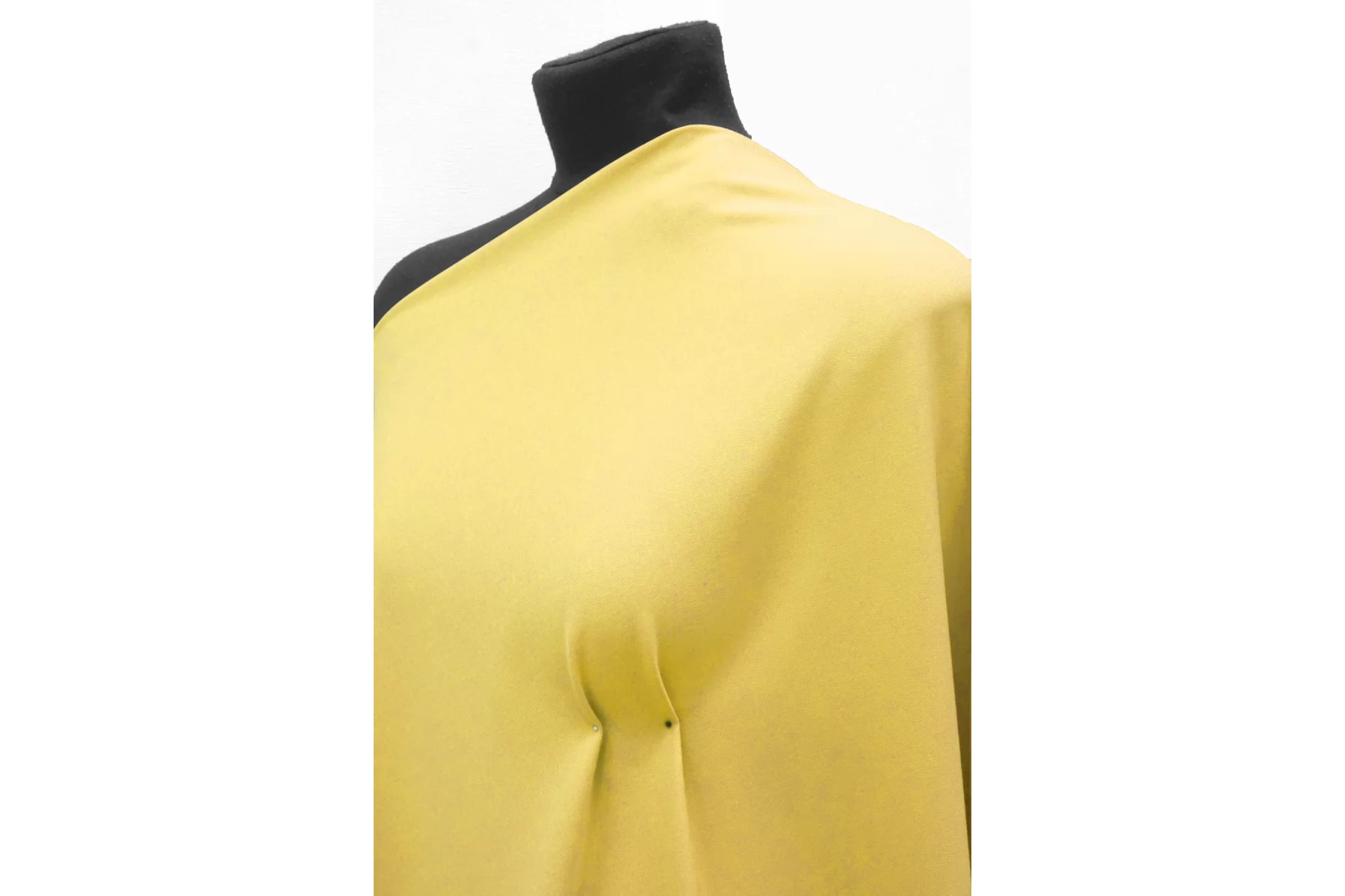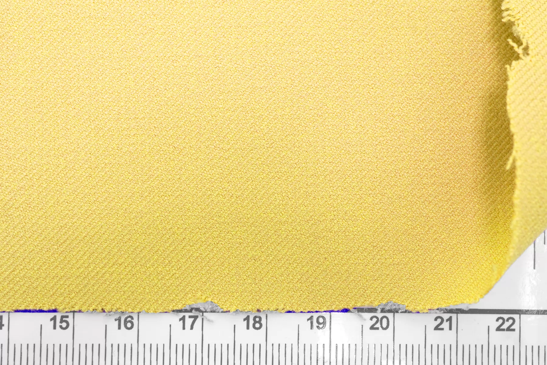 Костюмно-плательная поливискоза от бренда Max Mara в слегка высветленном жёлтом цвете, диагонального плетения. Пластичная, мягкая и приятная тактильно. Не мнется. Не просвечивает. Хорошо пружинит за счет эластана. Поливискоза отличается хорошей износостойкостью и прочностью. Уход деликатный. Шьем платья, костюмные варианты, брюки, мягкие жакеты и не только.