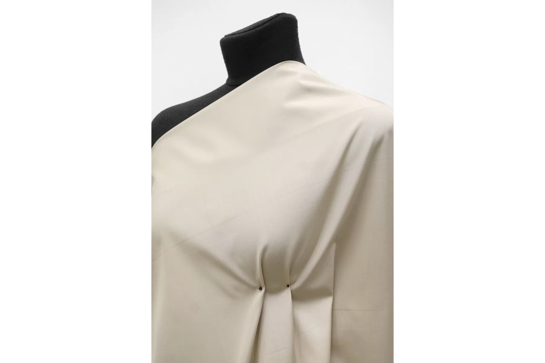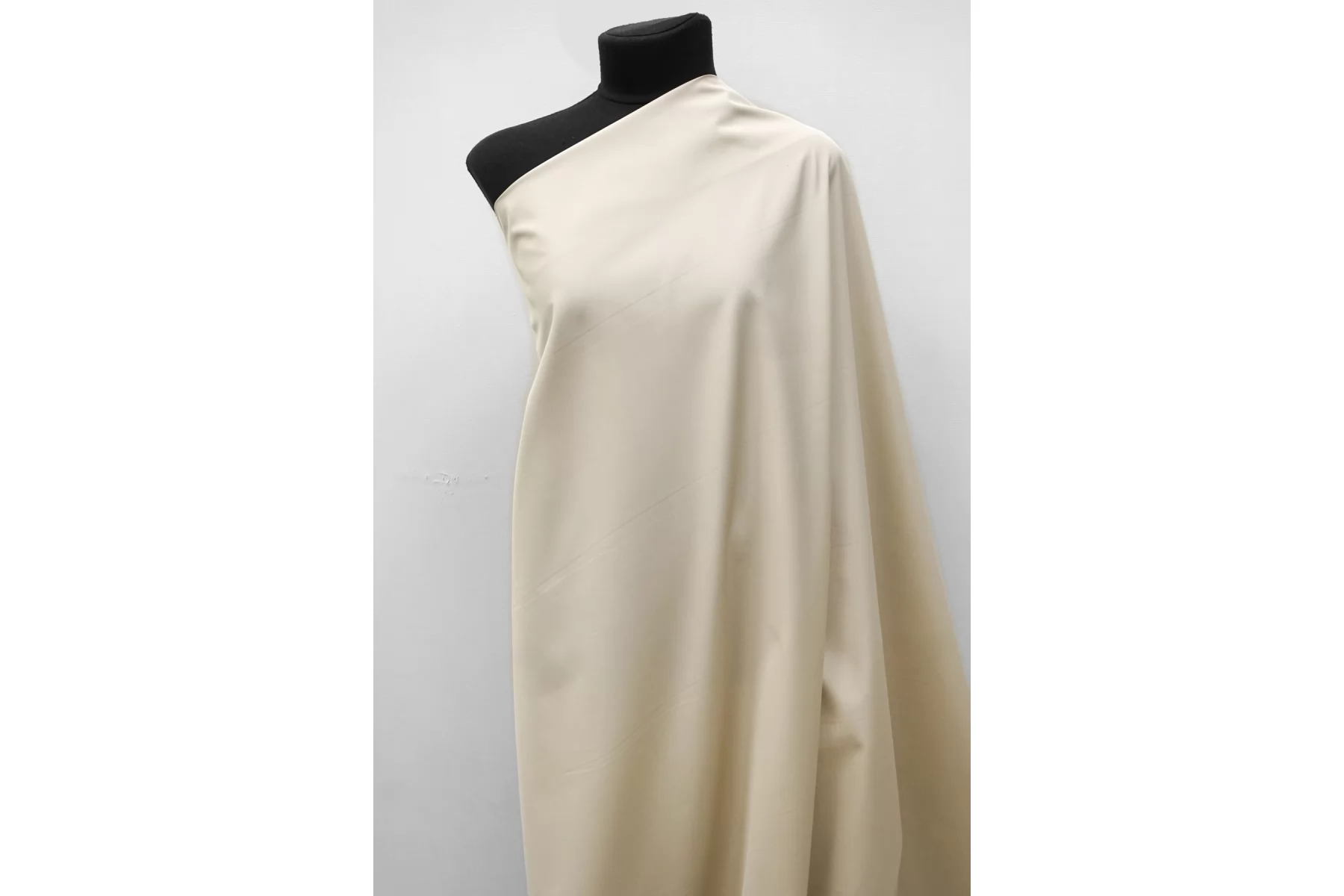 Итальянский рубашечный мерсеризованный хлопковый поплин от бренда Max Mara, чуть высветленного бежевого цвета. Материал гладкий, мягкий, тонкий, легкий. Немного мнется и немного просвечивает. Не тянется, очень пластичный но при этом держит форму. Прекрасный вариант на рубашки, юбки, платья. Материал дает усадку.