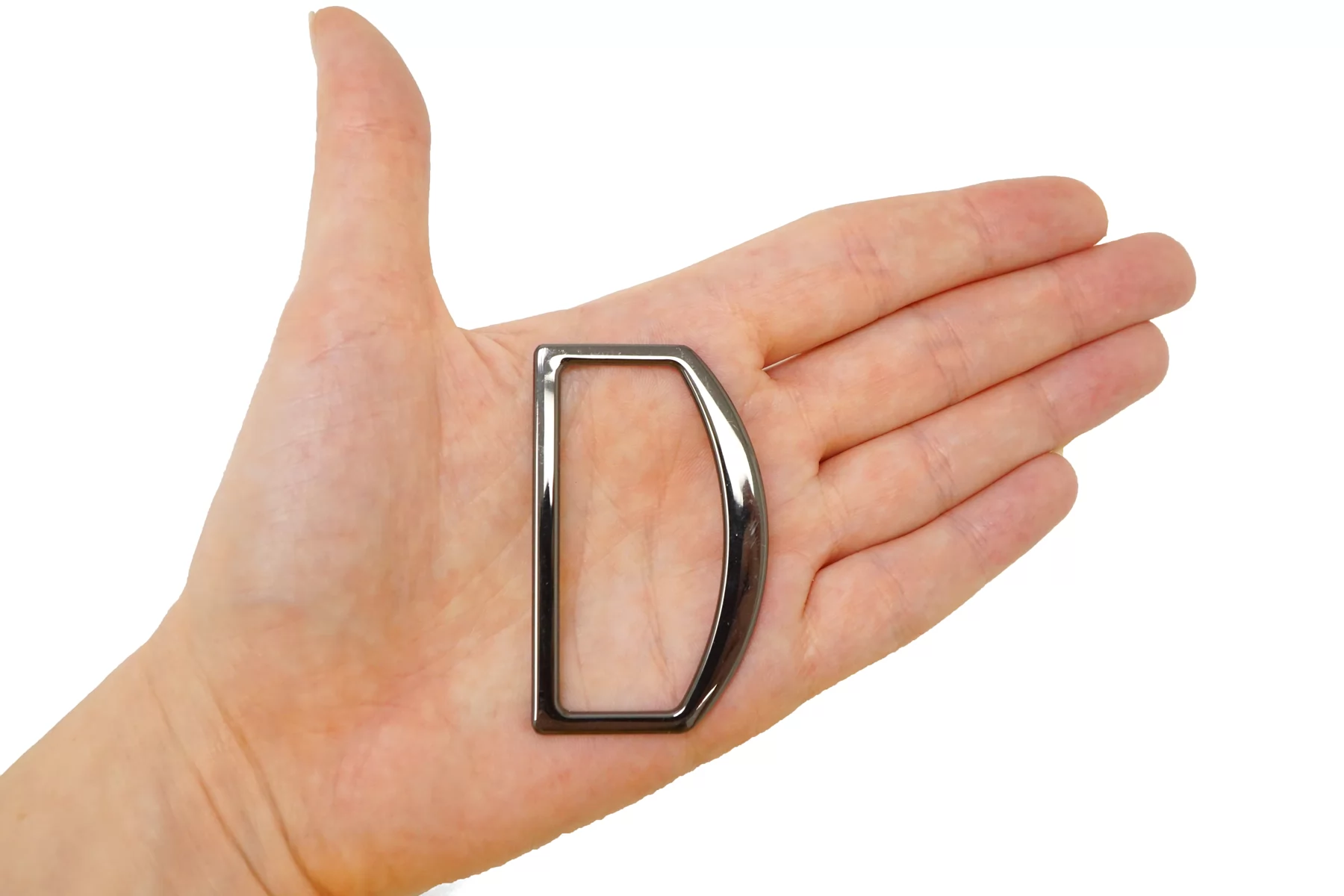 Металлическое полукольцо из металла цвета темный никель . Внутренний размер (под ширину ремешка) - 50 мм. Полукольца применяются для пошива сумок, рюкзаков, одежды для активного отдыха и закрепления ремней. Обратите внимание, что для ремня потребуется 2 штуки.