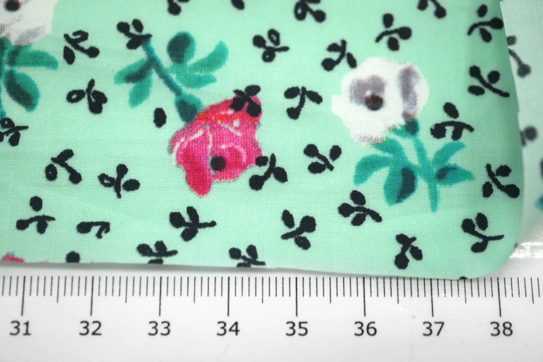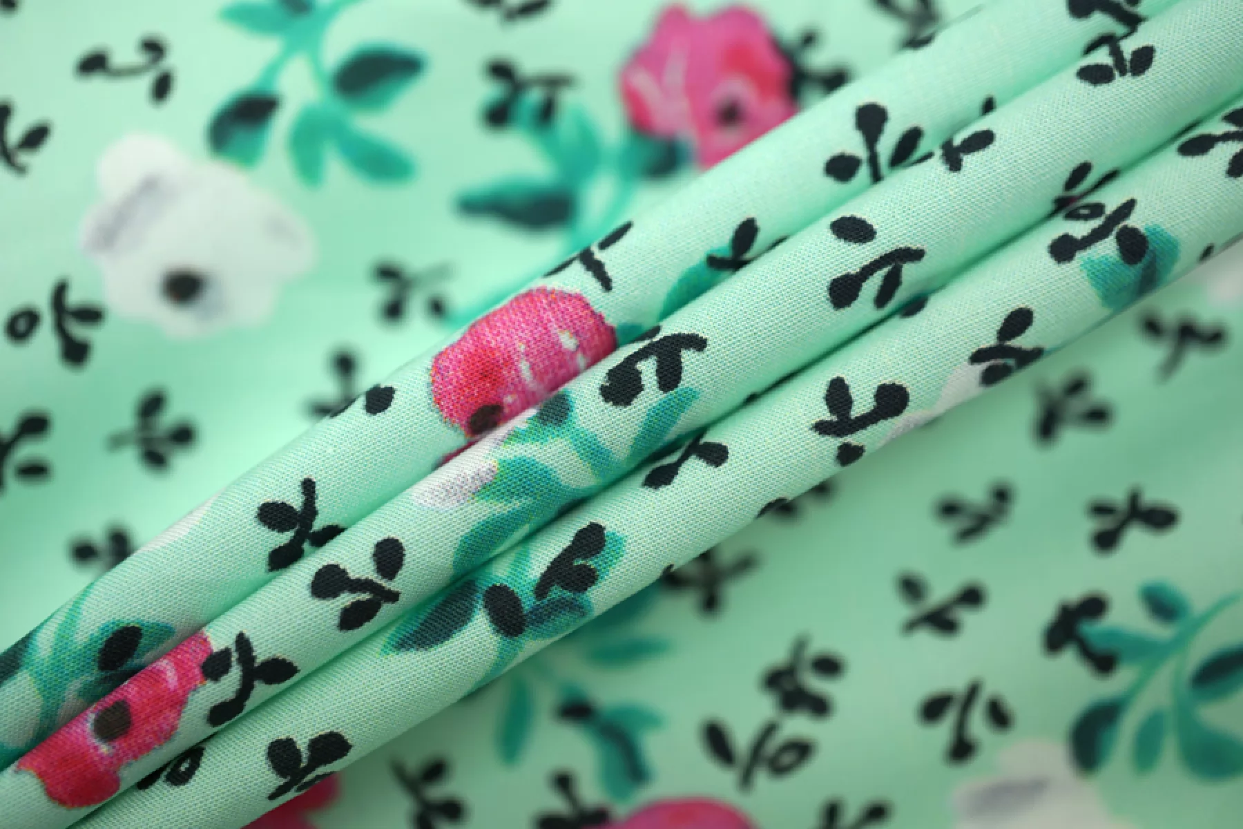 Поплин мерсеризованный цветочки на мятно-бирюзовом фоне MII H9/5/ A77 06082130