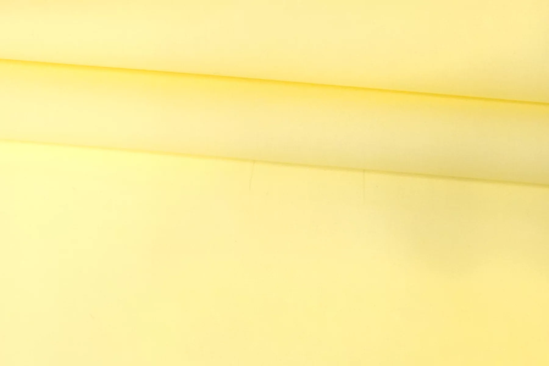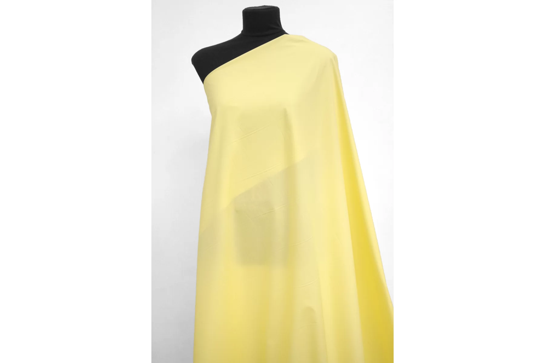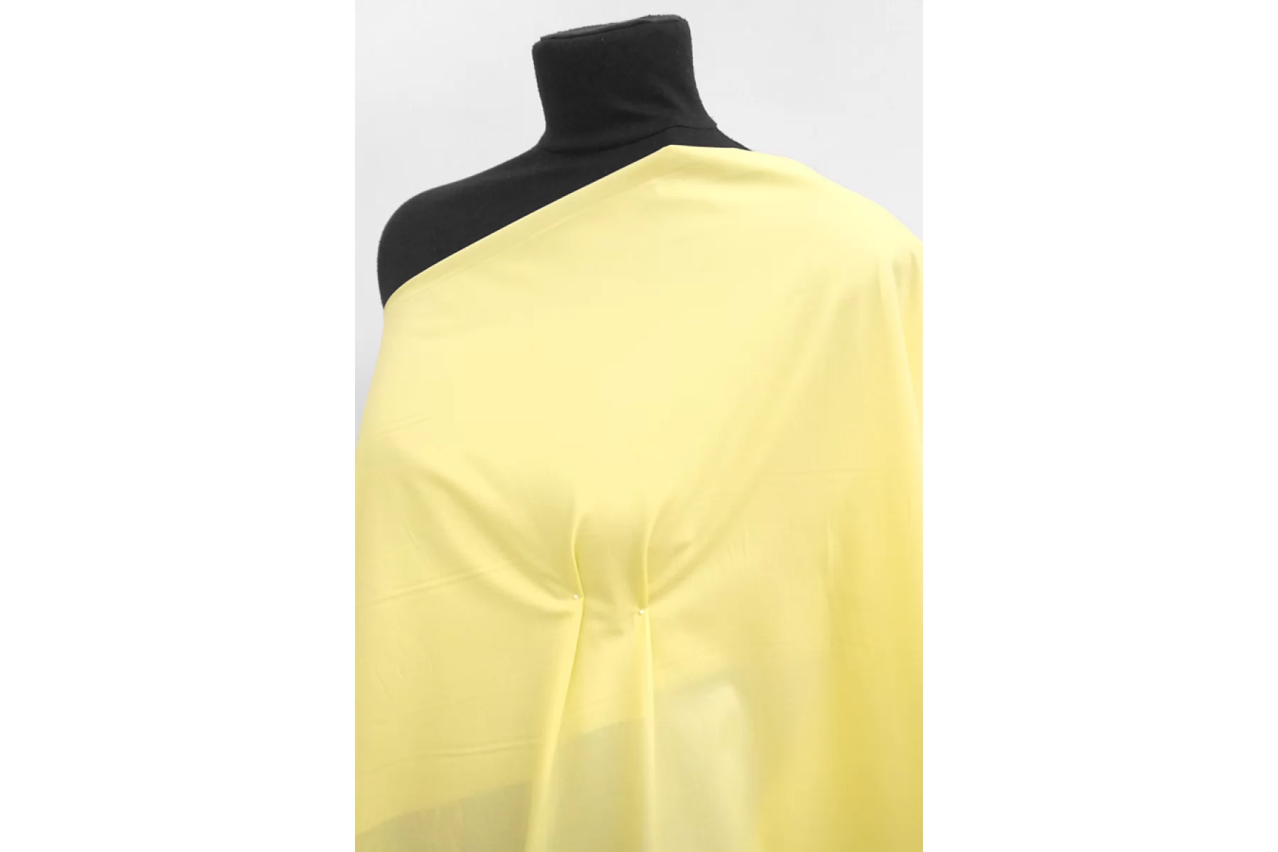 Прекрасный хлопковый мерсеризированный рубашечный поплин красивого желтого, слегка разбеленного, оттенка. Приятный, мягкий, гладкий. Достаточно плотненький и отлично драпируется. Неплохо держит форму. С легким лоском. Сминается. Не тянется. Слегка заметен контур силуэта темного. Отличный вариант на рубашки, платья, юбки и не только.