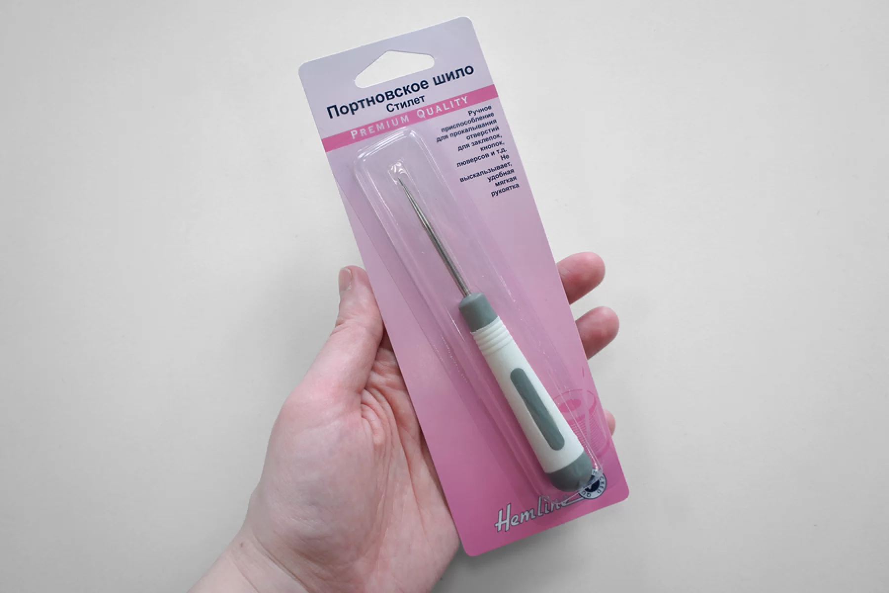 Размер 12,5 см. Портновское шило используется для прокалывания отверстий для заклепок, кнопок и люверсов. Особая форма острия позволяет проделывать отверстия разных размеров. Мягкая удобная рукоятка обеспечивает дополнительный комфорт во время использования.