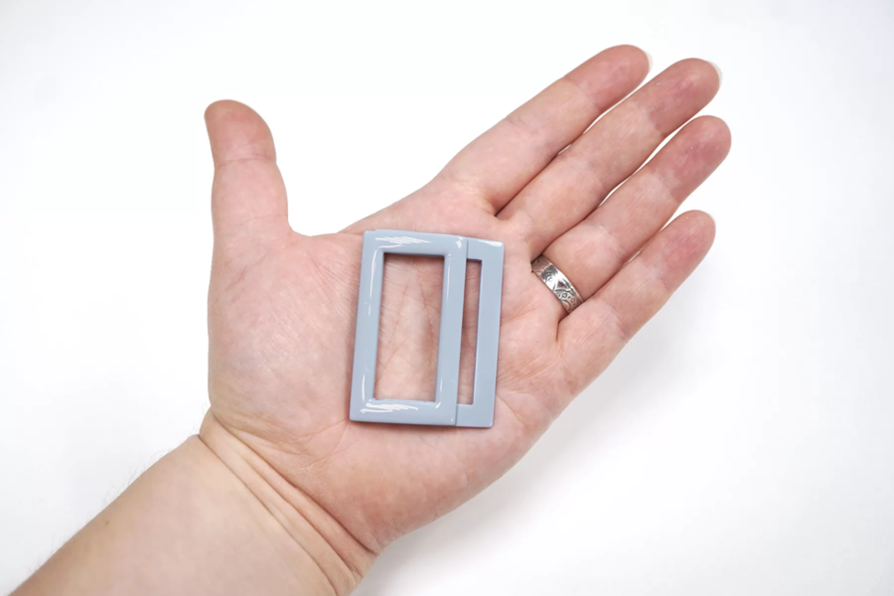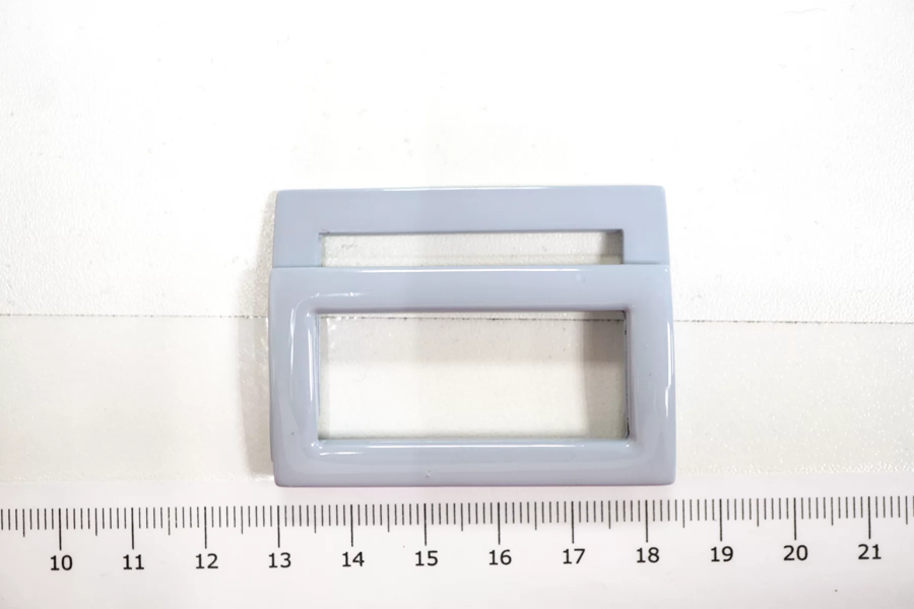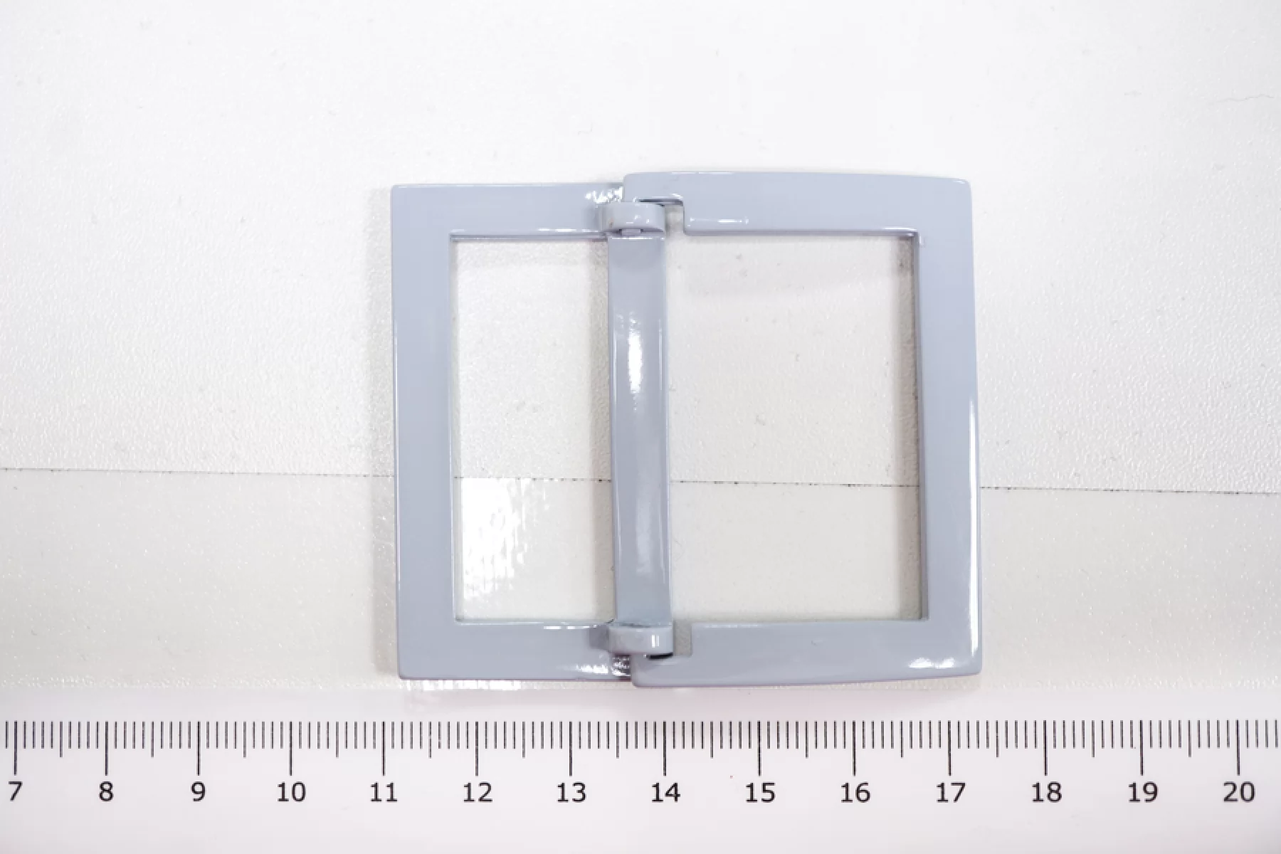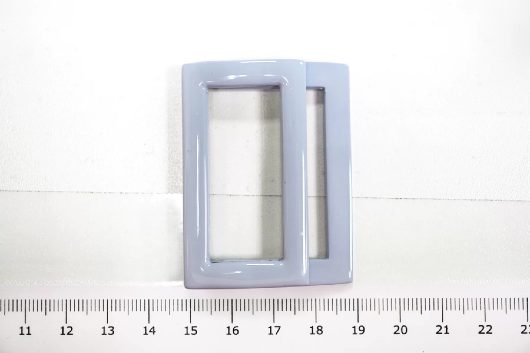 Прямоугольная двойная пряжка из металла бледно-сиреневого цвета, размер 53х40 мм. Внутренний размер (для ремешка) - 40х16 мм.