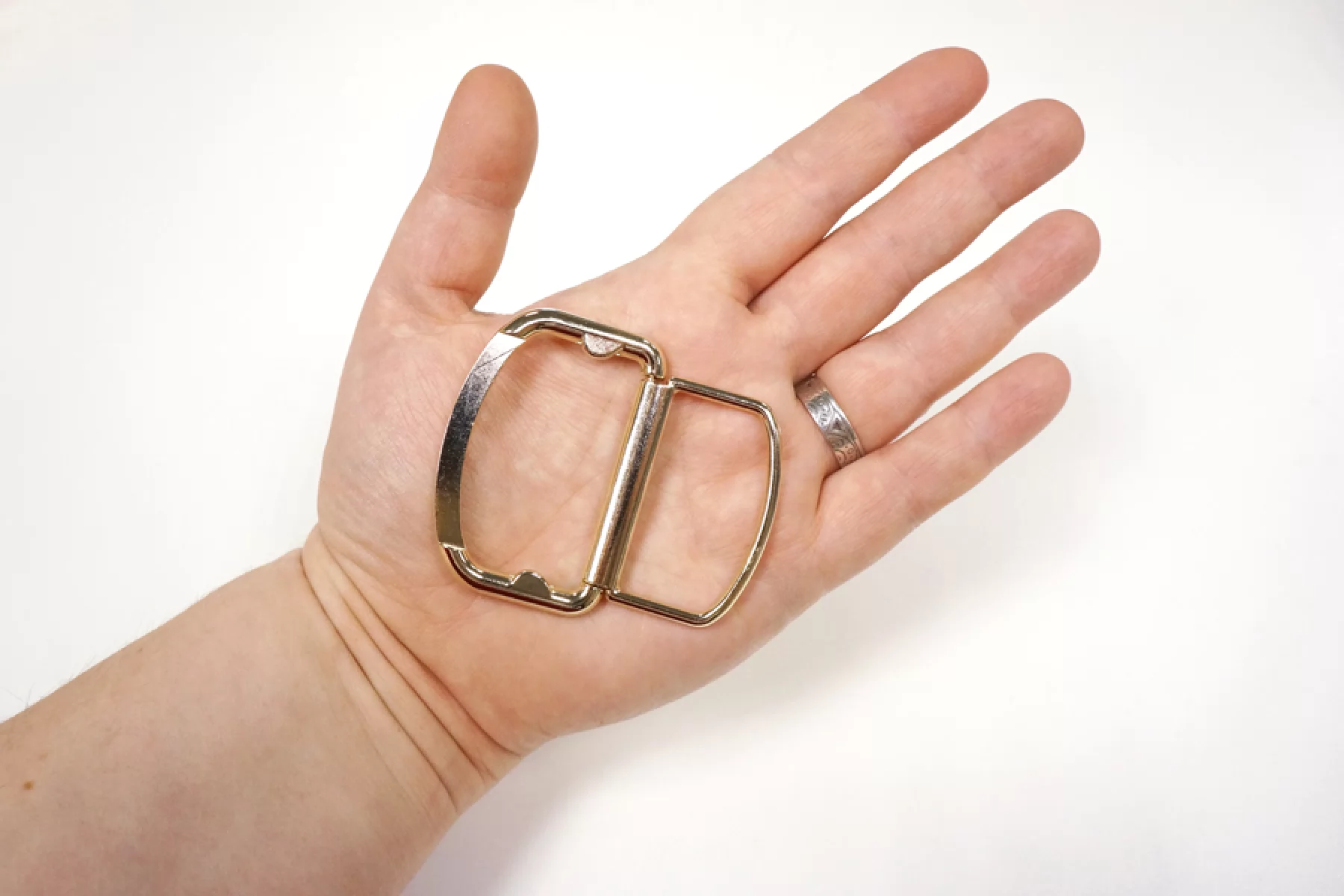 Прямоугольная пряжка из золотистого металла, размер пряжки 55х36 мм. Размер отверстия - 40х22 мм.