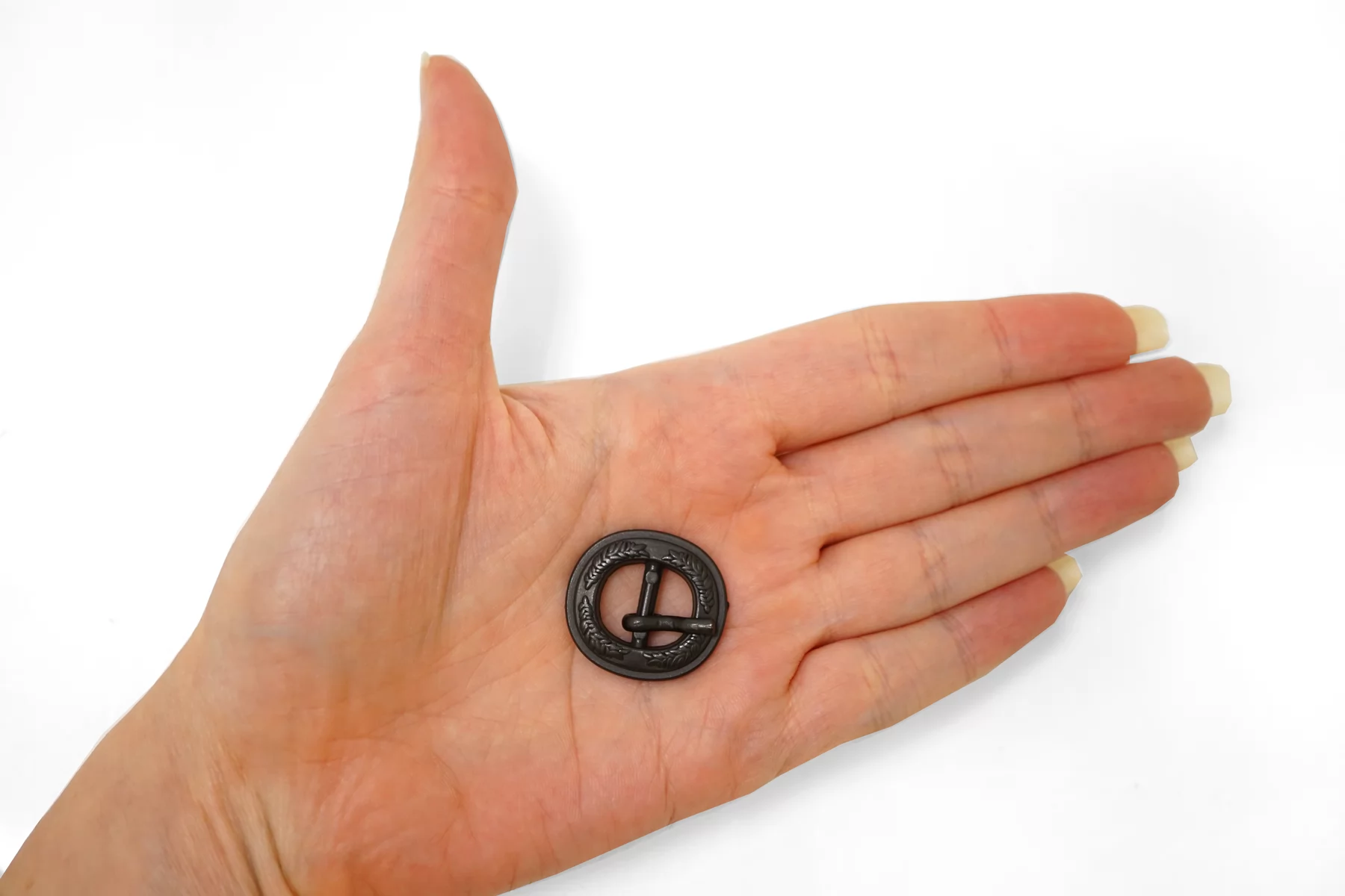Овальная пряжка из металла, черного цвета . Внутренний размер (для ремешка) - 10 мм. Пряжка с металлическим язычком.