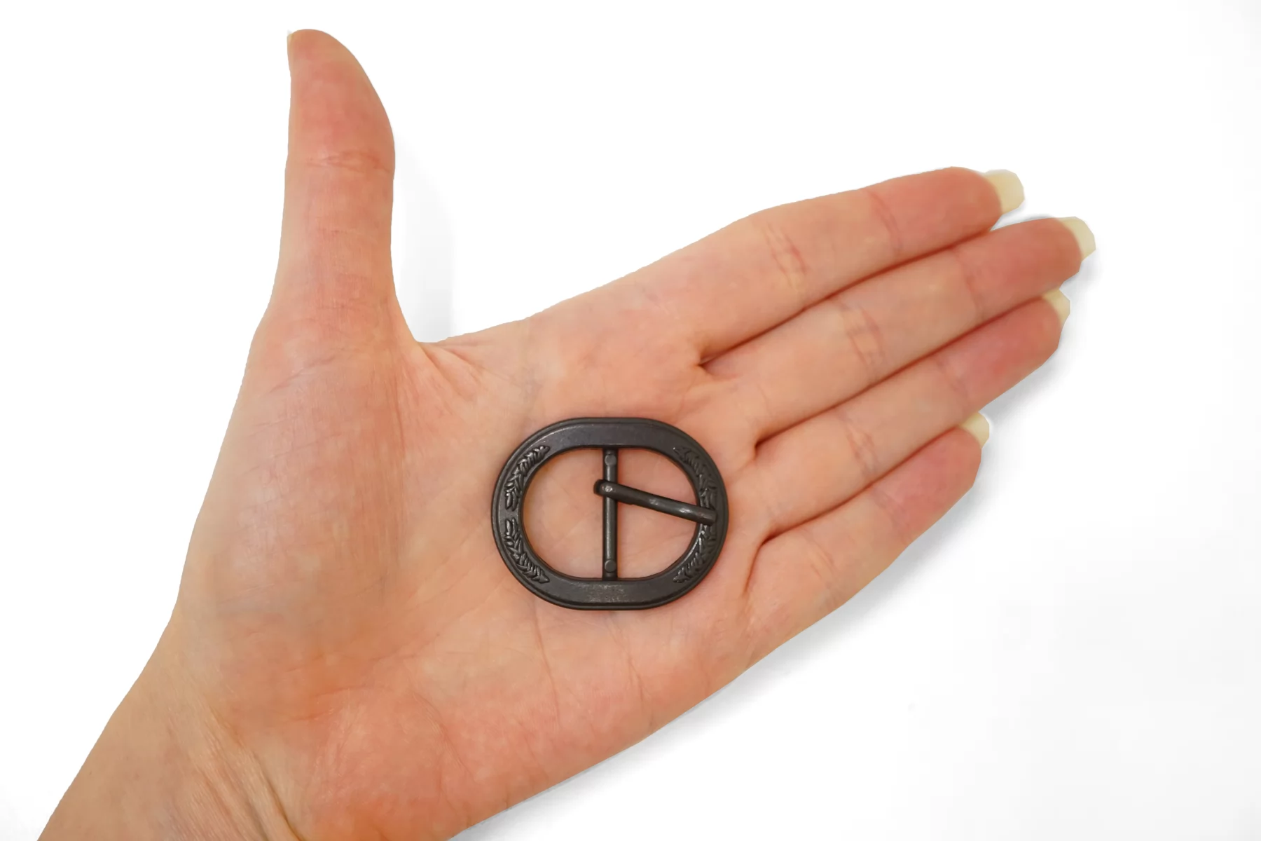 Овальная пряжка из металла, черного цвета . Внутренний размер (для ремешка) - 20 мм. Пряжка с металлическим язычком.