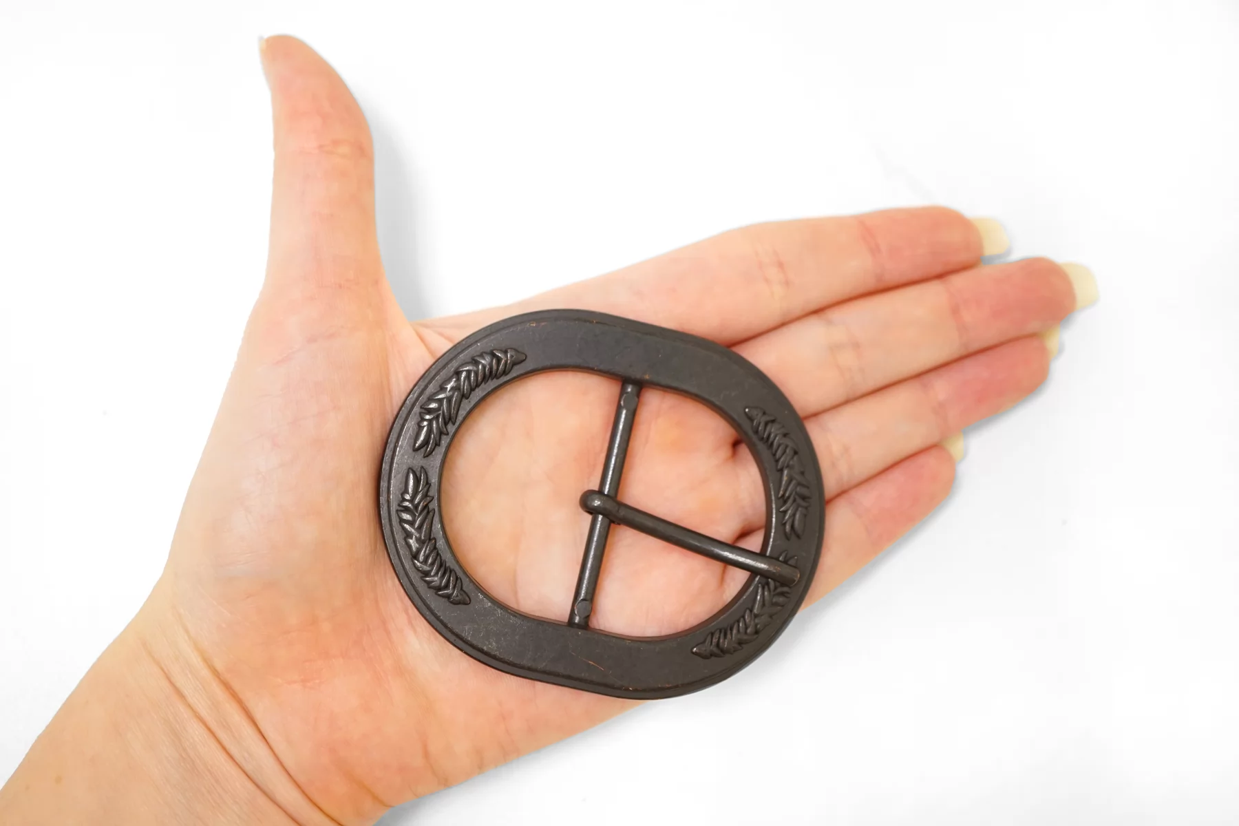 Овальная пряжка из металла, черного цвета . Внутренний размер (для ремешка) - 40 мм. Пряжка с металлическим язычком.