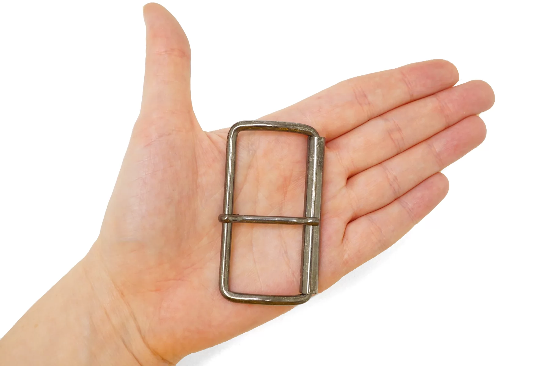 Прямоугольная пряжка из металла, цвета темного никеля. Внутренний размер (под ширину ремешка) - 60 мм.