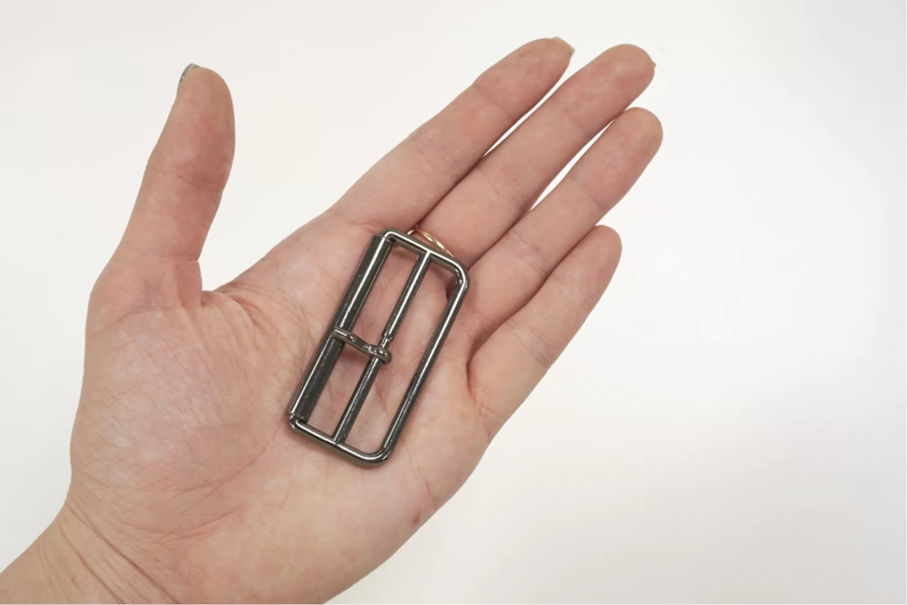 Прямоугольная пряжка из металла, цвета темного никеля. Размер 55х78 мм, внутренний размер (под ширину ремешка) - 50х18 мм.