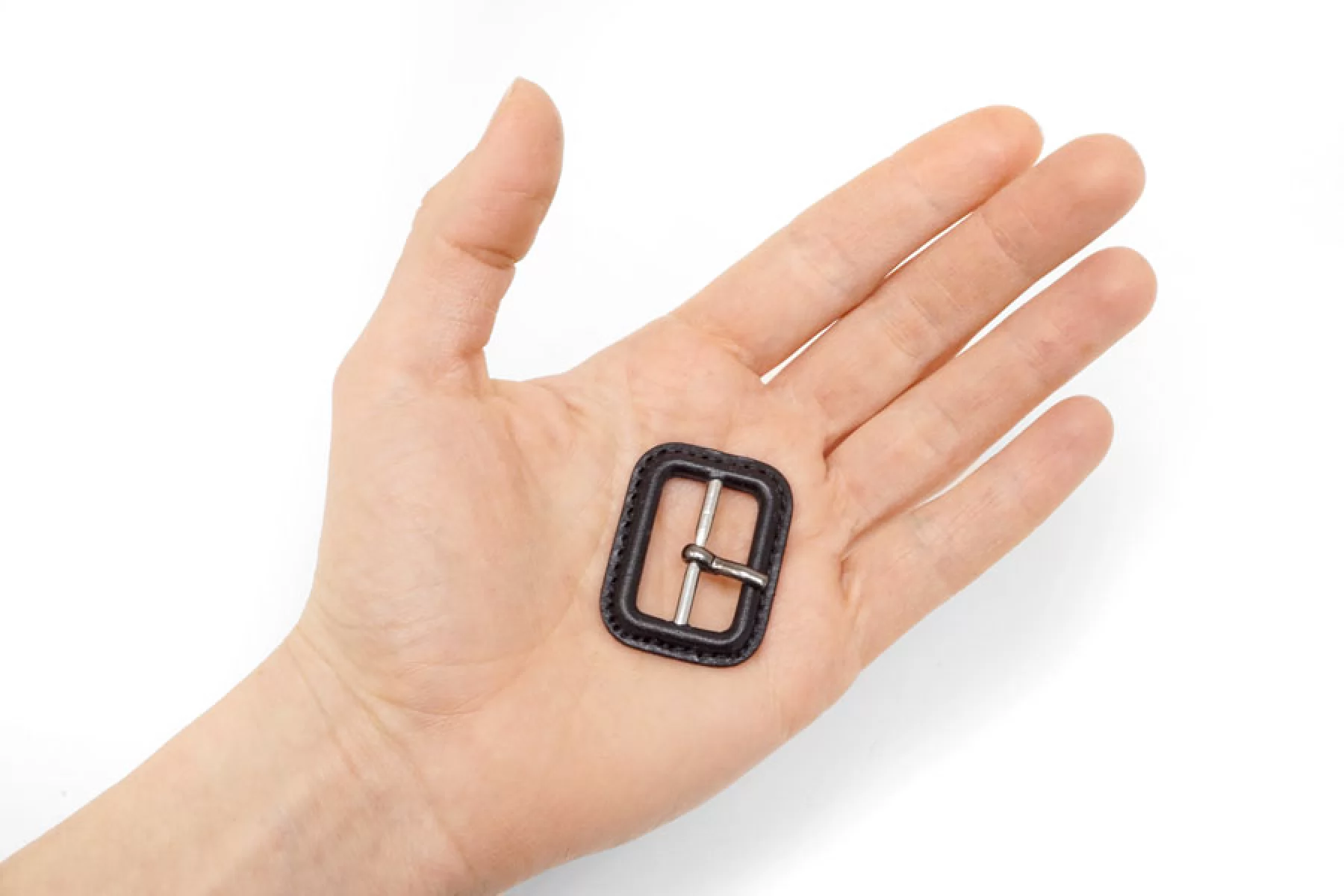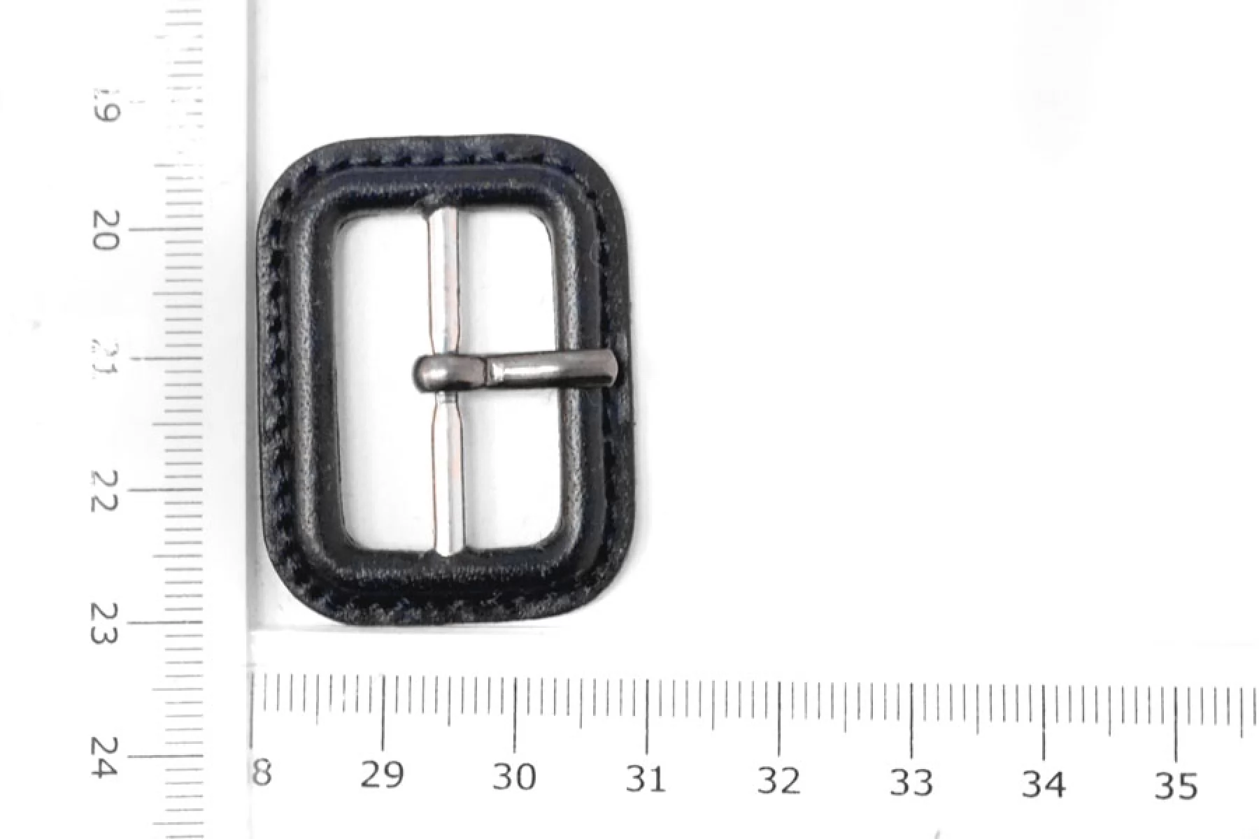 Прямоугольная пряжка из металла обтянутая эко-кожей темно-синего цвета, размер 45х34 мм. Внутренний размер (для ремешка) - 32х20 мм.