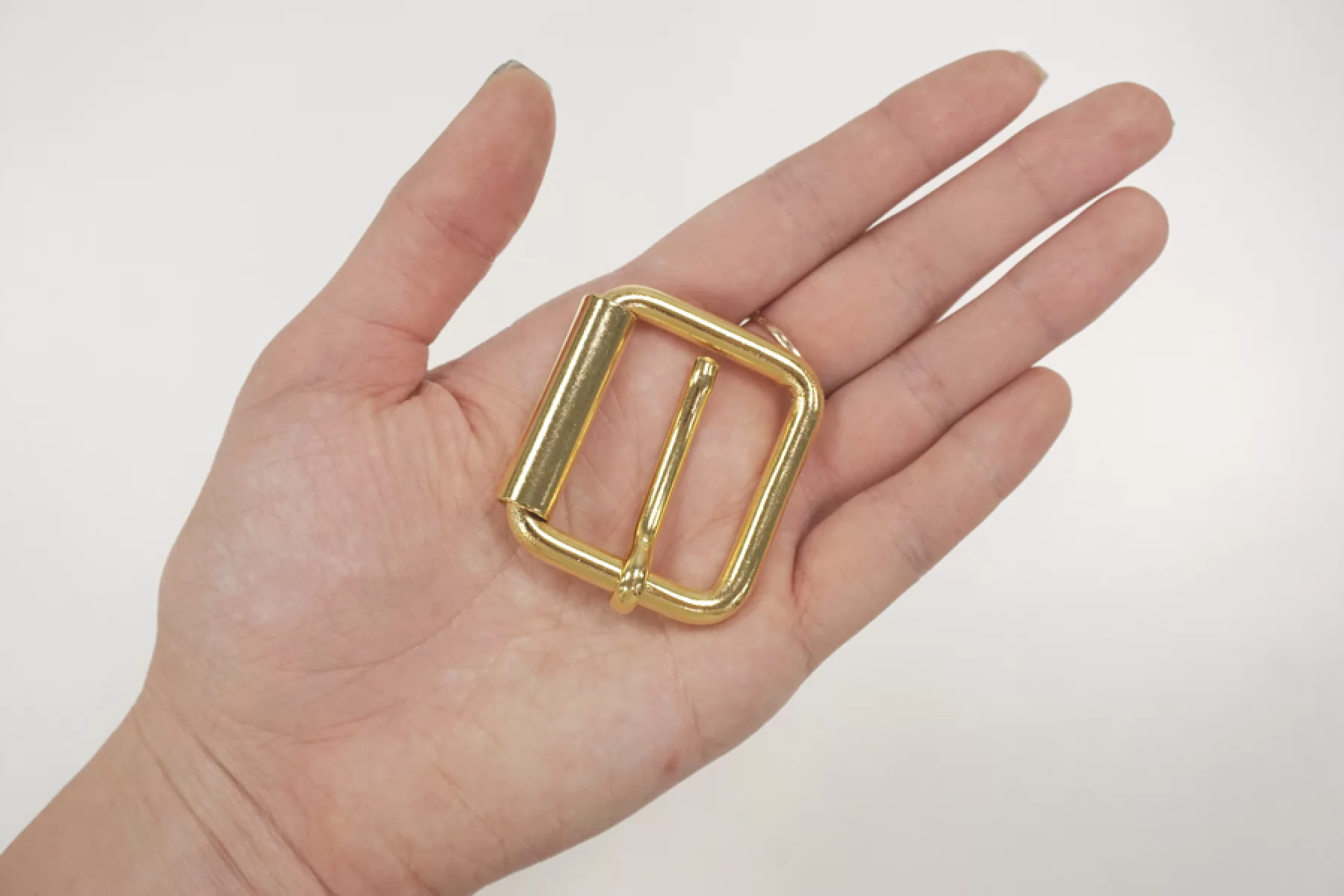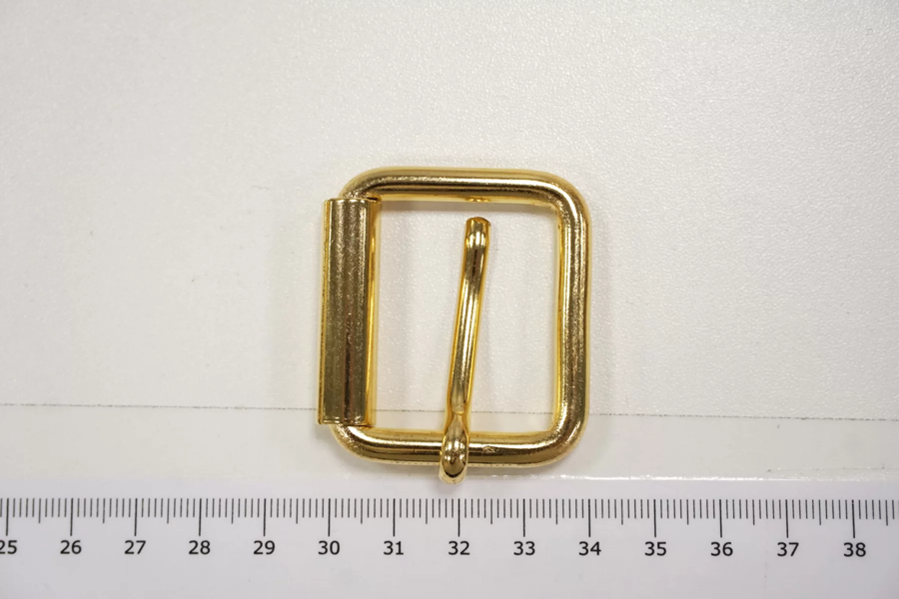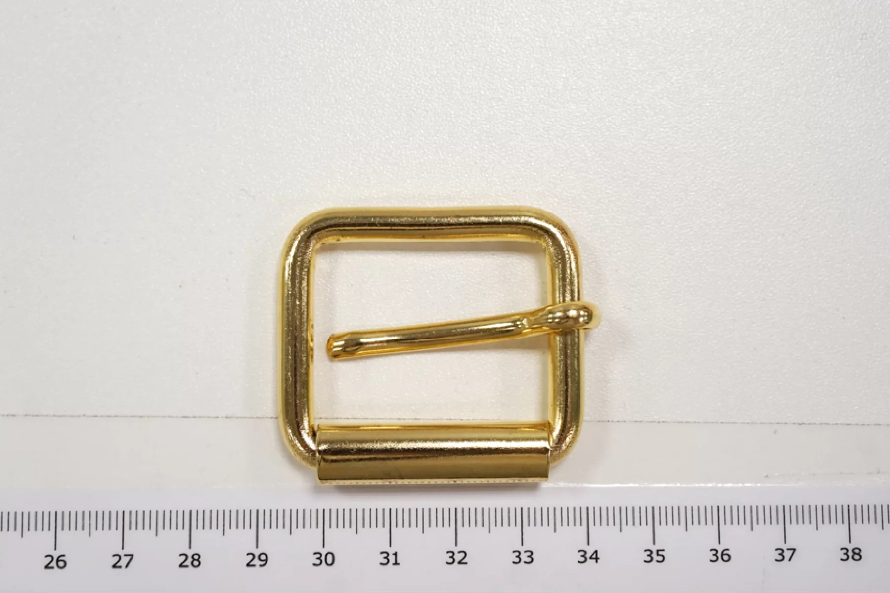 Прямоугольная пряжка из желто-золотистого металла, размер 45х41 мм мм. Внутренний размер (под ширину ремешка) - 35х27 мм.