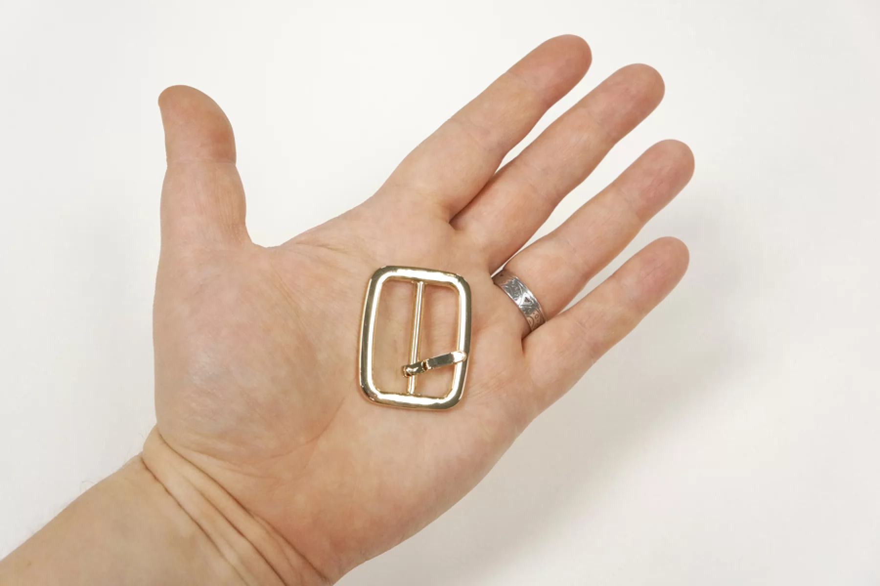 Прямоугольная пряжка из золотистого металла, размер пряжки 38х30 мм. Размер отверстия - 30х22 мм.